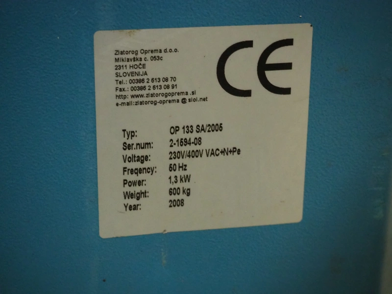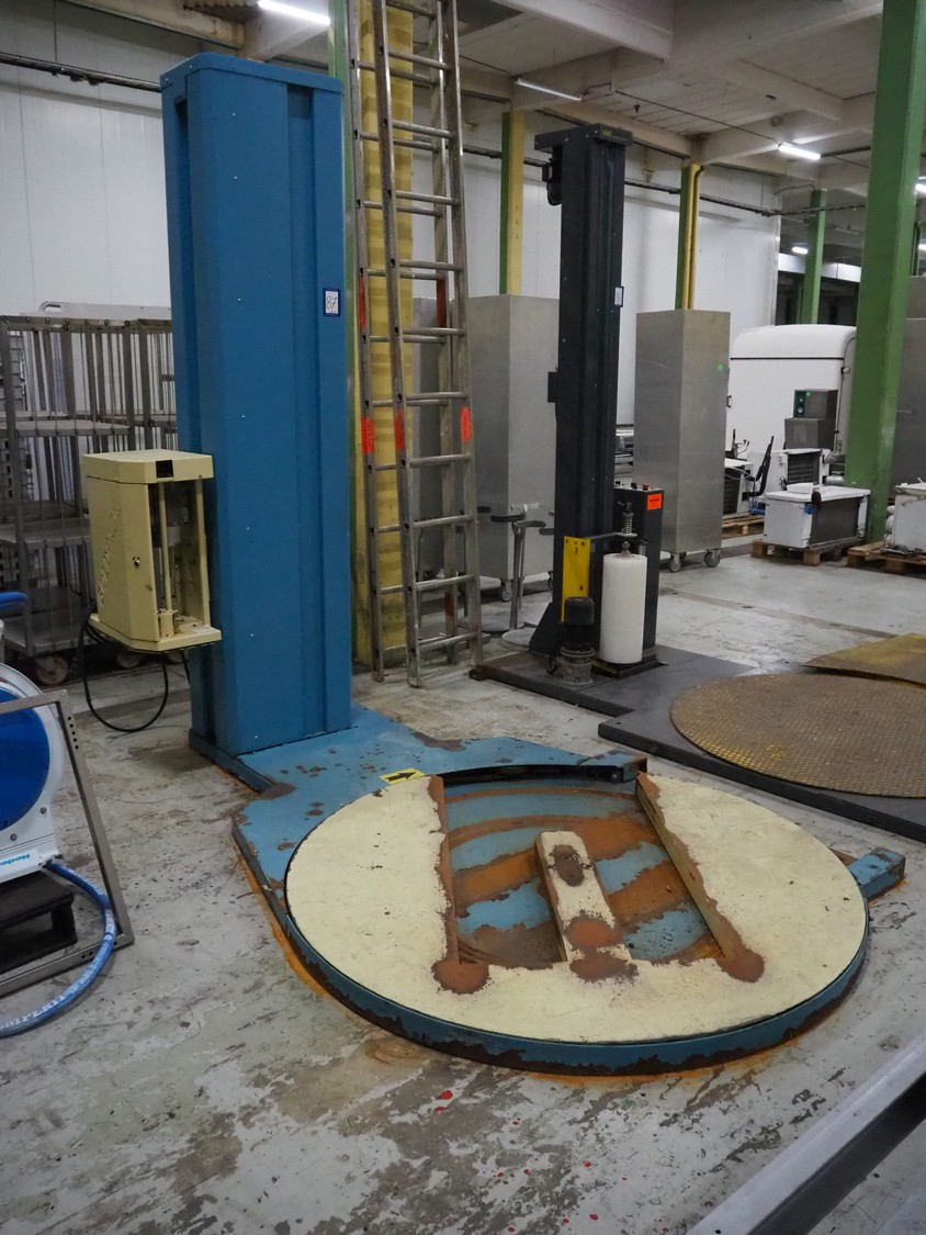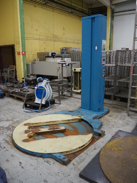 Goldpack Packaging Systems pallet wrapper, type: OP 133 SA/2005, serial number: 2-1594-08, year of construction: 2008, 230 V, 50 Hz, 1.3 kW, weight: 600 kg, diameter platform: 1650 mm, total dimensions: 3000 mm x 1700 mm x 2500 mm.