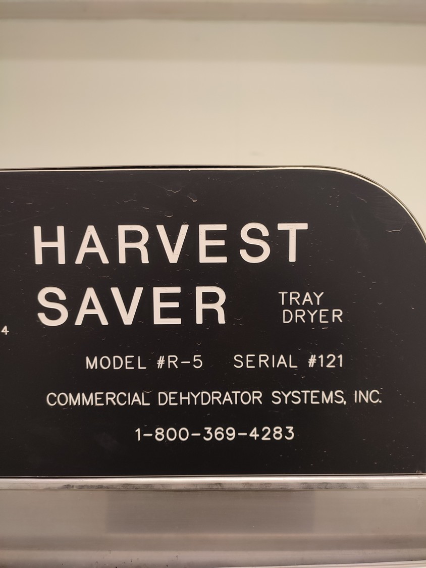 Harvest Saver tray dryer, model: #R-5, serial number: #121, 15 floors, floor dimensions: 980 mm x 610 mm x 45 mm, total dimensions: 1530 mm x 850 mm x 1550 mm.