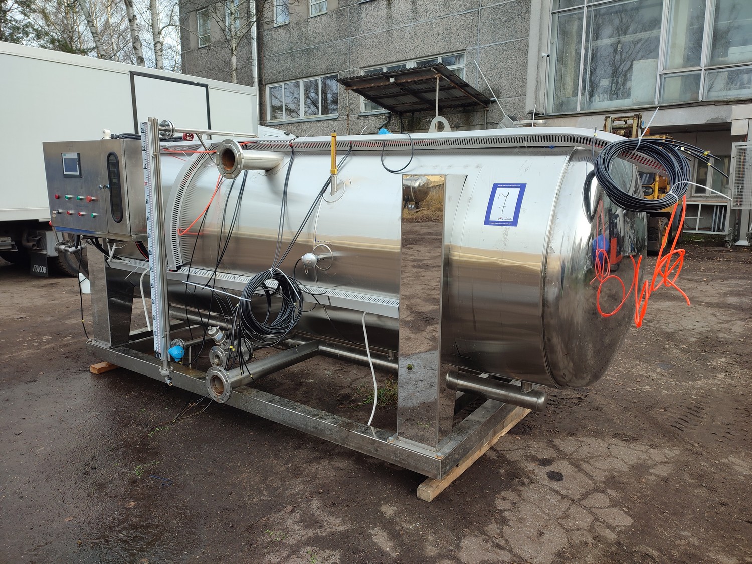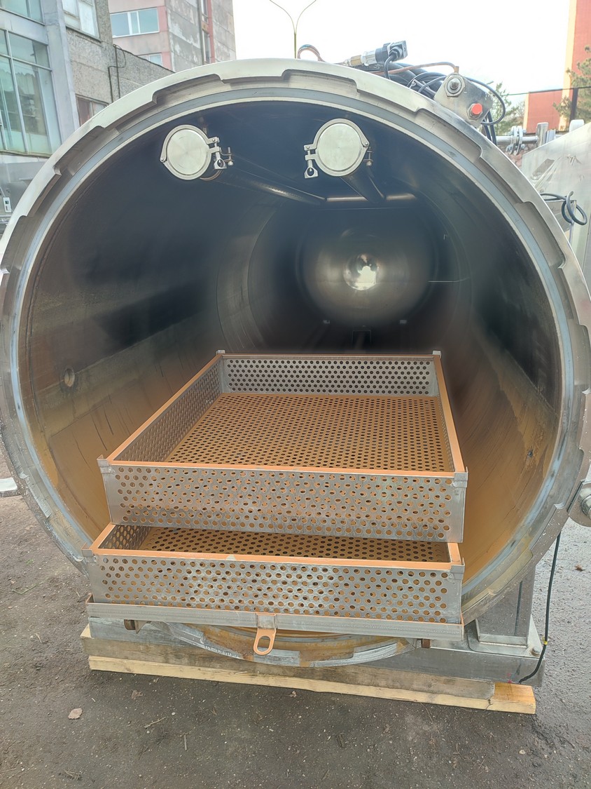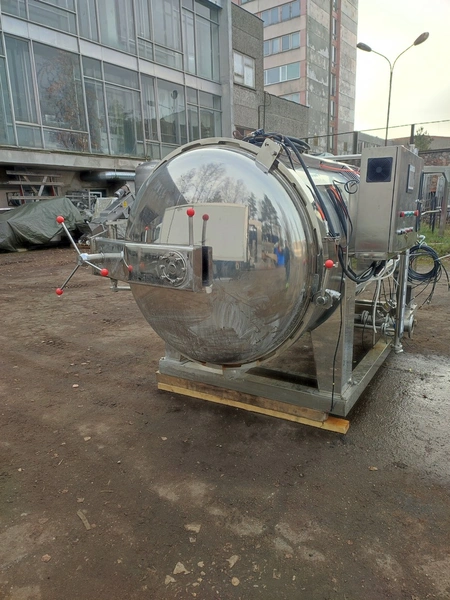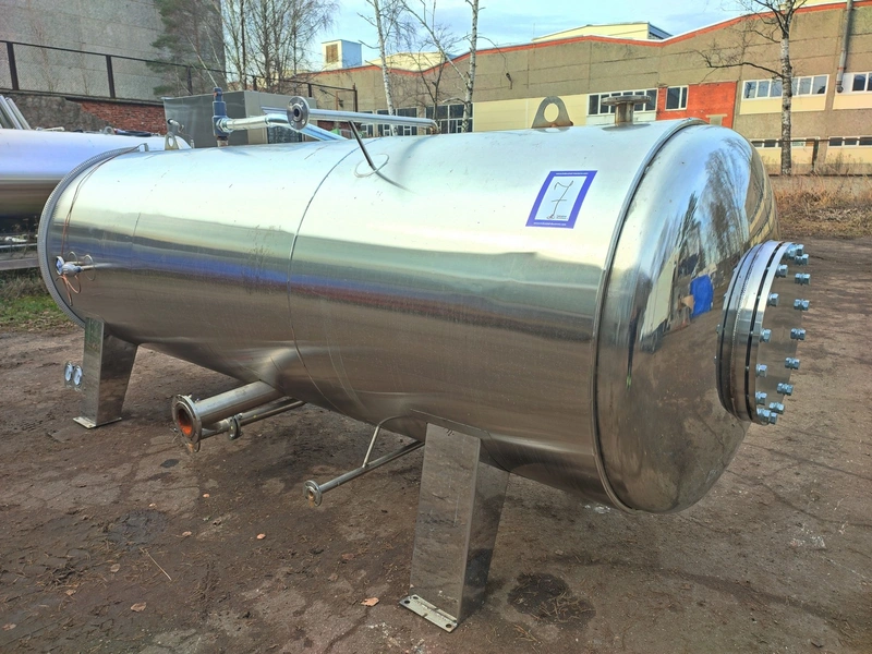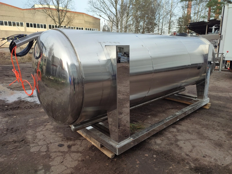 Zhucheng Tianshun Machinery Co., Ltd. autoclave, number: R2022-309, year of construction: 01.06.2022, pressure: 0.35 Mpa, temperature: 147°C, volume: 4,47 m³, weight: 1100 kg, top tank dimensions: 4200 mm x 1700 mm x 1950 mm, bottom tank dimensions: 4300 mm x 1600 mm x 1800 mm, s/s tank dimensions: 1800 mm x 1800 mm x 3000 mm. Including pallet with parts, dimensions: 2700 mm x 3000 mm x 1000 mm.