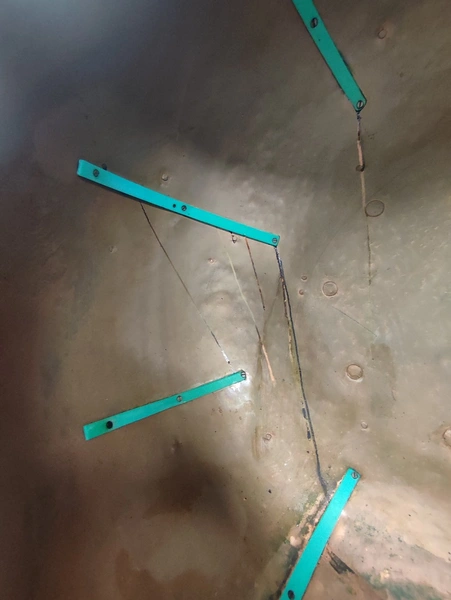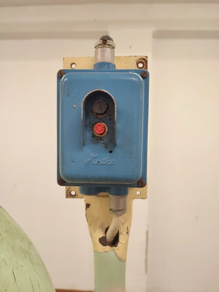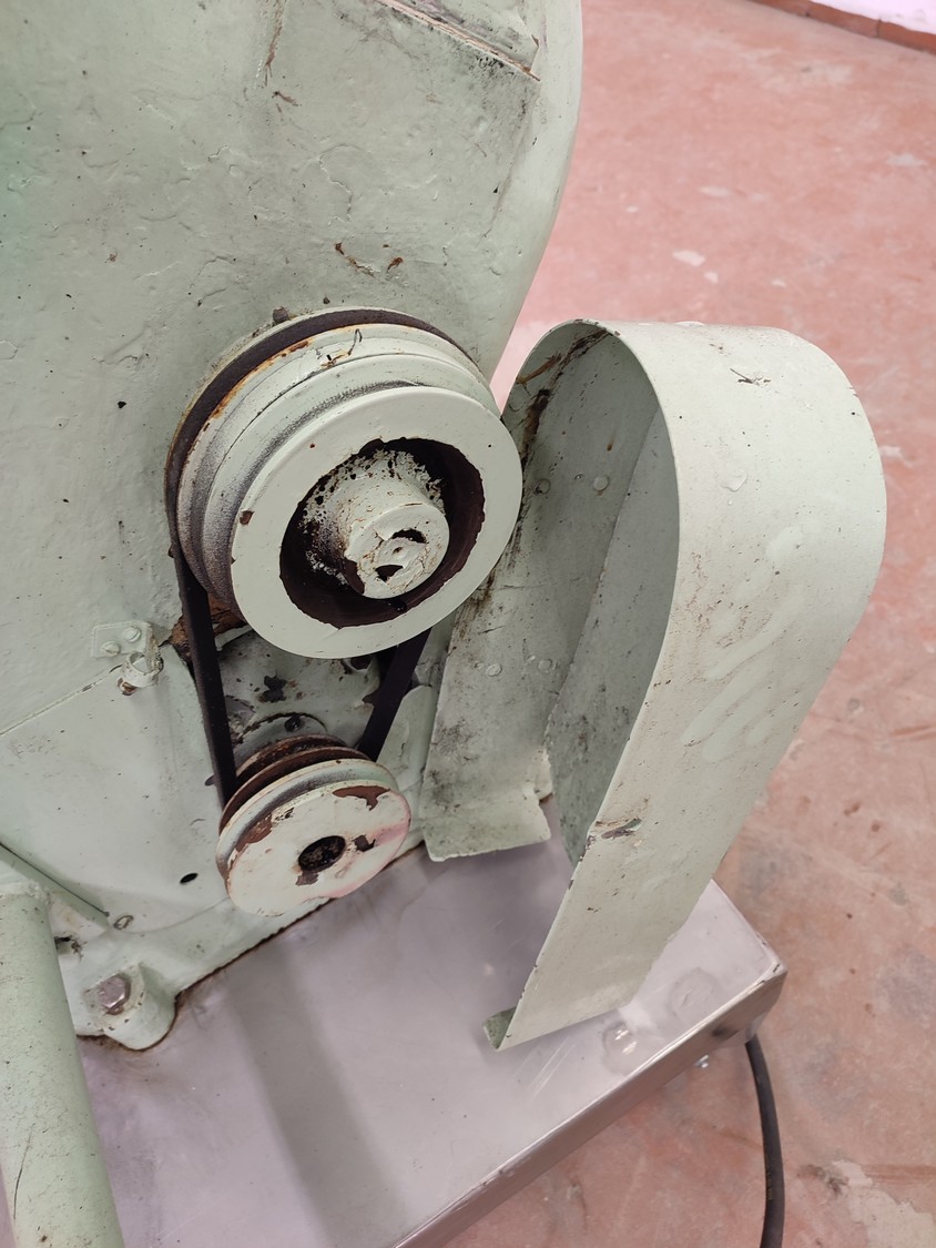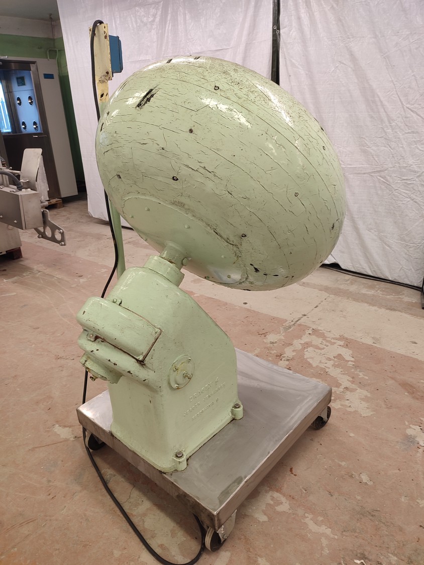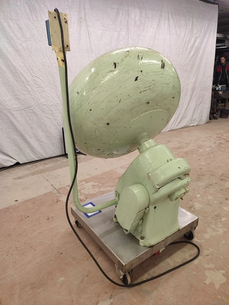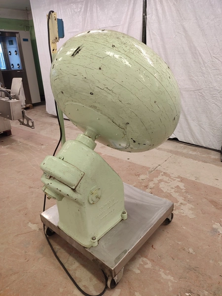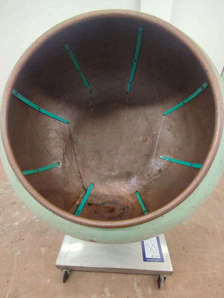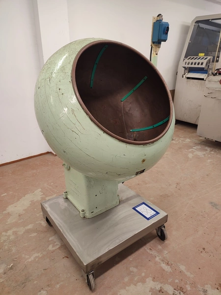 Dragex 4 coating pan, inside dimensions: Ø 900 mm x 450 mm, total dimensions: 1200 mm x 1100 mm x 1750 mm.