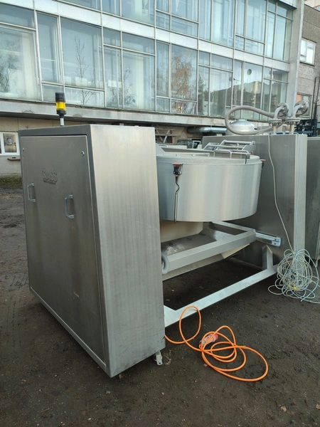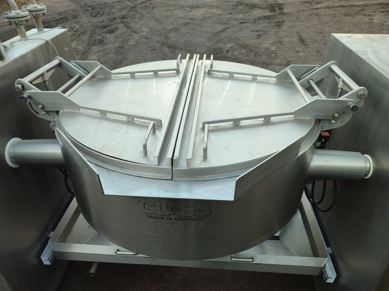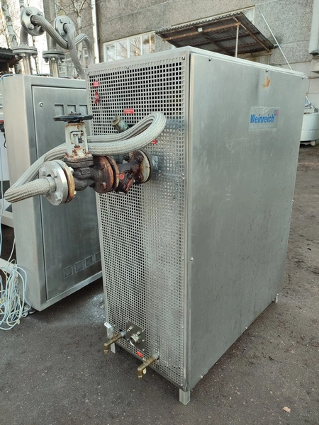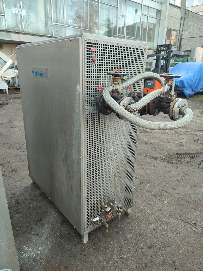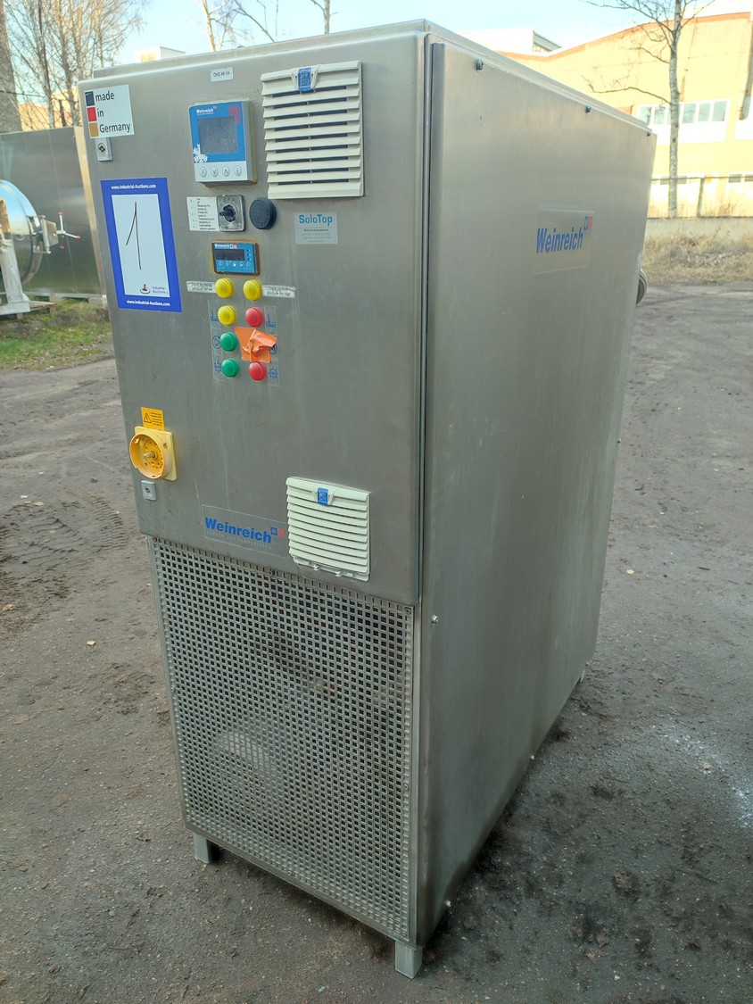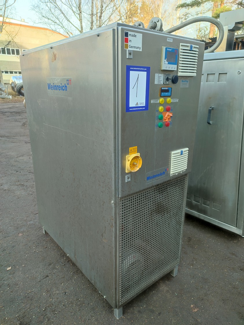 Glass GmbH & Co. KG tiltable frying pan with agitator, type: WOK 400, machine number: 3609, year of construction: 2014, 400 V, 50 Hz, 3 Ph, 7.15 A, 2.84 kW, weight: 1200 kg, dimensions: 2700 mm x 1500 mm x 2000 mm. Including Weinreich-Industriekuhlung thermal oil heater, type: OHZ 48 VA, serial number: 02149906, year of construction: 2014, 400 V, 50 Hz, 77,1/100 A, 52.2 kW. total dimensions: 620 mm x 1800 mm x 1600 mm.