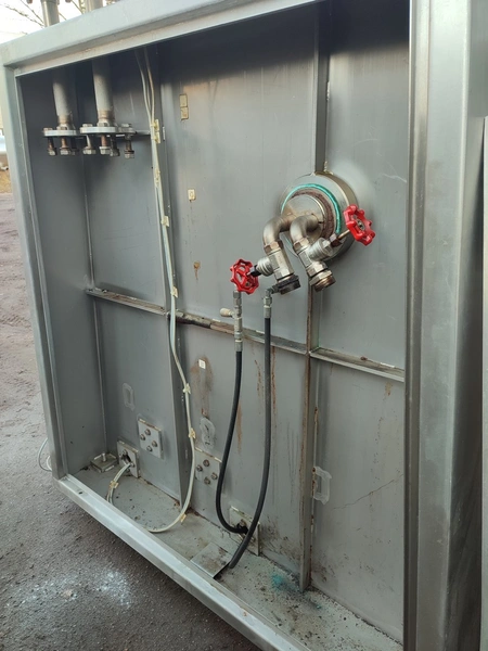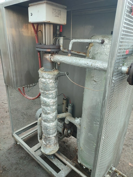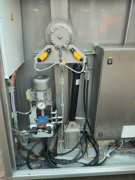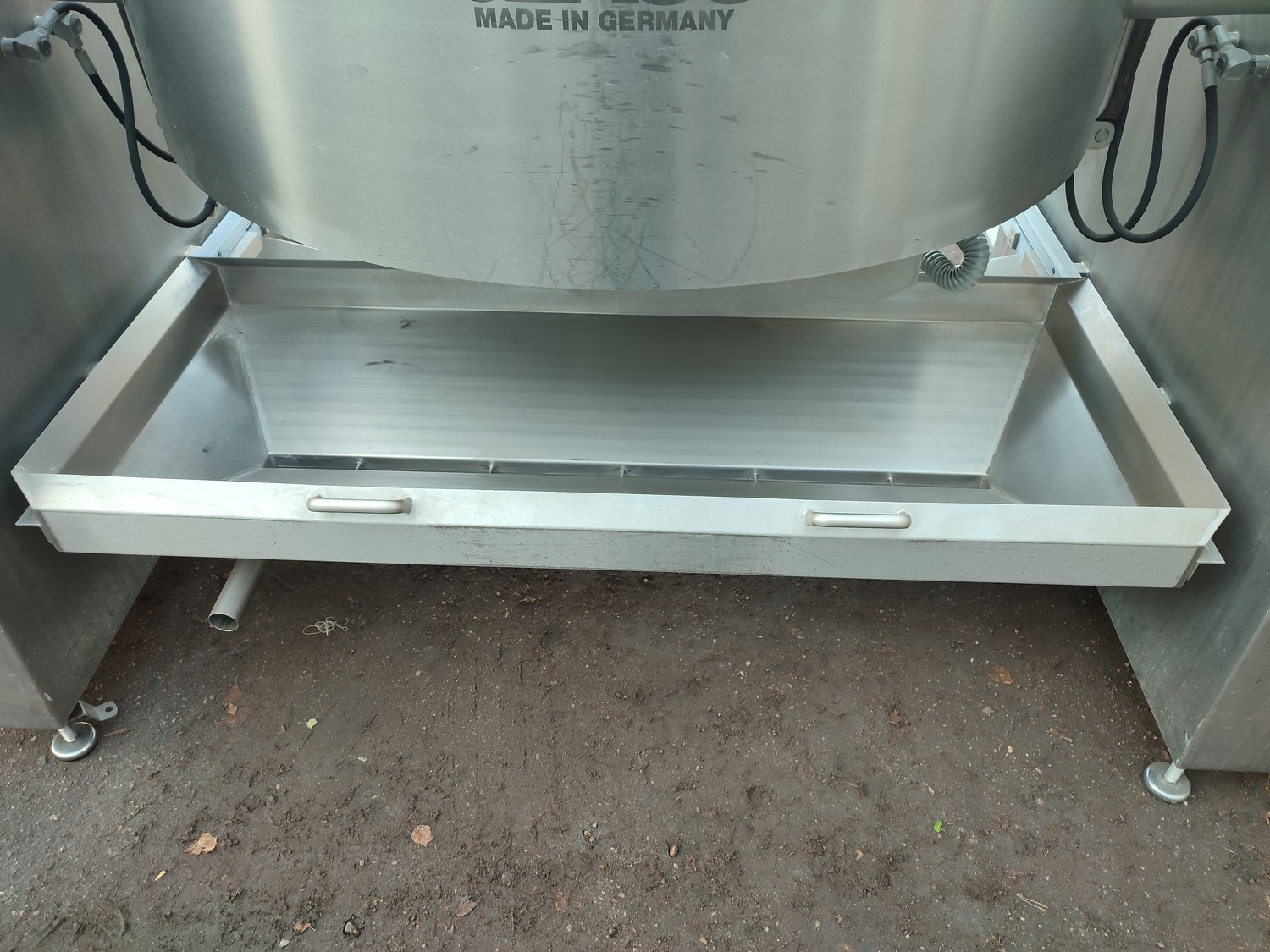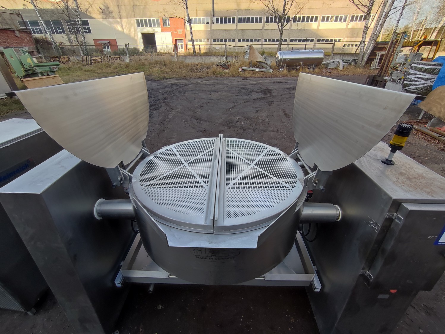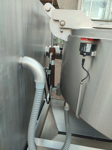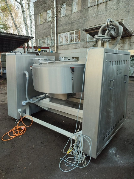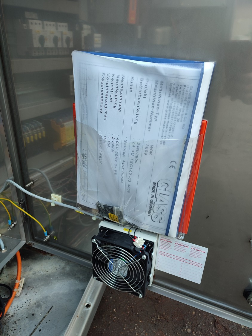 Glass GmbH & Co. KG tiltable frying pan with agitator, type: WOK 400, machine number: 3609, year of construction: 2014, 400 V, 50 Hz, 3 Ph, 7.15 A, 2.84 kW, weight: 1200 kg, dimensions: 2700 mm x 1500 mm x 2000 mm. Including Weinreich-Industriekuhlung thermal oil heater, type: OHZ 48 VA, serial number: 02149906, year of construction: 2014, 400 V, 50 Hz, 77,1/100 A, 52.2 kW. total dimensions: 620 mm x 1800 mm x 1600 mm.