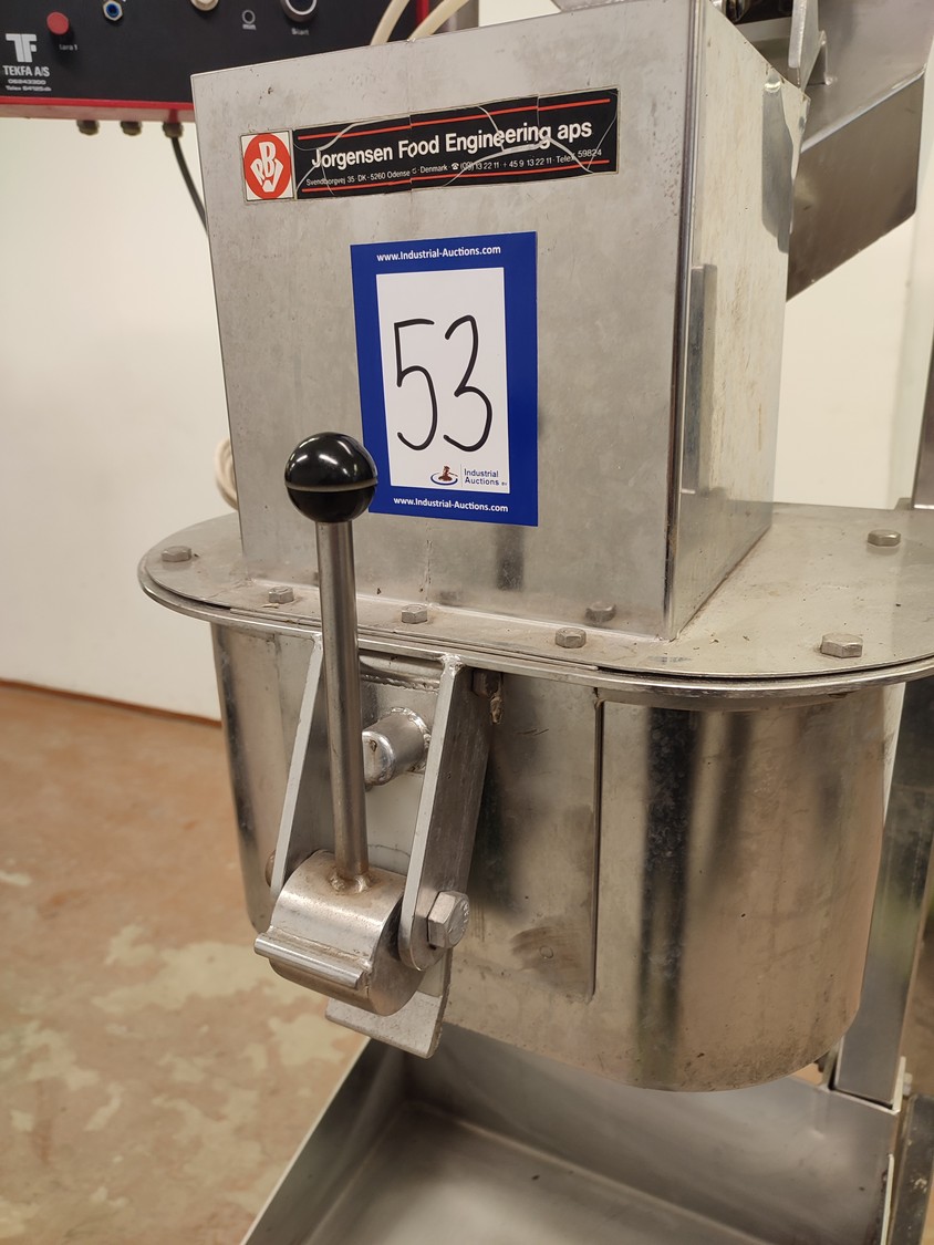 Jorgensen depositor with scales, number: 60851/1 1024-51, year of construction: 1989, Tekfa A/S scale, model: 7761, number: 881028, 220 V, 50 Hz, 12 V, total dimensions: 750 mm x 900 mm x 1840 mm.