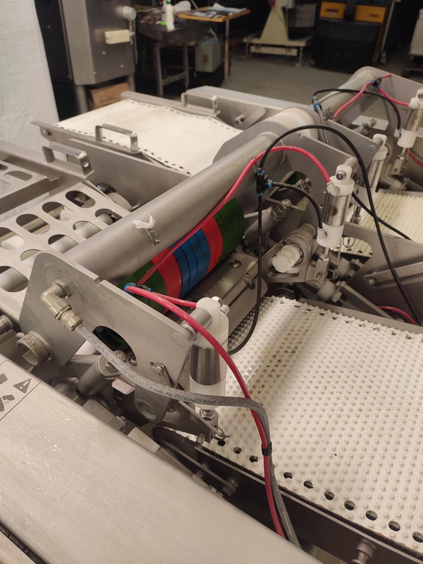 Marel mobile double skinning machine for fish, model: MS1710, type: 9830844AA, machine number: 10392514, year of construction: 2016, 400 V, 3 Ph, 50 Hz, 5 A, plastic belt, belt width: 355 mm, working width: (2x) 365 mm, skinning machine dimensions: 1430 mm x 1740 mm x 1260 mm. Including s/s trolley, dimensions: 1700 mm x 600 mm x 1420 mm. Without belt.