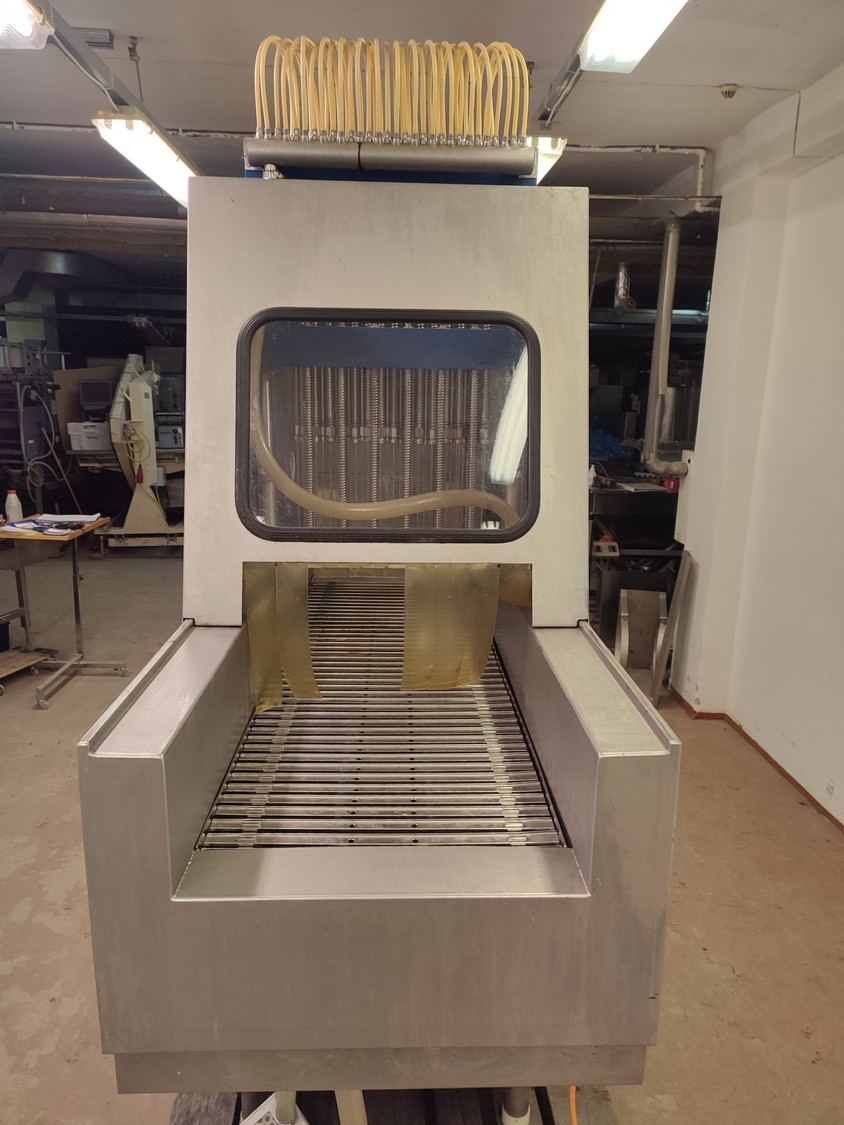 Suhner AG injector, type: WS 30, machine number: 0260348, 230 V, 3 Ph, 50 Hz, 12 A, 4 kW, s/s belt width: 440 mm, total dimensions: 1680 mm x 700 mm x 2200 mm.