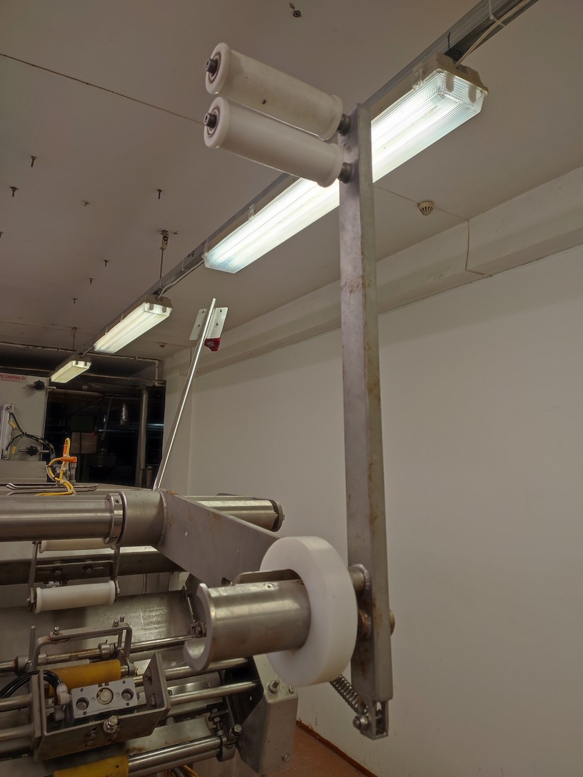 Antti Lindfors Oy tray denester and tray closing machine, type: OK, year of construction: 2005, 400 V, 16 A, dimensions: 5100 mm x 1400 mm x 2180 mm.