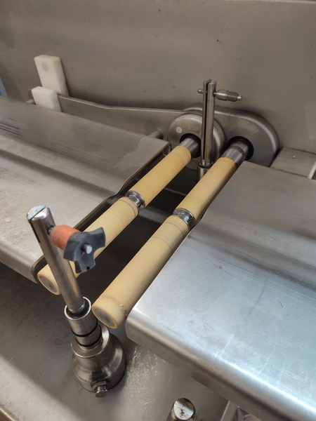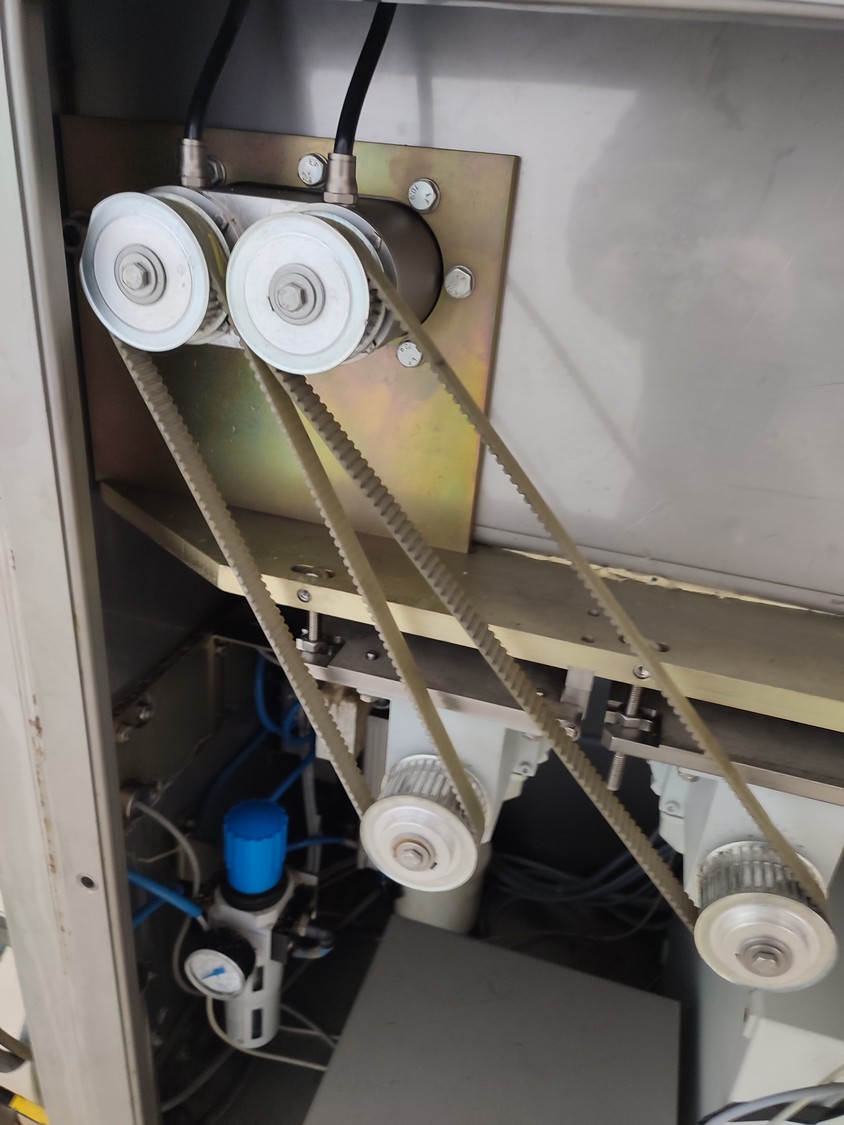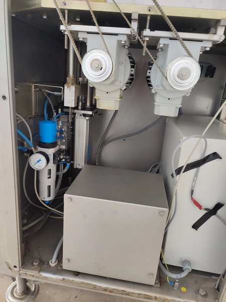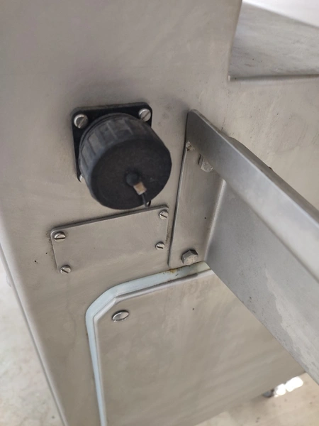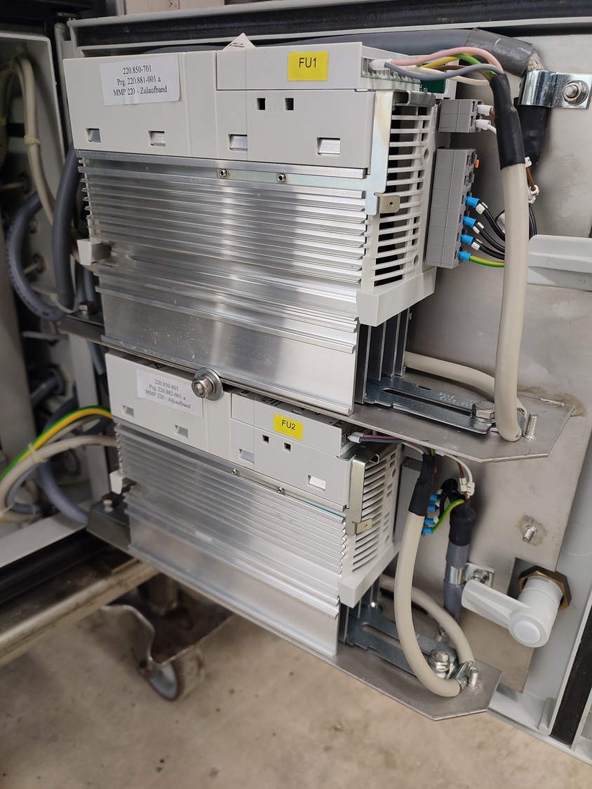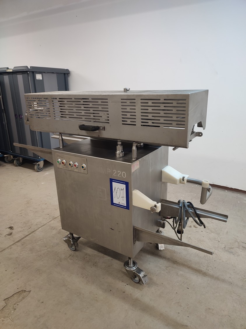 Vemag mobile portioning machine, model: MMP 220, number: 220 0122, year of construction: 2007, 220-240 V / 6.3 A, 400-460 V / 3.5 A, 575 V / 2.5 A, 1.5 kW, pressure: 6 bar, belt width: 260 mm, total dimensions: 1770 mm x 620 mm x 1360 mm. Without belts.
