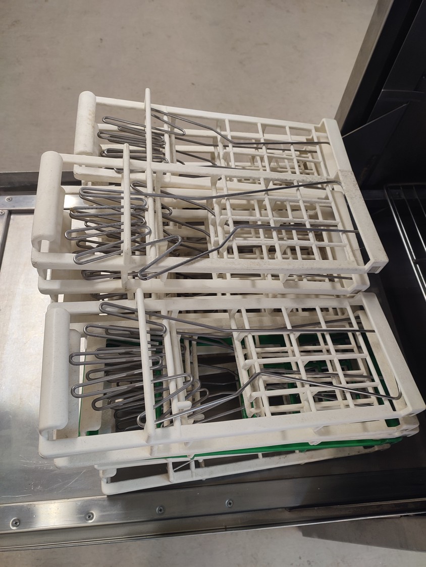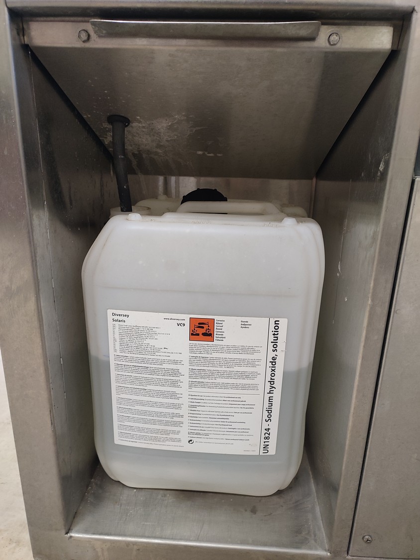 Pesutekno Oy dishwasher, type: Tuhti 02, number: 012001, 400 V, 3 Ph, 50 Hz, 22 A, 16.9 kW, dimensions: 800 mm x 800 mm x 1680 mm.