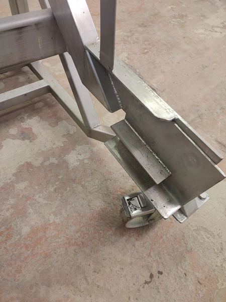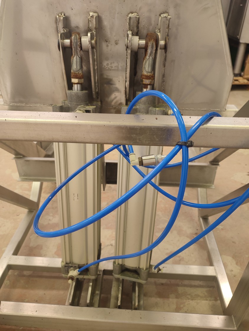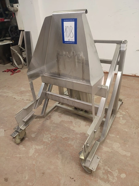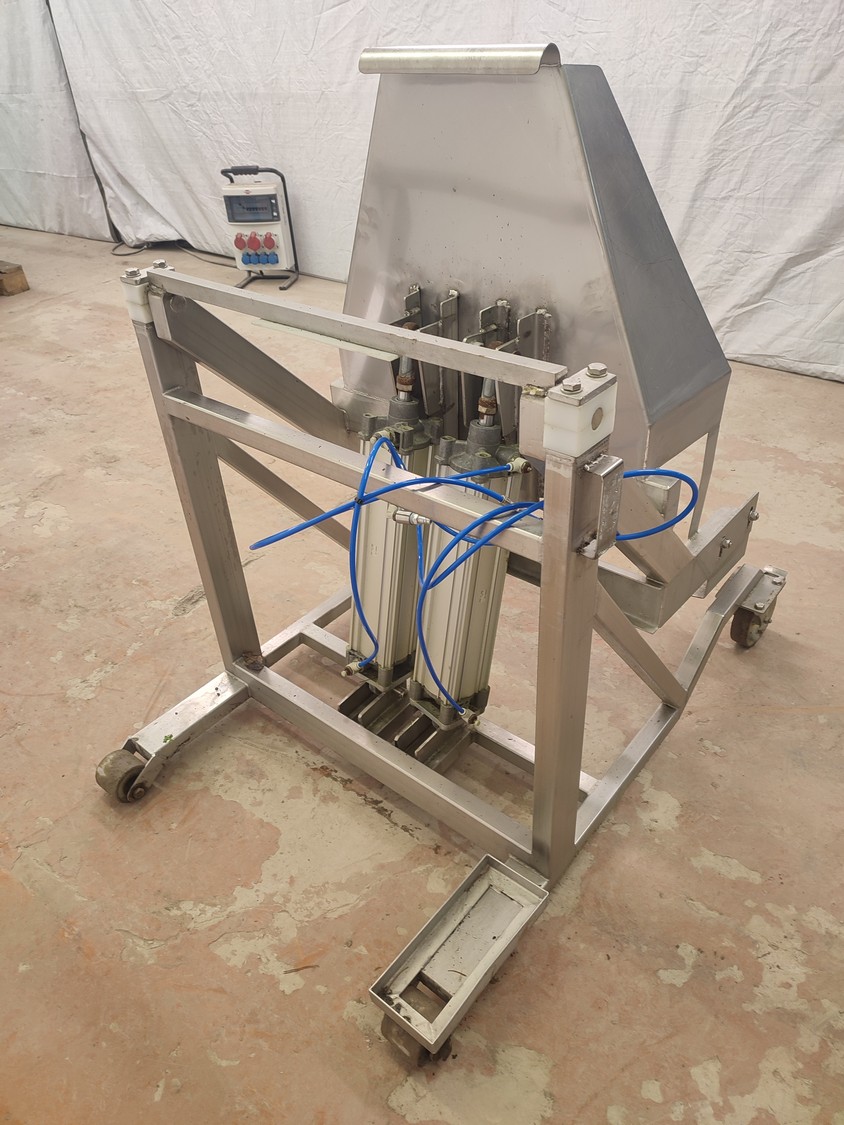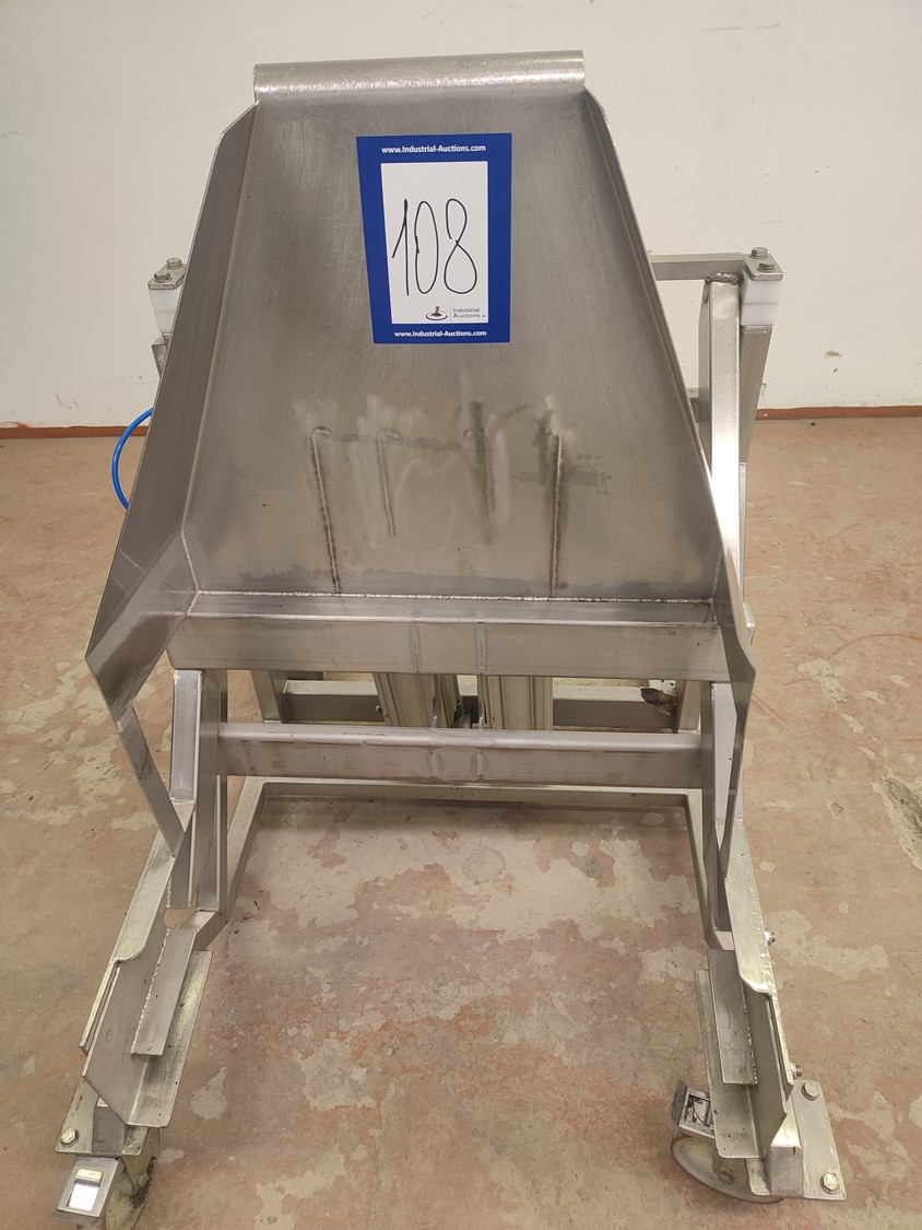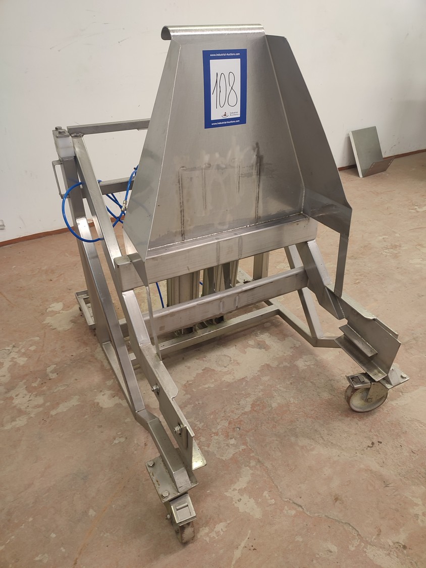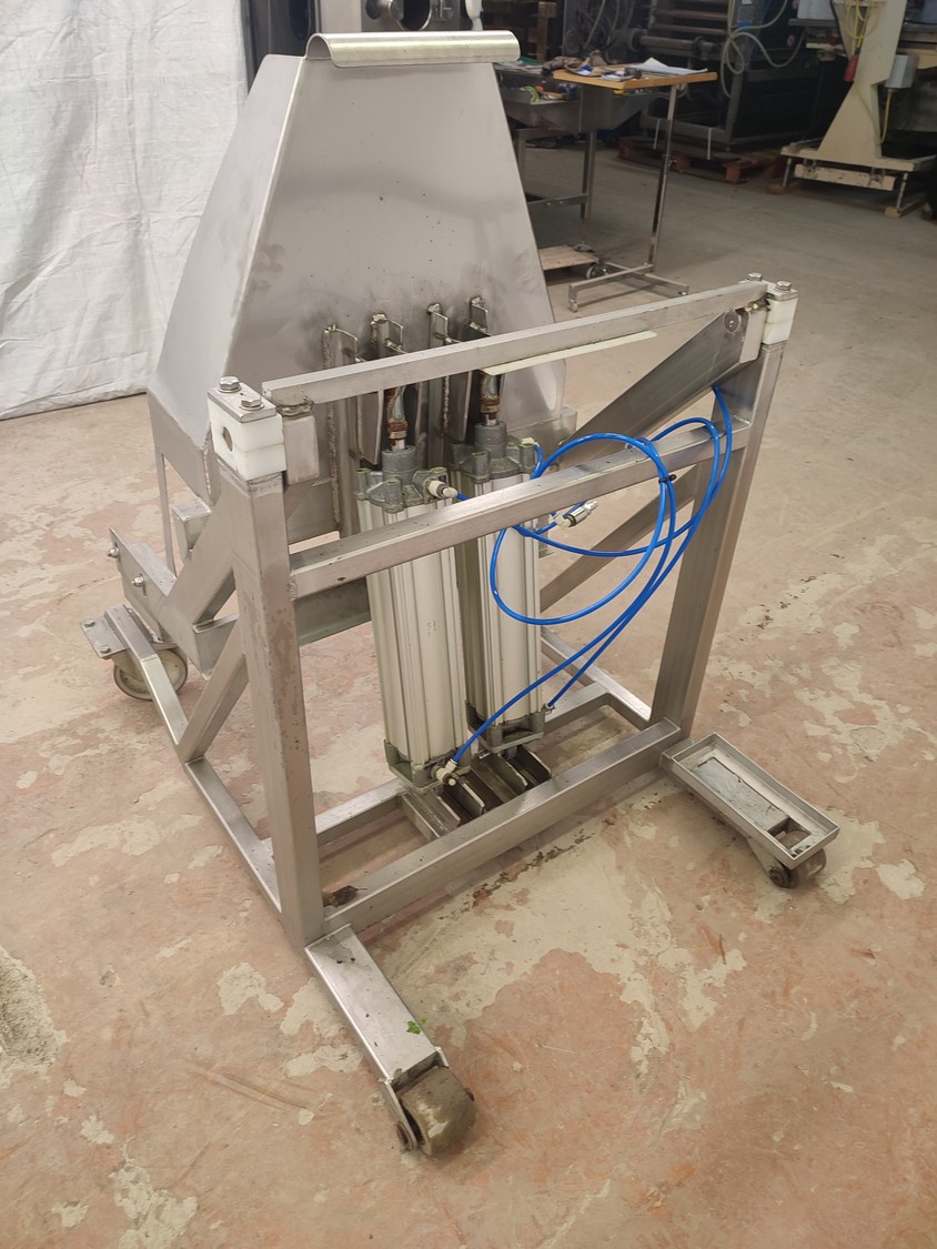 S/s mobile tilting device for 200 liter meat bins, dimensions: 900 mm x 1200 mm x 1250 mm.