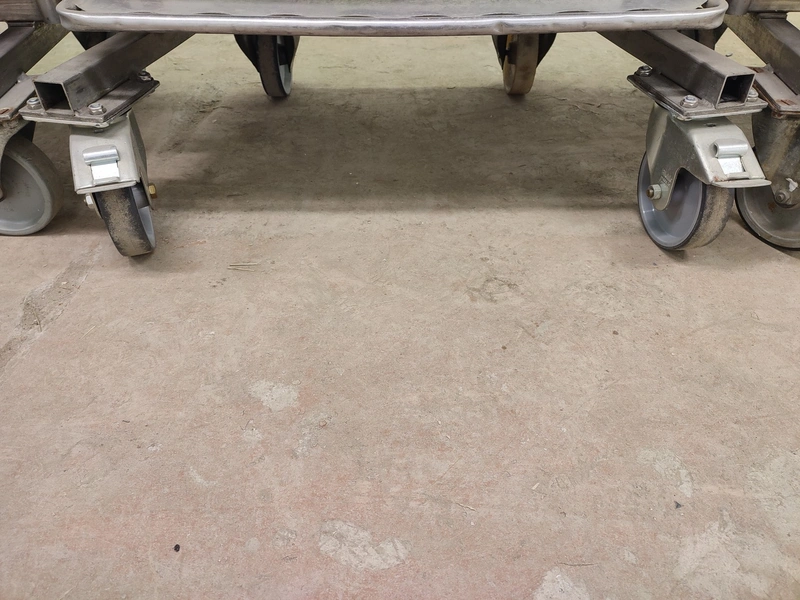 3 s/s defrosting trolleys, 8 floors, floor dimensions: (8x) 750 mm x 600 mm, distance between floors: 180 mm, total dimensions: (3x) 880 mm x 640 mm x 1810 mm.