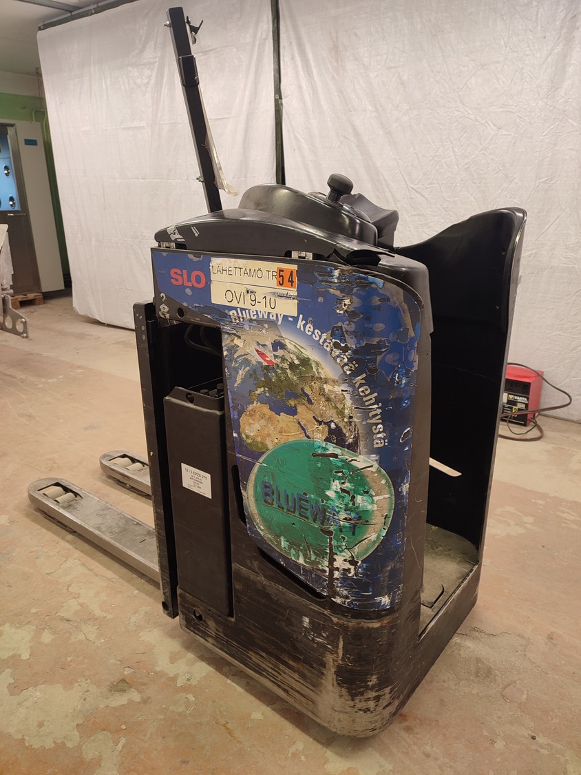 Rocla OYJ electric pallet lifter, type: T20ac, serial number: 5825410, year of construction: 2008, 24 V, capacity: 2000 kg, weight without battery: 500 kg, weight battery: 322 kg, fork length: 1150 mm, total dimensions: 1900 mm x 800 mm x 1700 mm. Including Varta electronic battery charger.