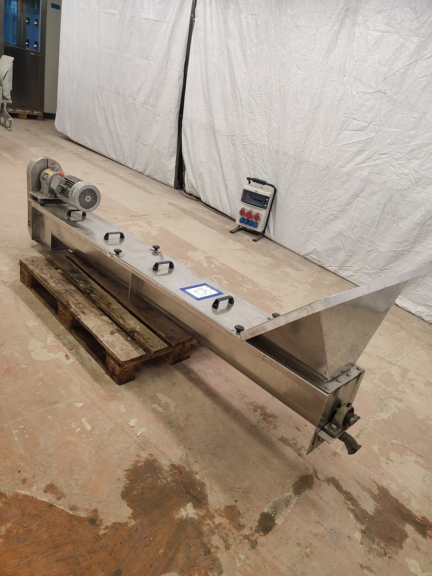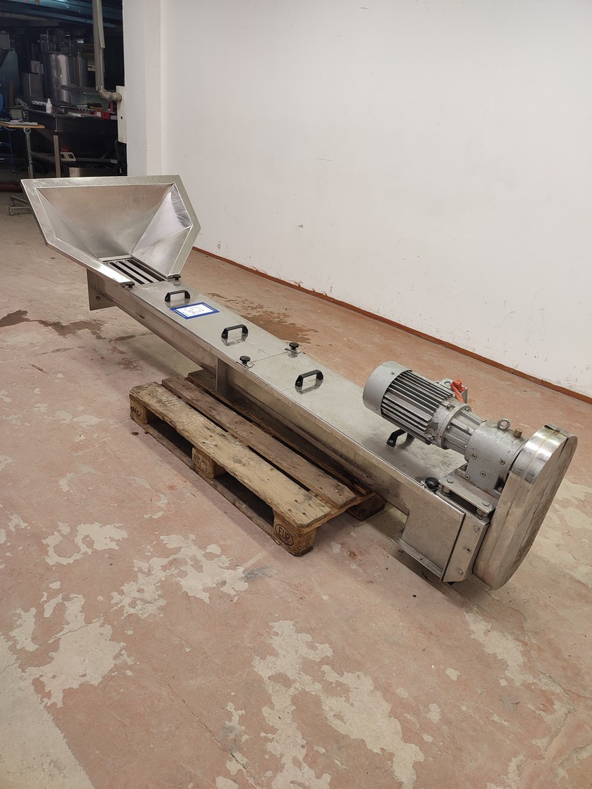 Jorgense elevating screw, number: 60850/1 282-01, year of construction: 1989, s/s screw, screw diameter: 200 mm, total dimensions: 2900 mm x 900 mm x 950 mm. Incomplete.