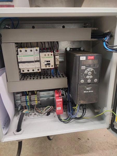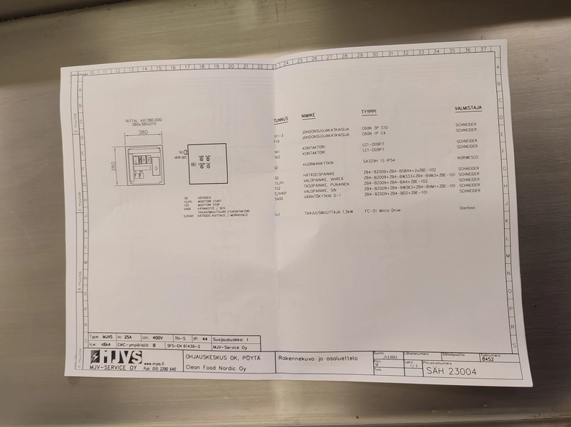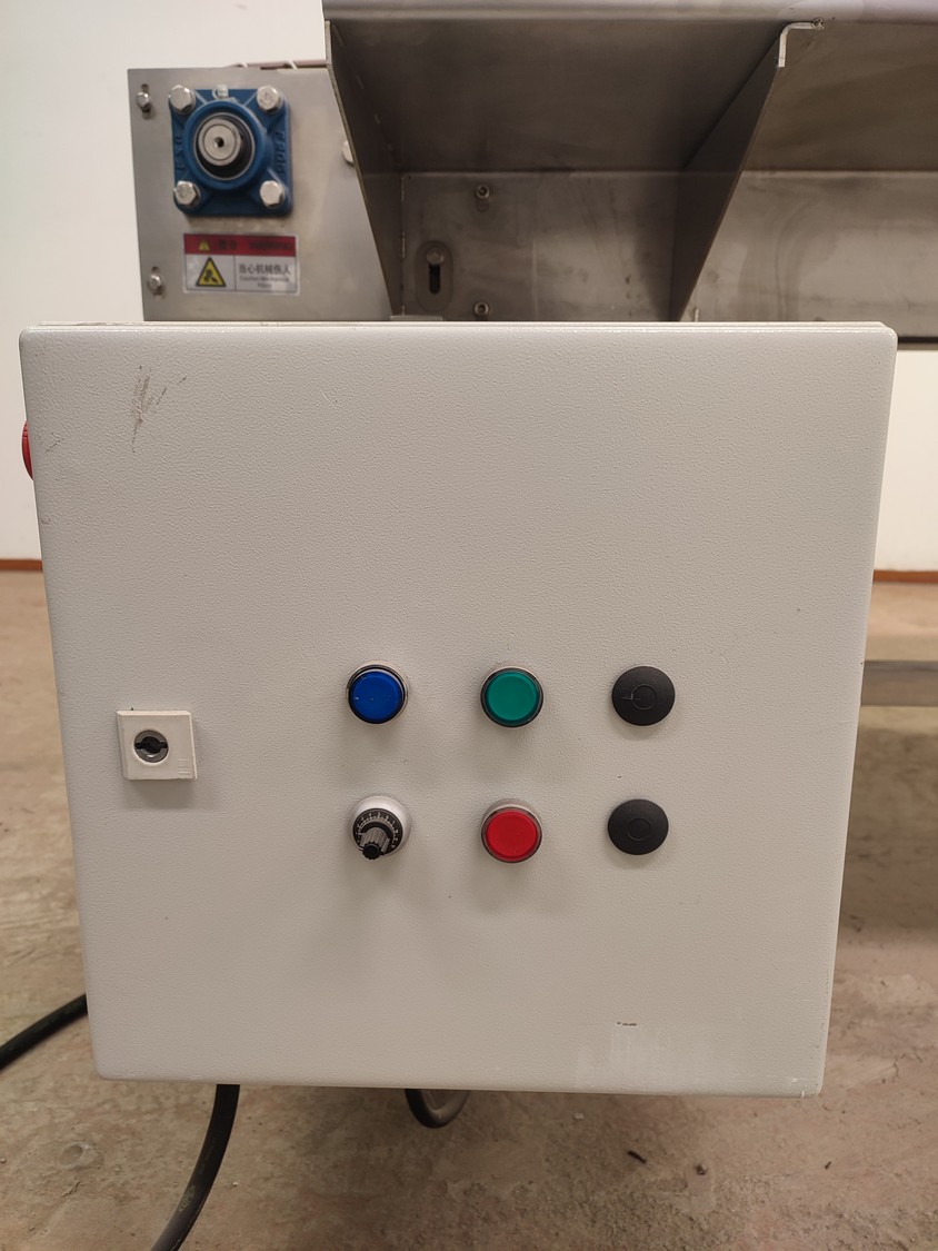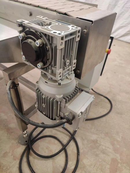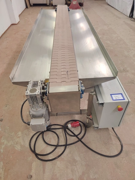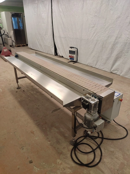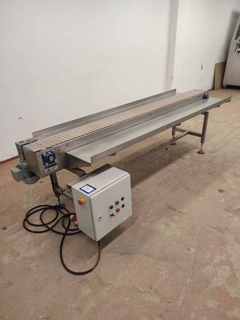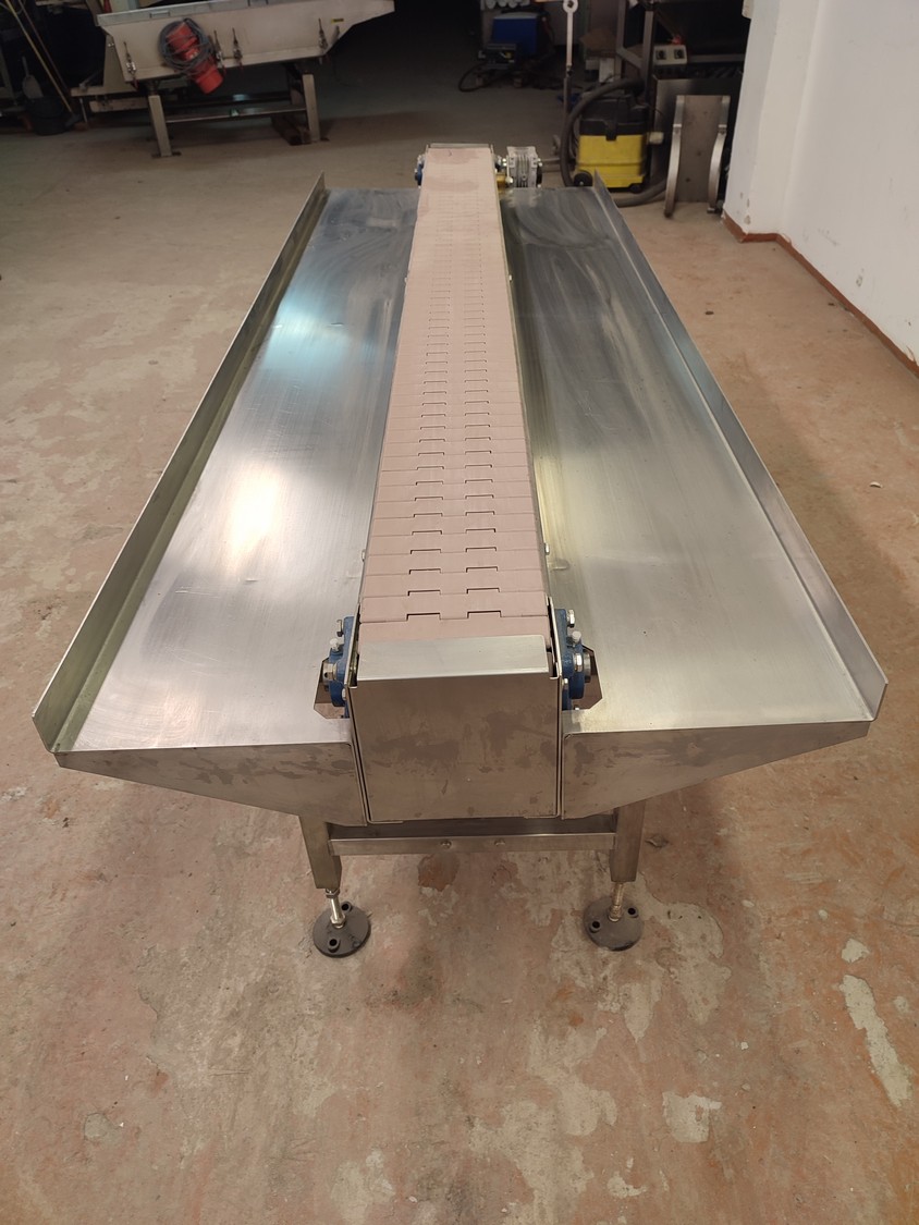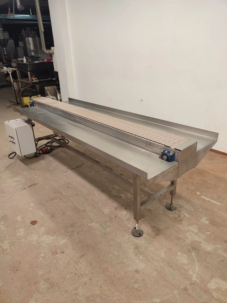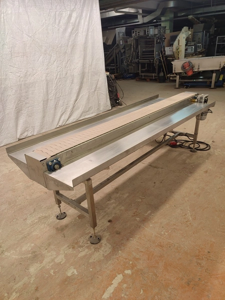 Transport belt with s/s frame, plastic belt width: 190 mm, total dimensions 2600 mm x 950 mm x 770 mm.