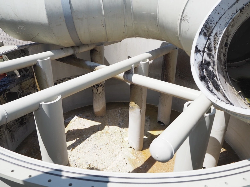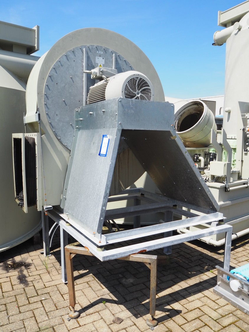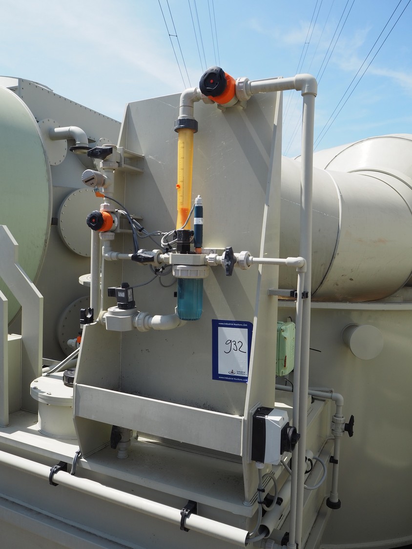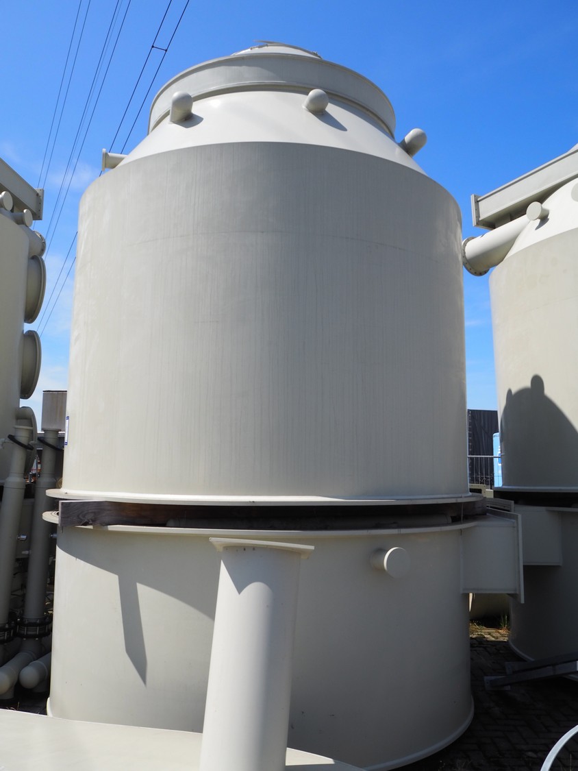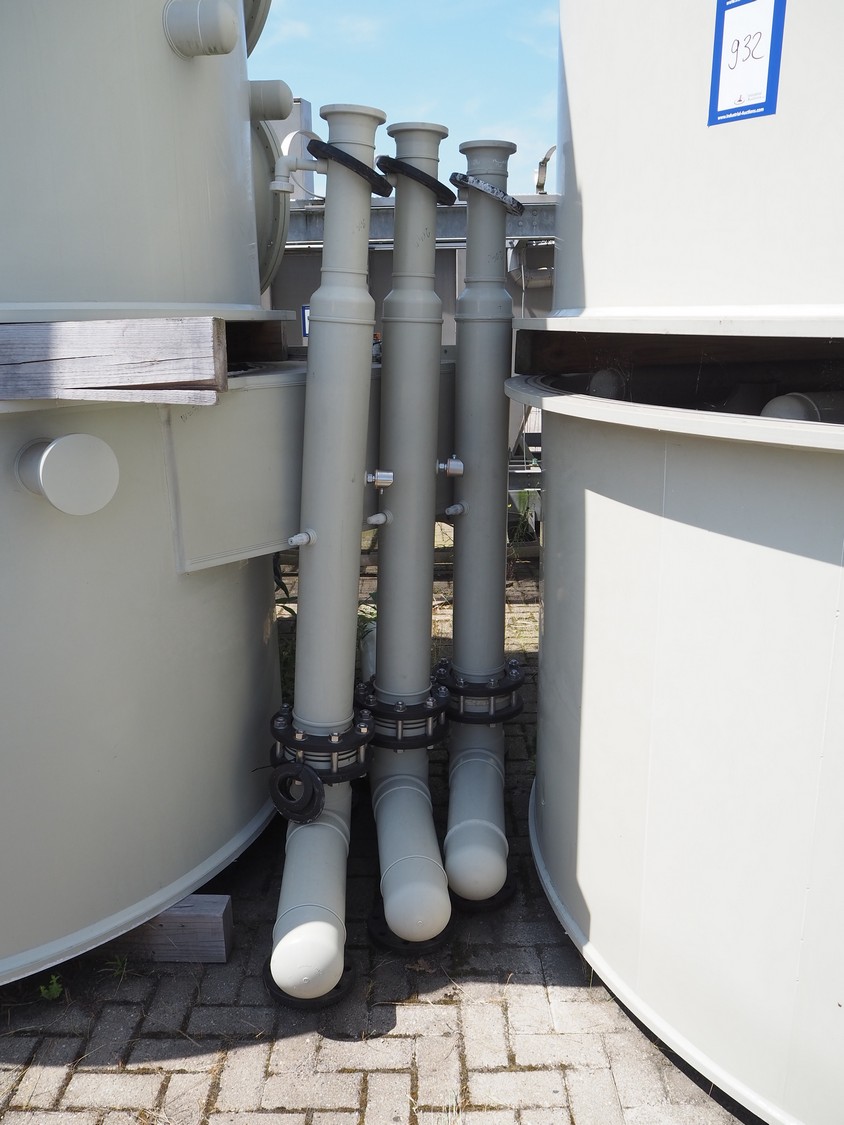 E.S.A. Group Odor Technology gas washing installation, consisting of: 4 plastic gas washing tanks, dimensions: (3x) 3000 mm x 4200 mm x 4450 mm, (1x) 3200 mm x 2900 mm x 4450 mm, blower, dimensions: 2700 mm x 3700 mm x 2850 mm, switch cabinet, dimensions: 1800 mm x 500 mm x 2200 mm, 4 plastic cabinets with Prominent dosing pump, capacity: 13.5 liter per hour, dimensions cabinets: (4x) 700 mm x 550 mm x 1000 mm. Lot has already been dismantled.