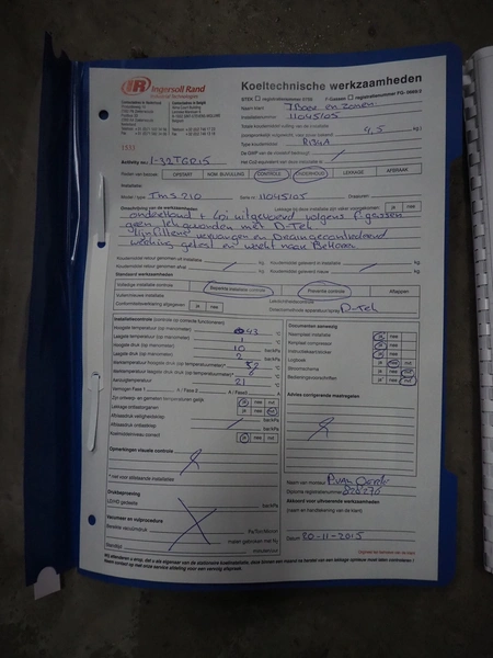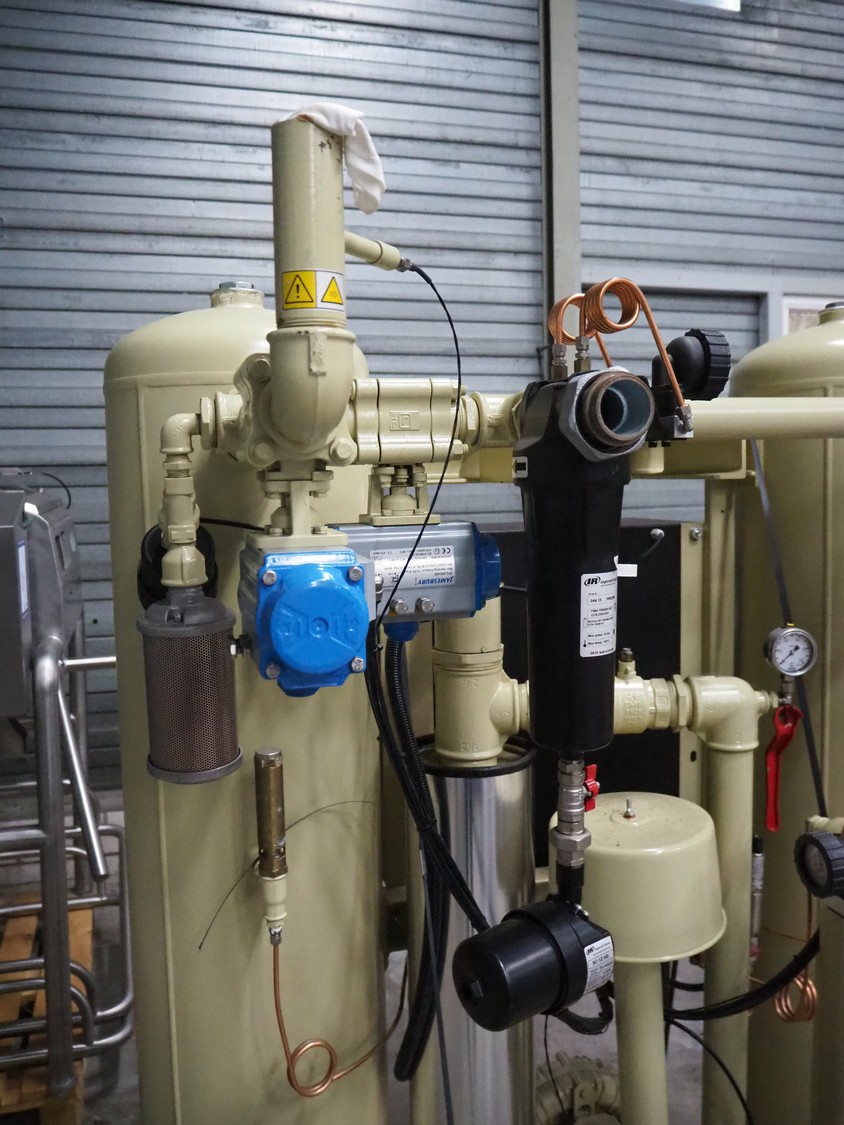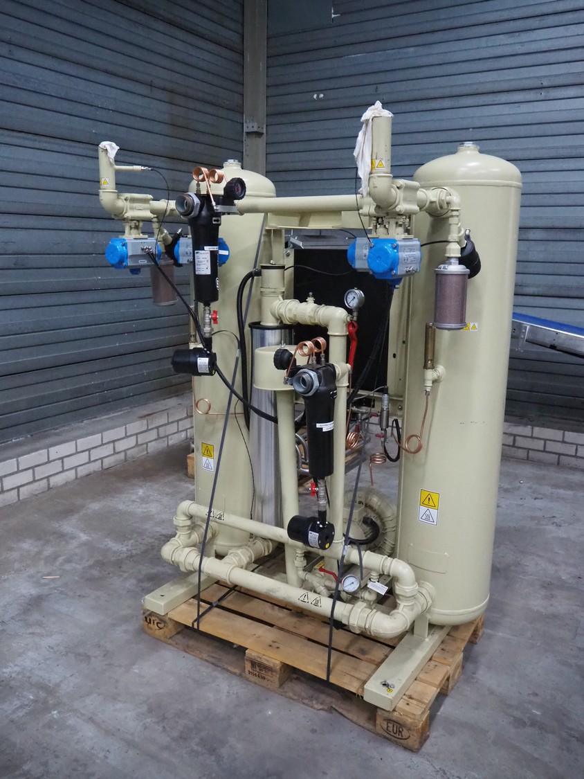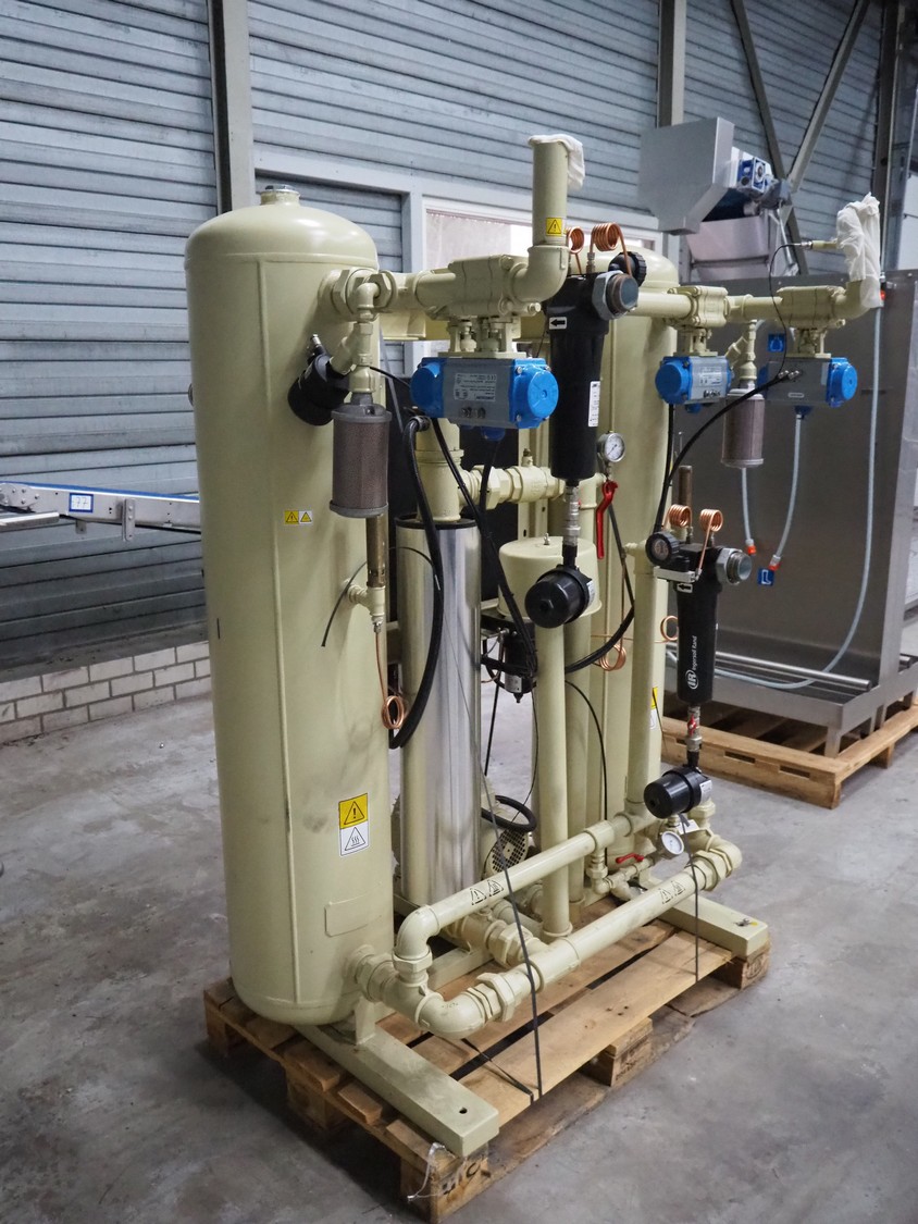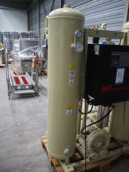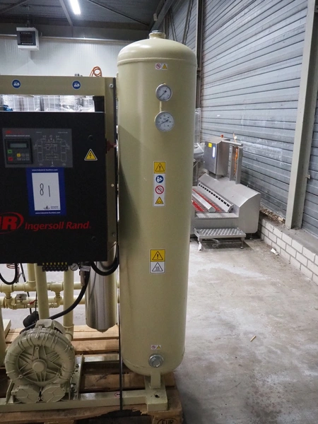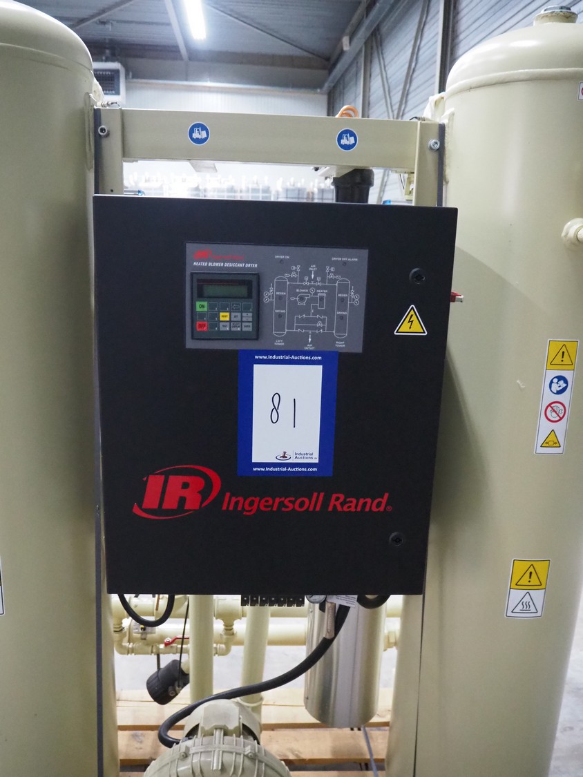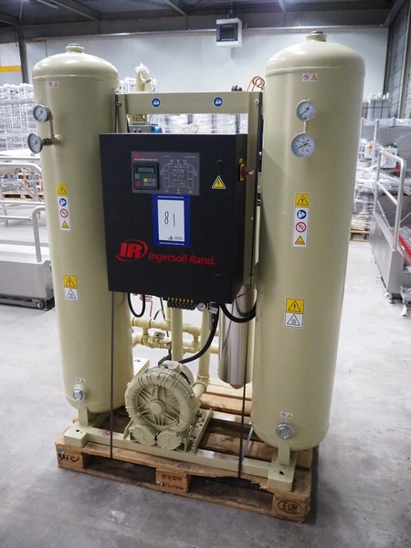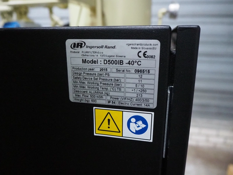 Ingersoll Rand heated blower desiccant dryer, model: D500IB, serial number: 096515, year of construction: 2015, 400 V, 3 Ph, 50 Hz, 14 A, PS: 12 bar, TS: +1/+250 °C, maximum flow: 500 m³/h, weight: 600 kg, dimensions: 1400 mm x 1100 mm x 1900 mm.
