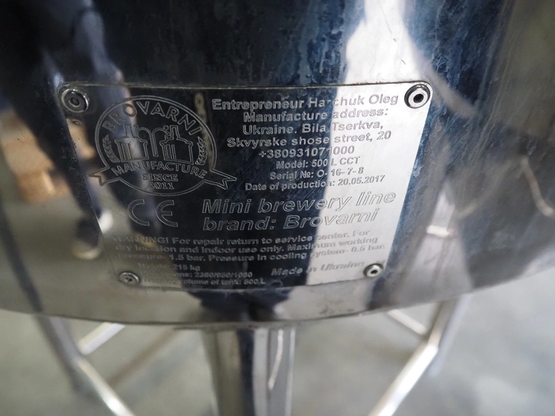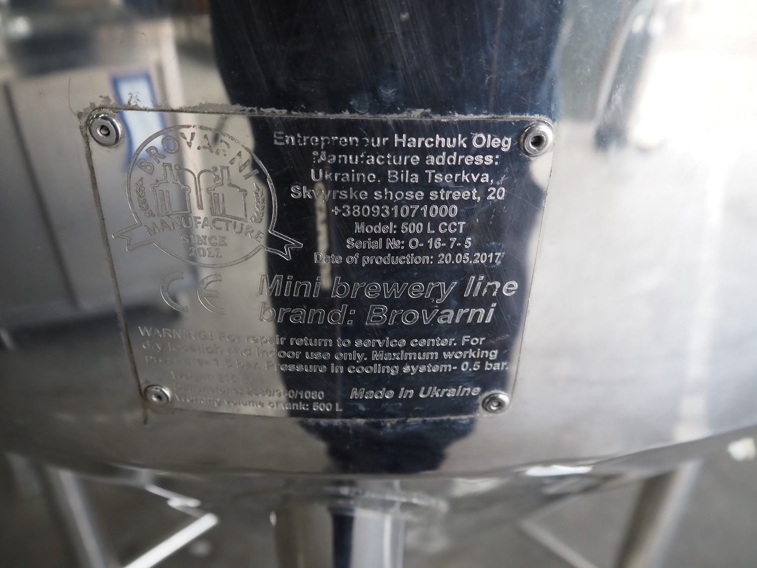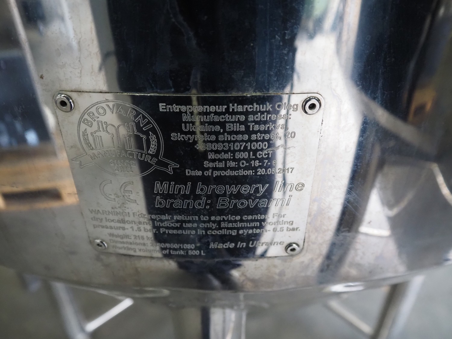 3 Dreher / Brovarni dispensing tanks, model: 500 L CCT, serial numbers: O-16-7-5,O-16-7-6, O-16-7-8, year of construction: 2017, volume: (3x) 500 litres, weight: (3x) 215 kg, dimensions: (3x) 1100 mm x 1000 mm x 2320 mm.