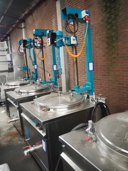 2015-1003: Combination: 5 Bartscher cooking vessels with Simix mobile height adjustable mixer
