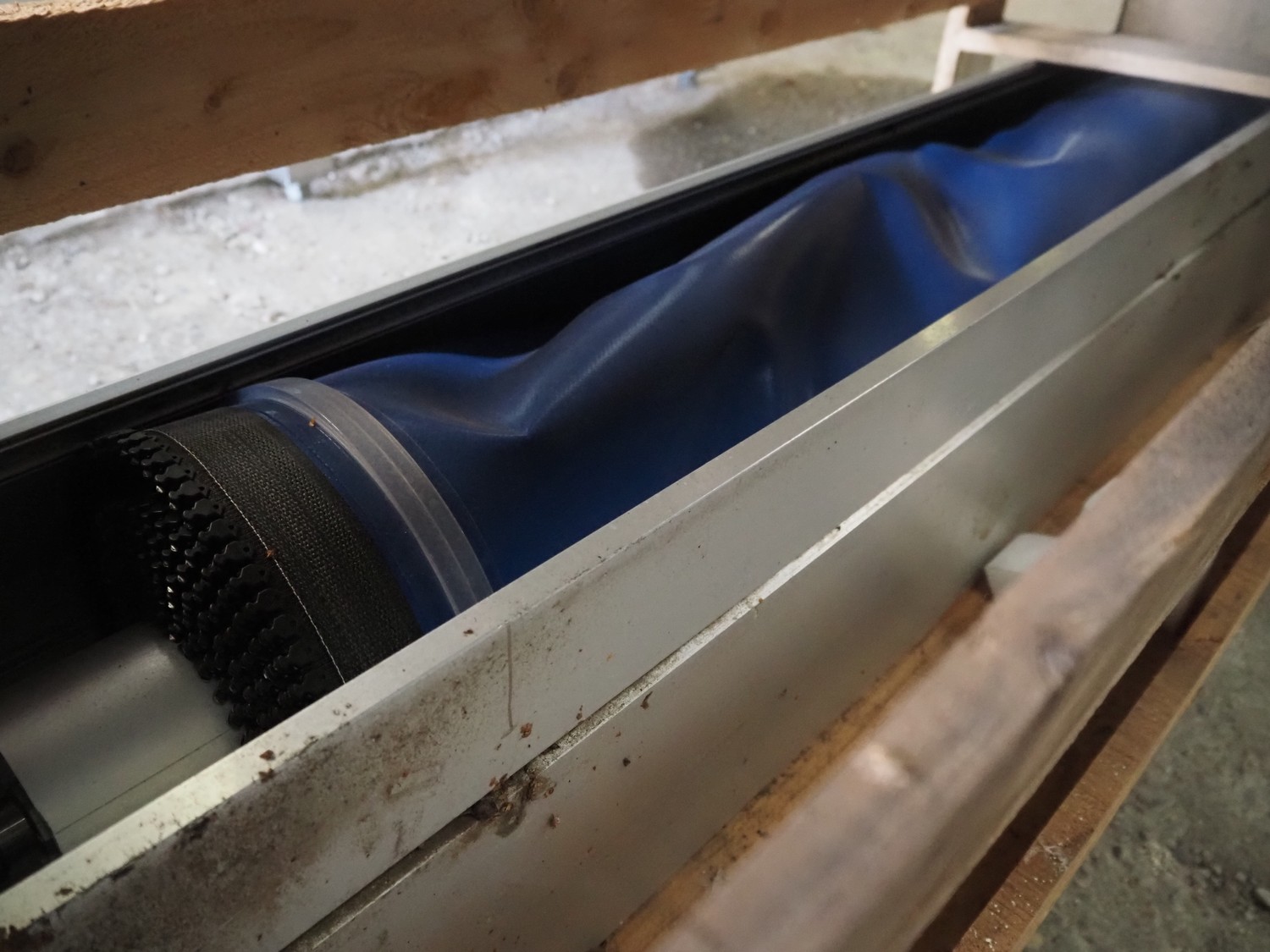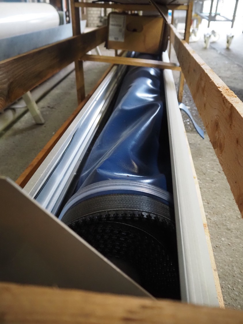 Electric shutter door in wooden crate, door width: 3500 mm, dimensions wooden box: 4060 mm x 550 mm x 860 mm.