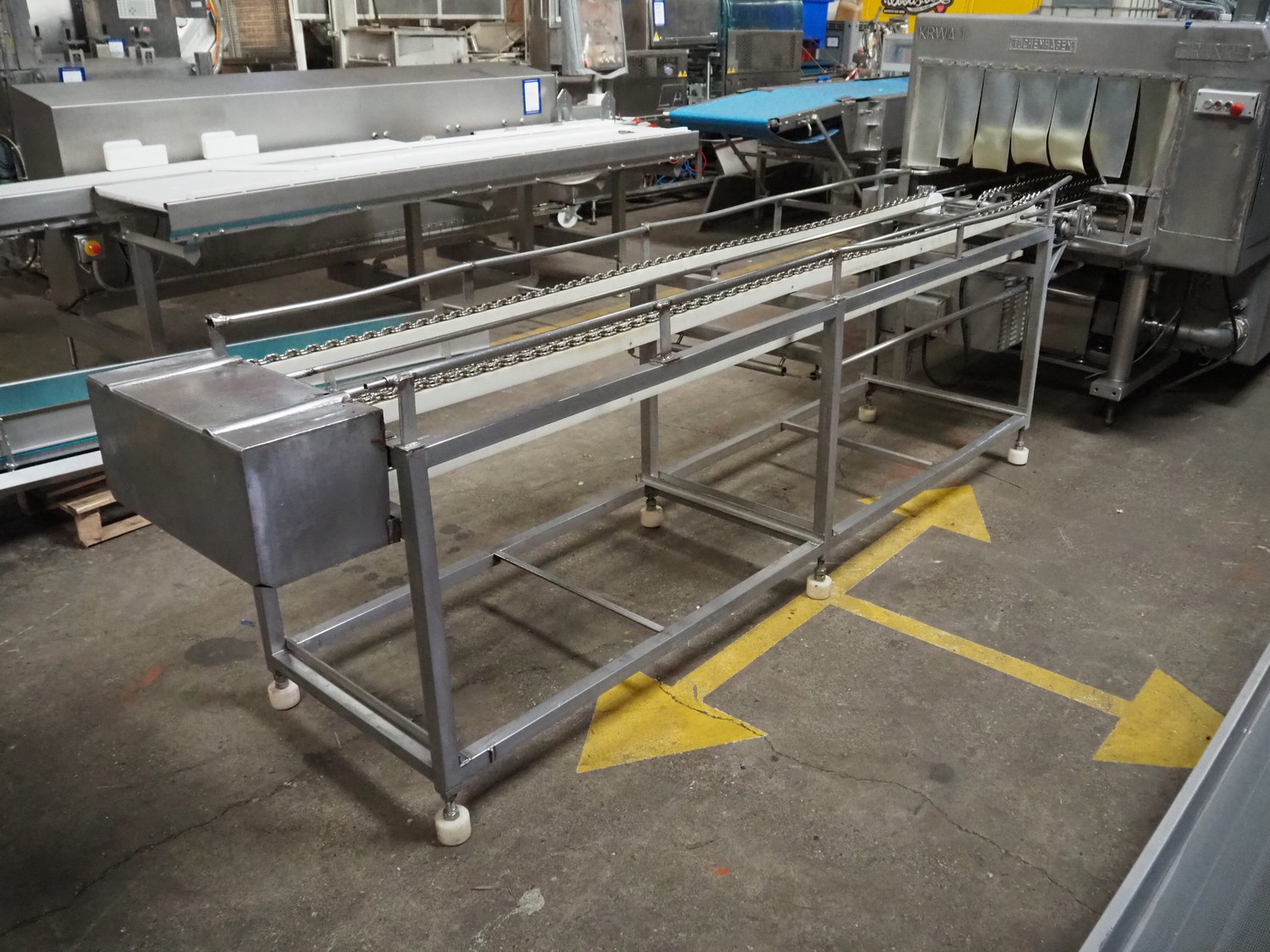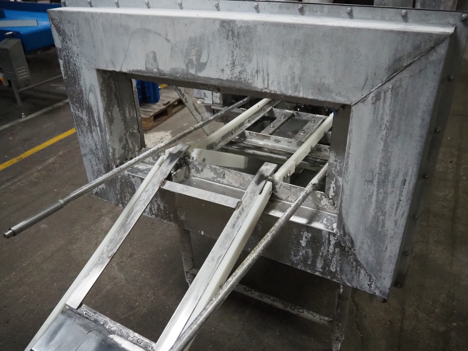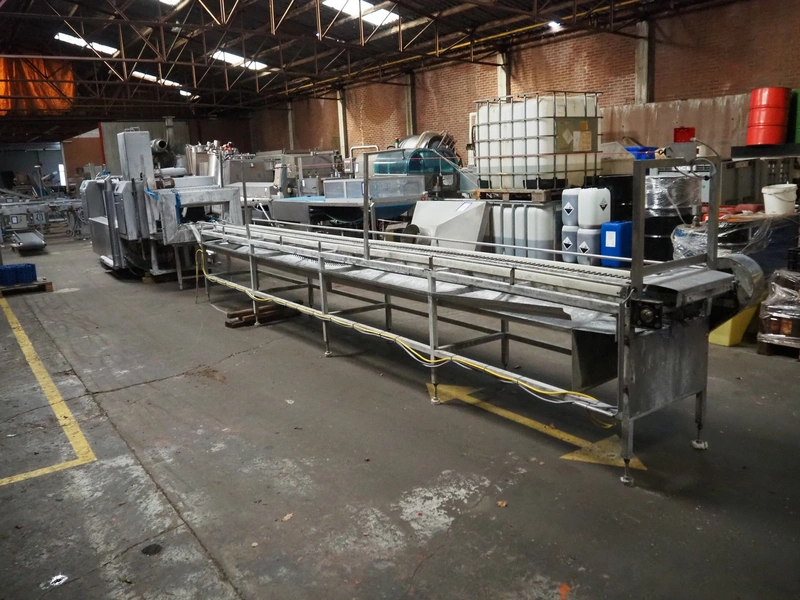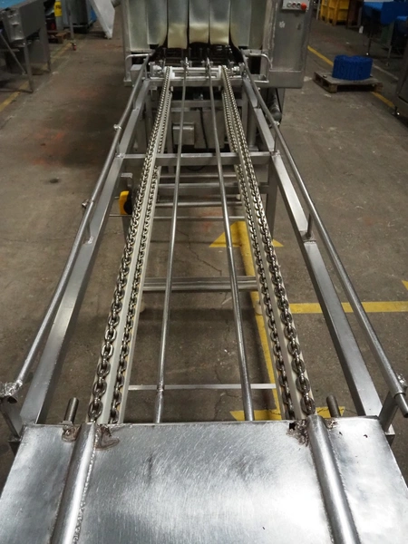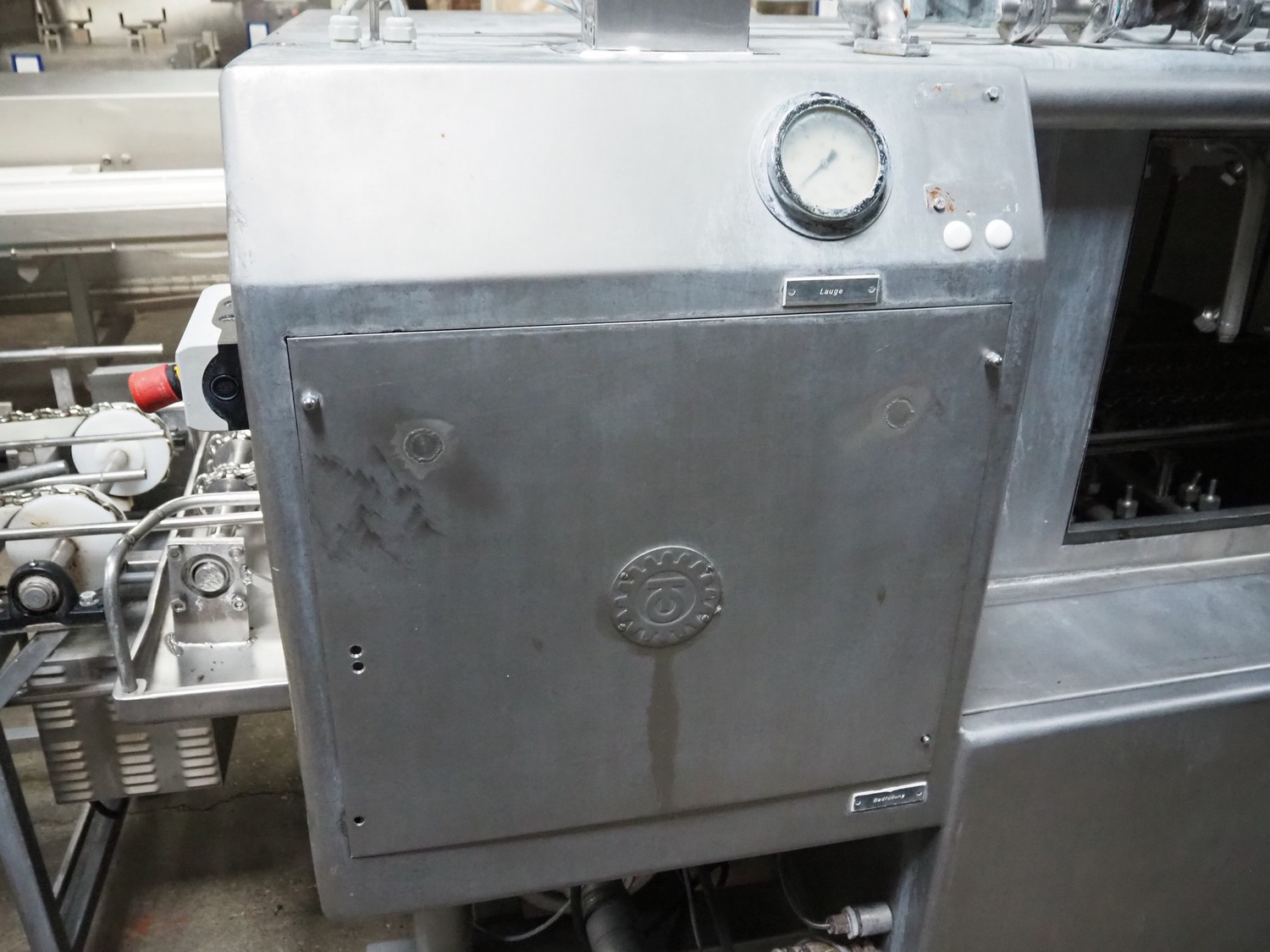 Tuchenhagen crate washing machine, type: KT 120L, number: 550, clearance: 610 mm x 450 mm, total dimensions: 16400 mm x 1600 mm x 2300 mm.