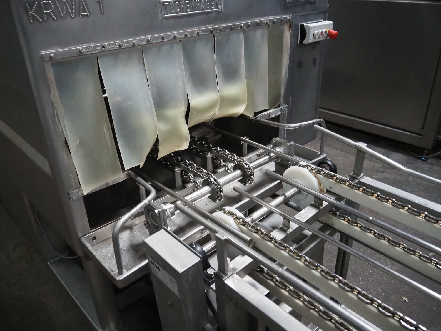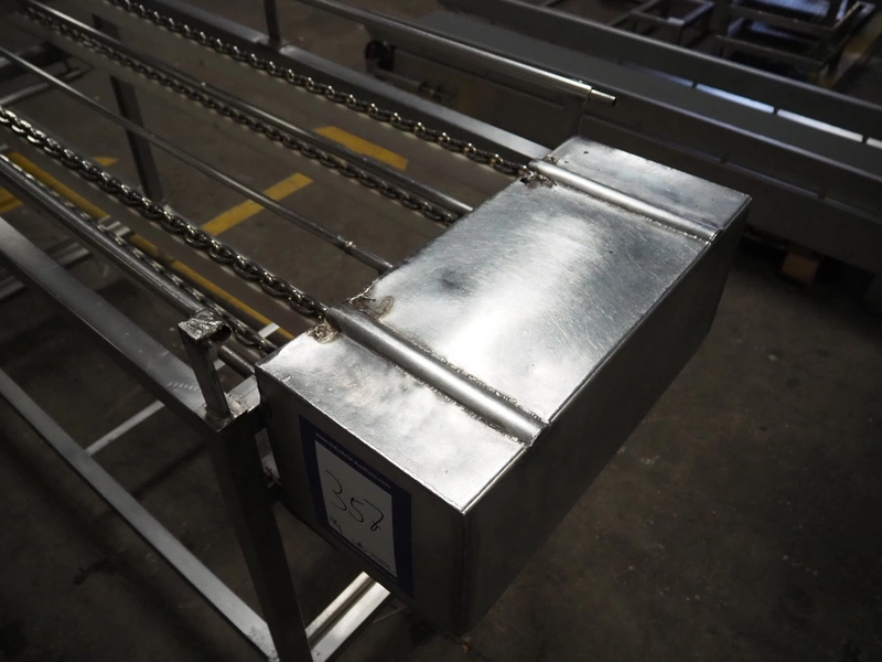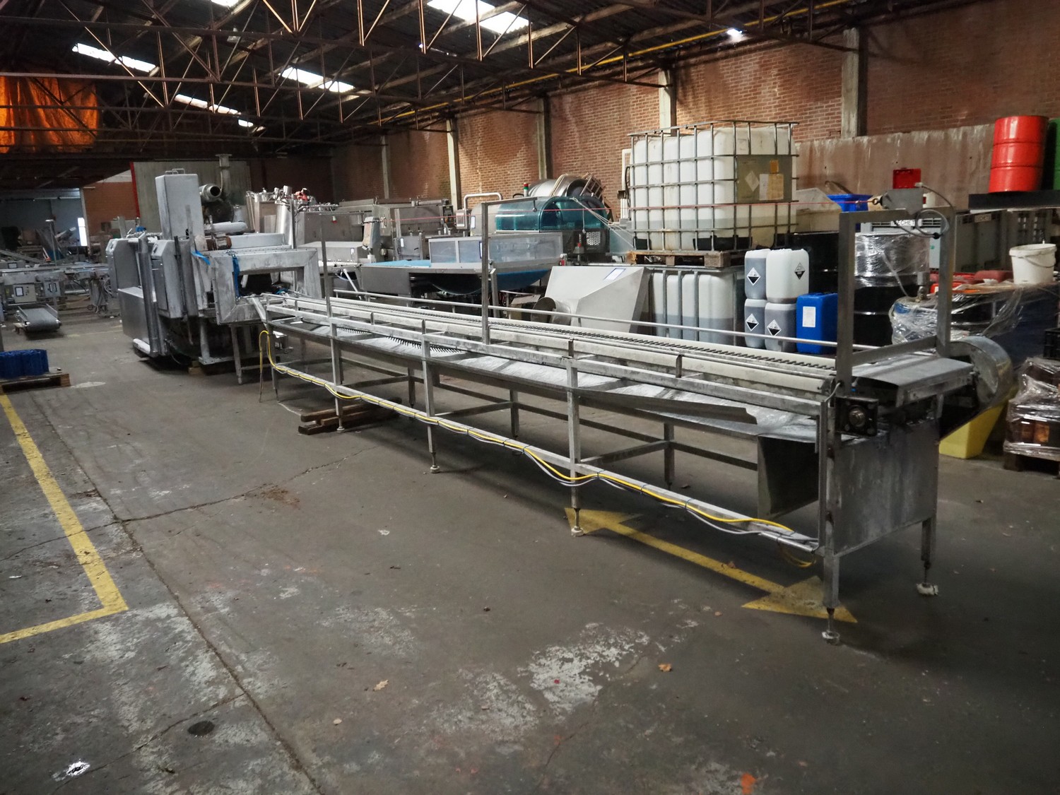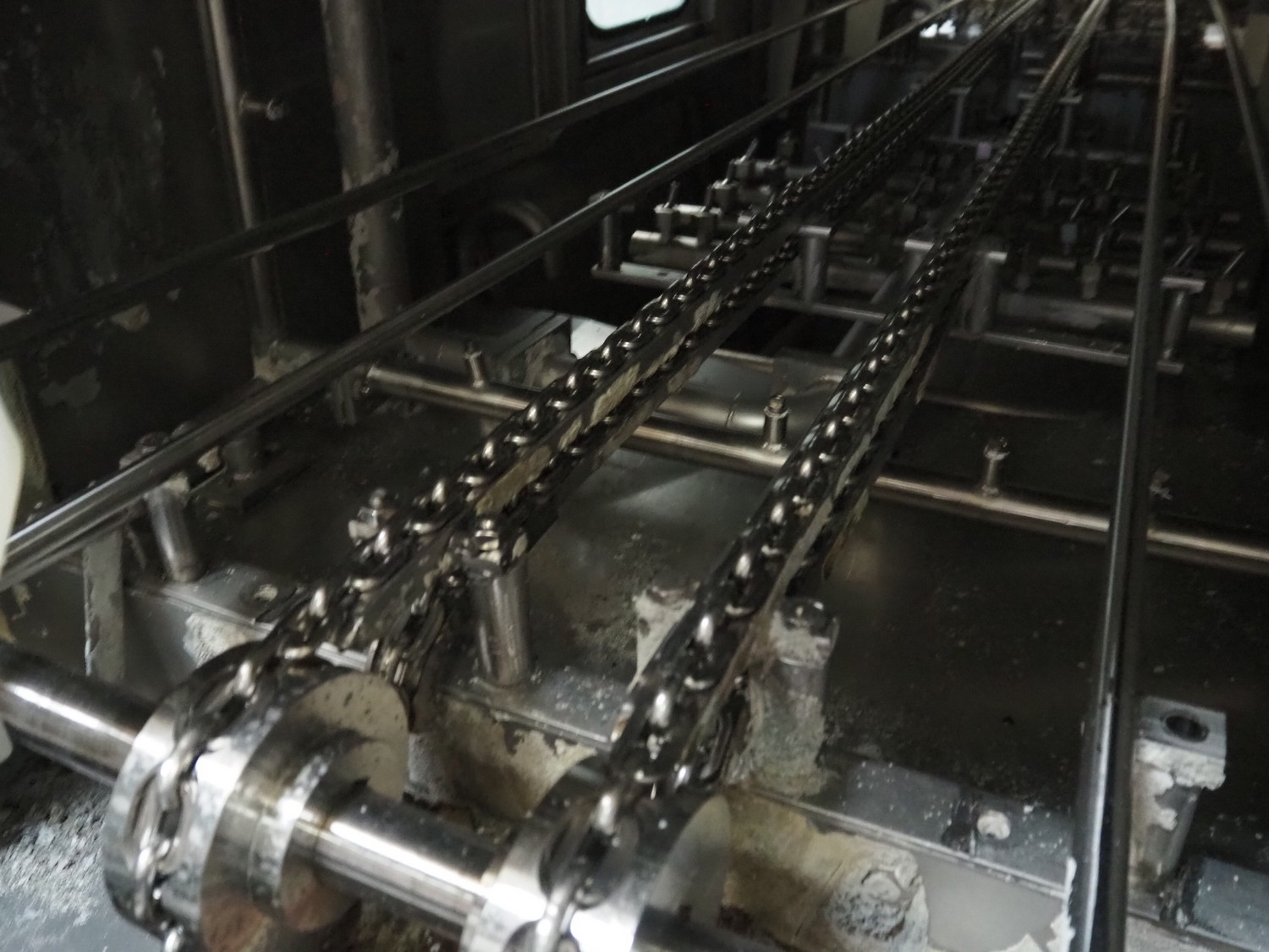 Tuchenhagen crate washing machine, type: KT 120L, number: 550, clearance: 610 mm x 450 mm, total dimensions: 16400 mm x 1600 mm x 2300 mm.