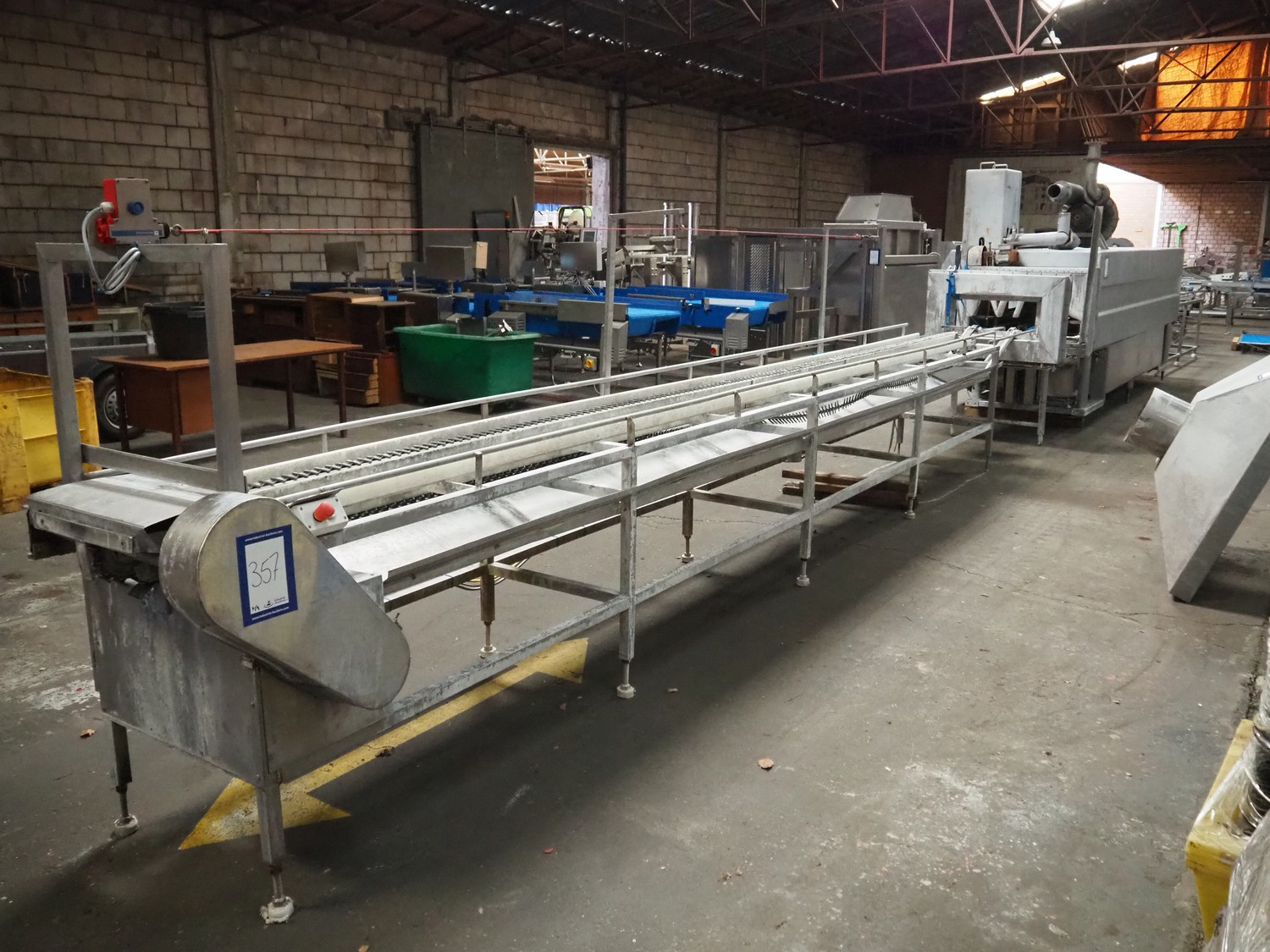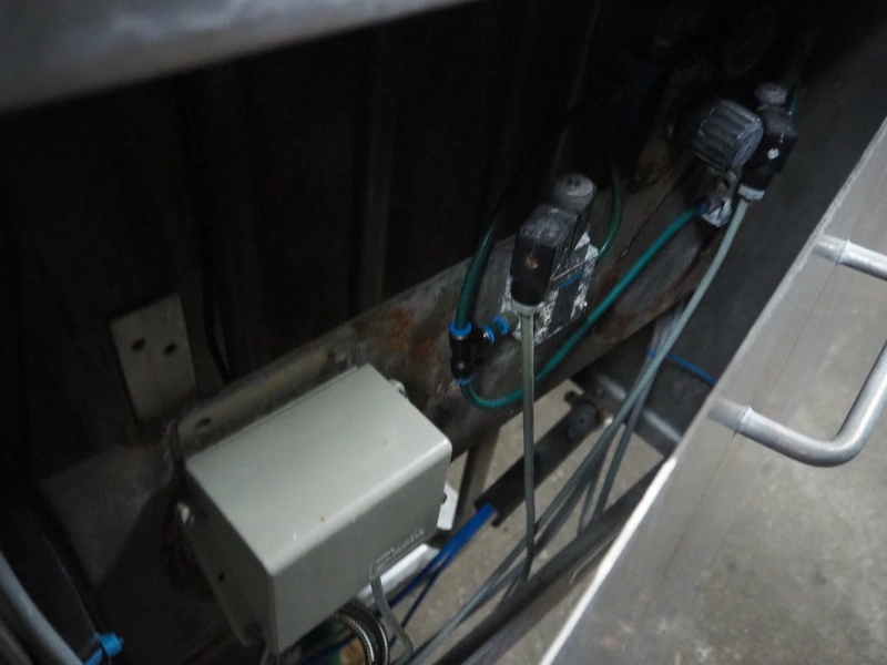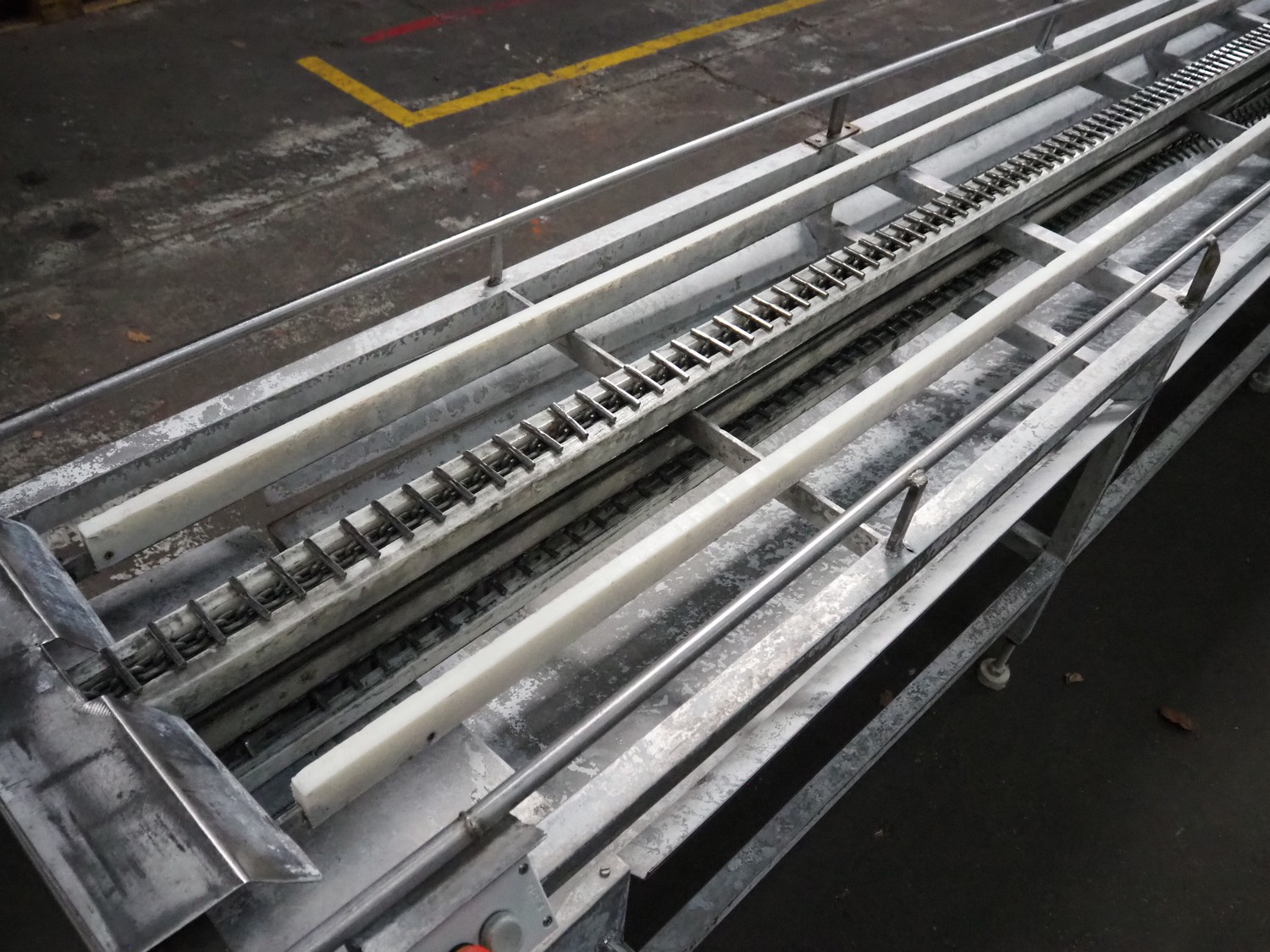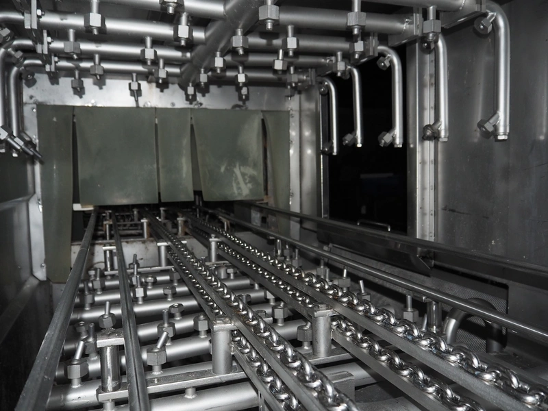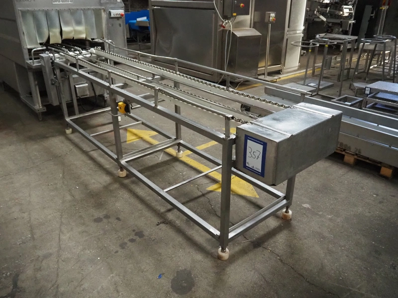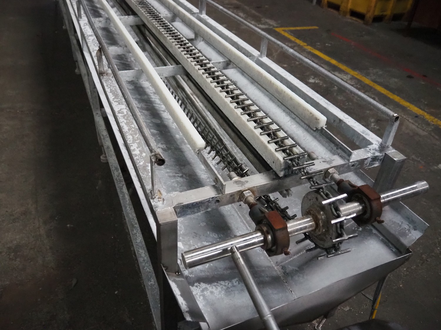 Tuchenhagen crate washing machine, type: KT 120L, number: 550, clearance: 610 mm x 450 mm, total dimensions: 16400 mm x 1600 mm x 2300 mm.