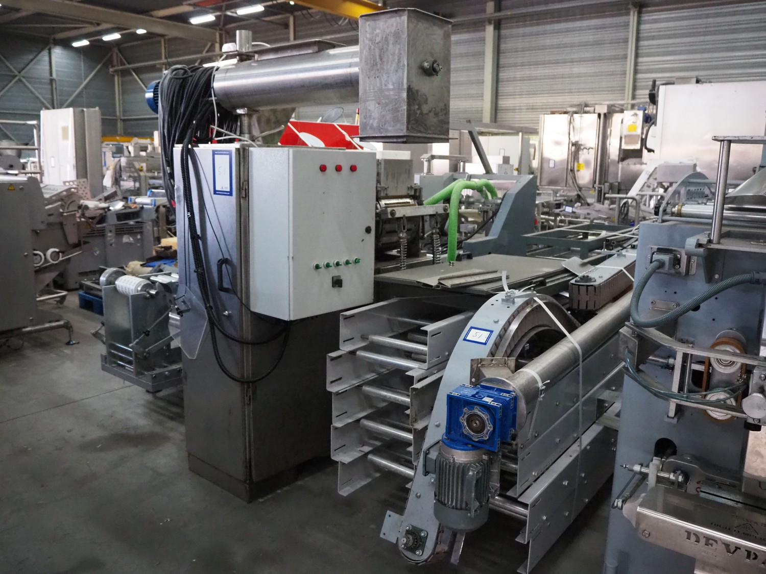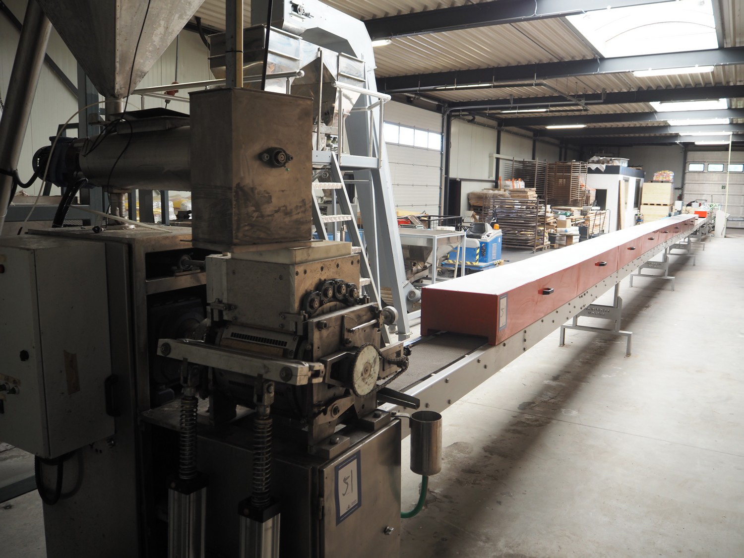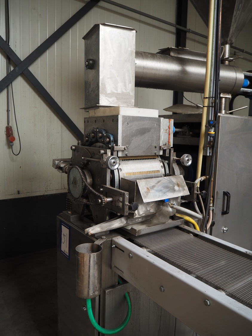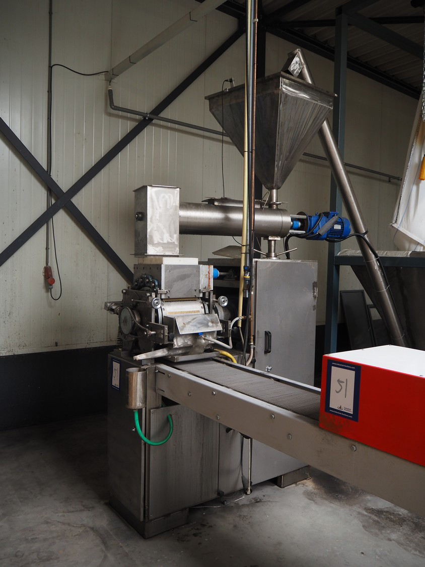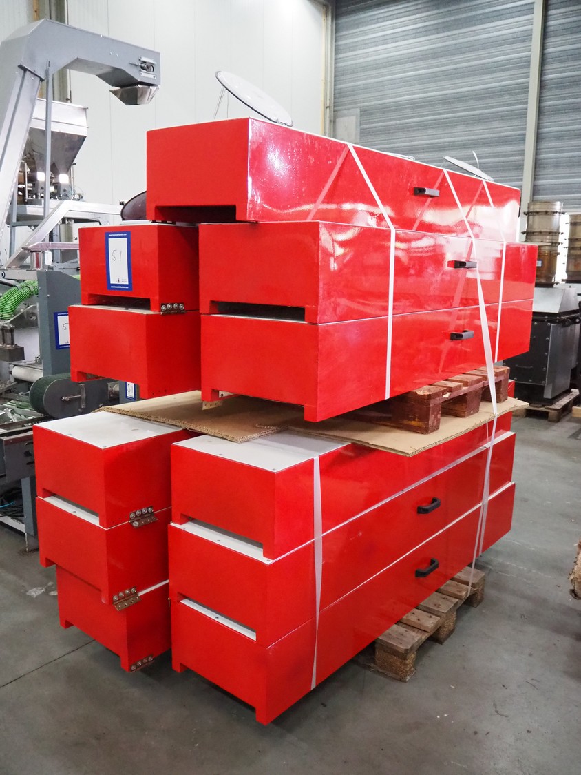 - Teknikeller Makina forming machine for sugar cubes, type: T.T.O.R. 125, 380 V, 3 Ph, 50 Hz, capacity: 12.500 kg/24 hours, dimensions forms: (20x) 10 mm x 15 mm, dimensions forming machine: 2000 mm x 900 mm x 2850 mm, with drying and cooling belt, s/s mesh belt, belt width: 295 mm, length drying area: 18000 mm, length cooling area: 4000 mm, including de-stacker, size: 100 mm x 200 mm, total dimensions: 33500 mm x 2000 mm x 2850 mm;