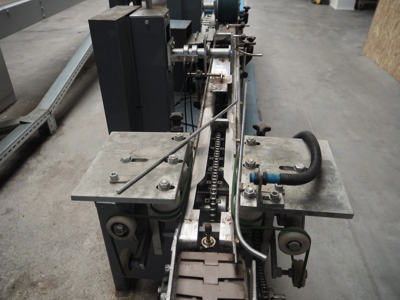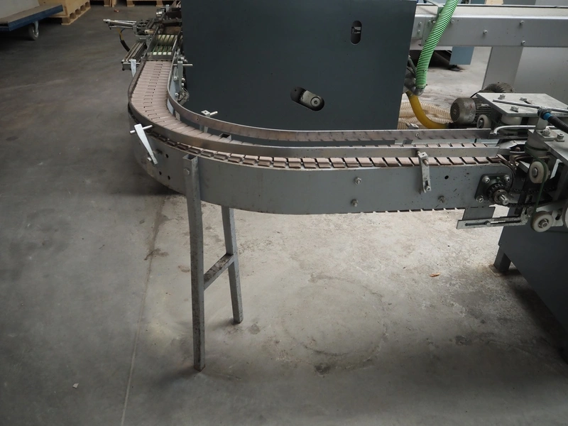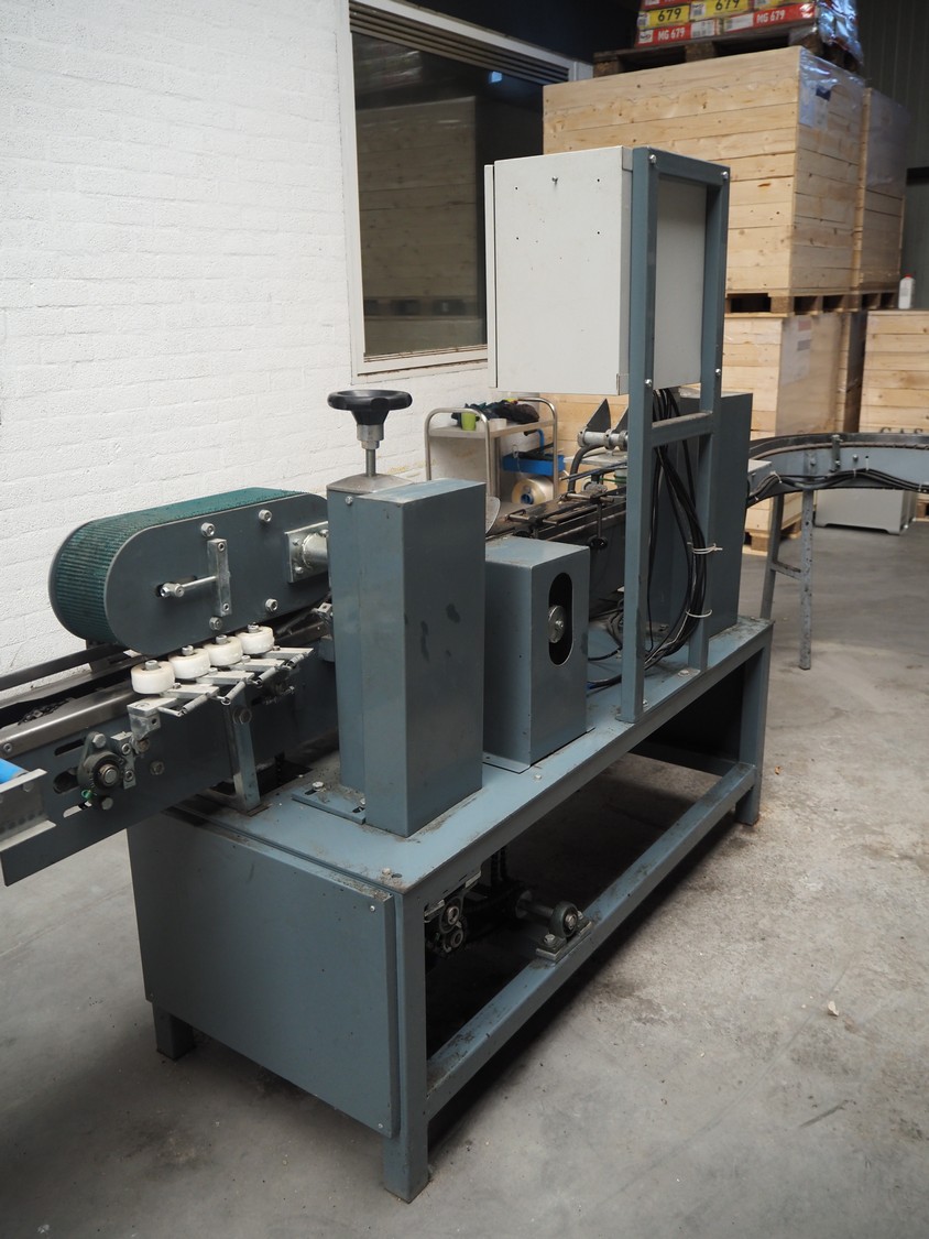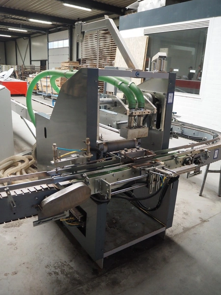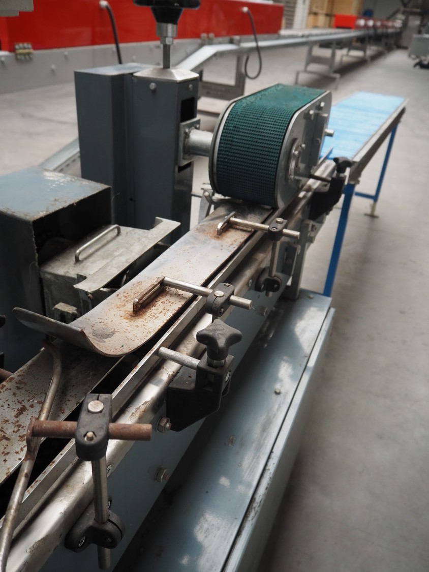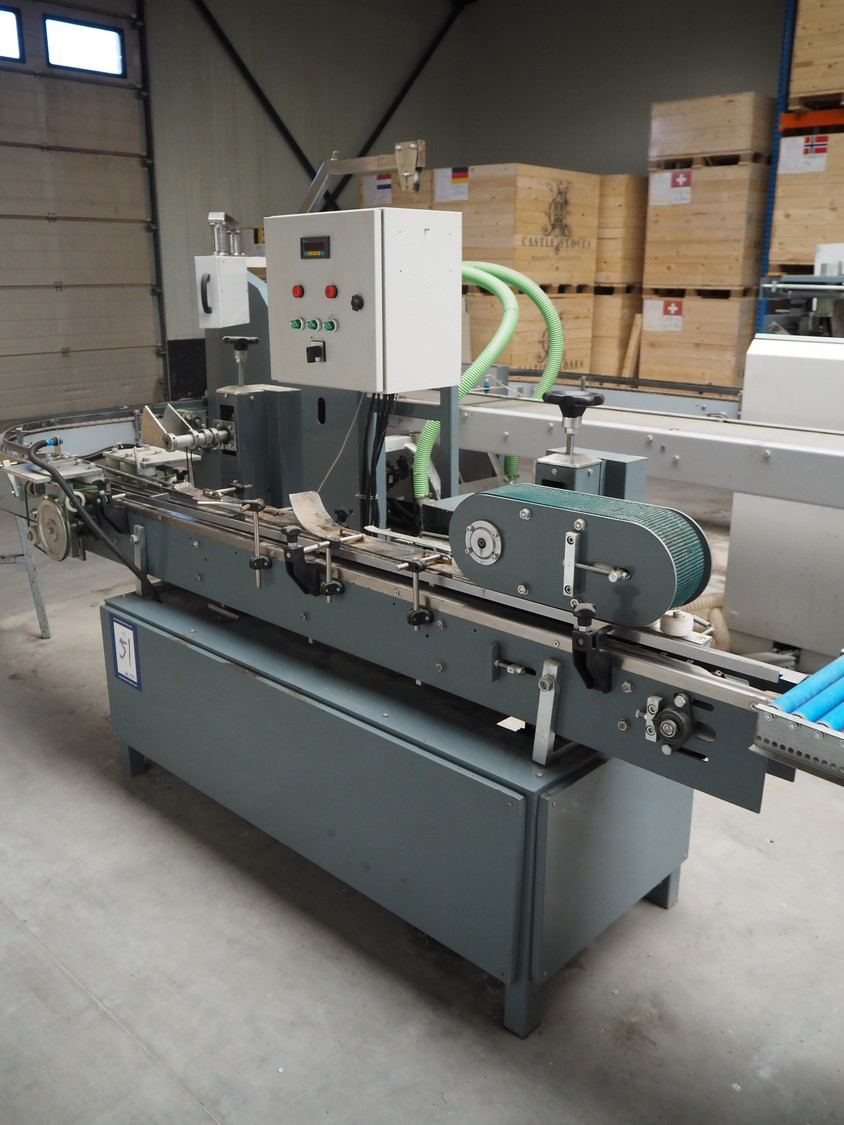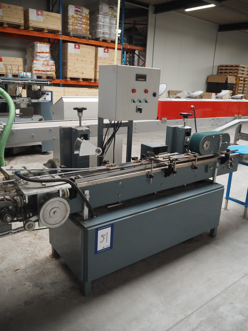- Box closing machine, belt width: 100 mm, distance between dividers: 330 mm, with glue unit, total dimensions: 2360 mm x 700 mm x 1600 mm;