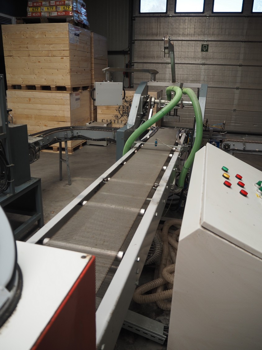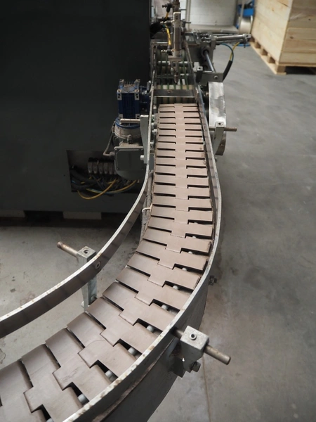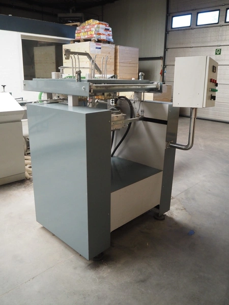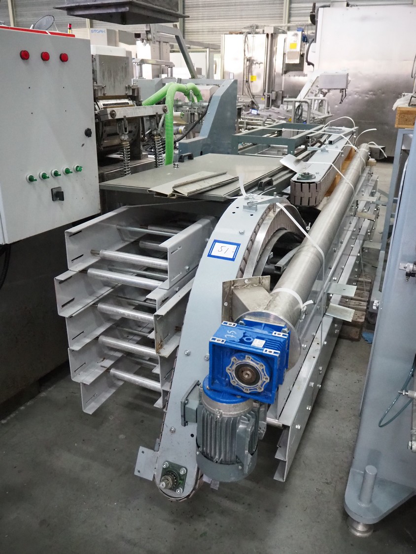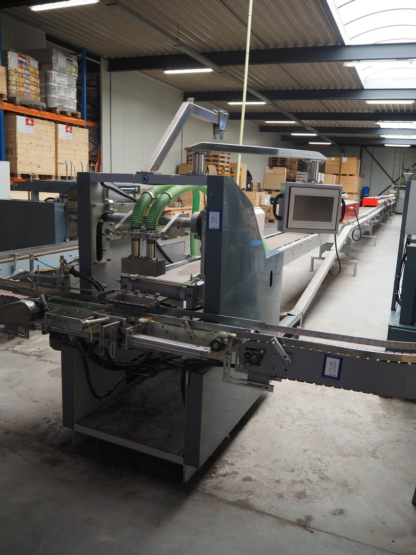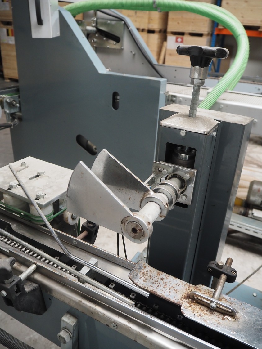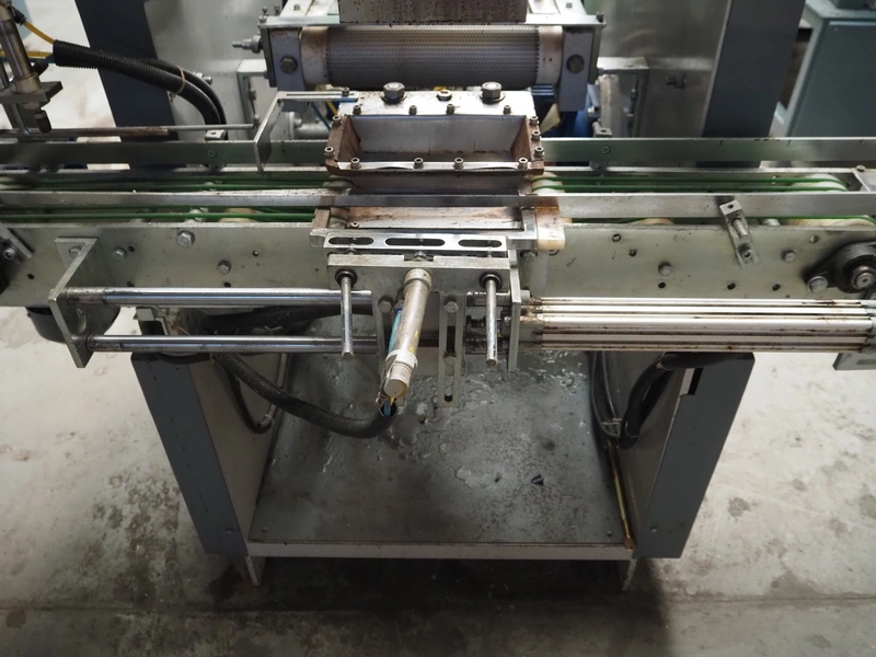 - Box closing machine, belt width: 100 mm, distance between dividers: 330 mm, with glue unit, total dimensions: 2360 mm x 700 mm x 1600 mm;