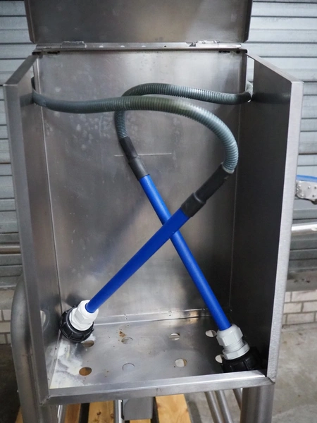 Kohlhoff Hygienetechnik GmbH & Co. KG double hand disinfection unit with tourniquet, type: SK 800 Twin, dimensions: 1300 mm x 1100 mm x 1550 mm.
