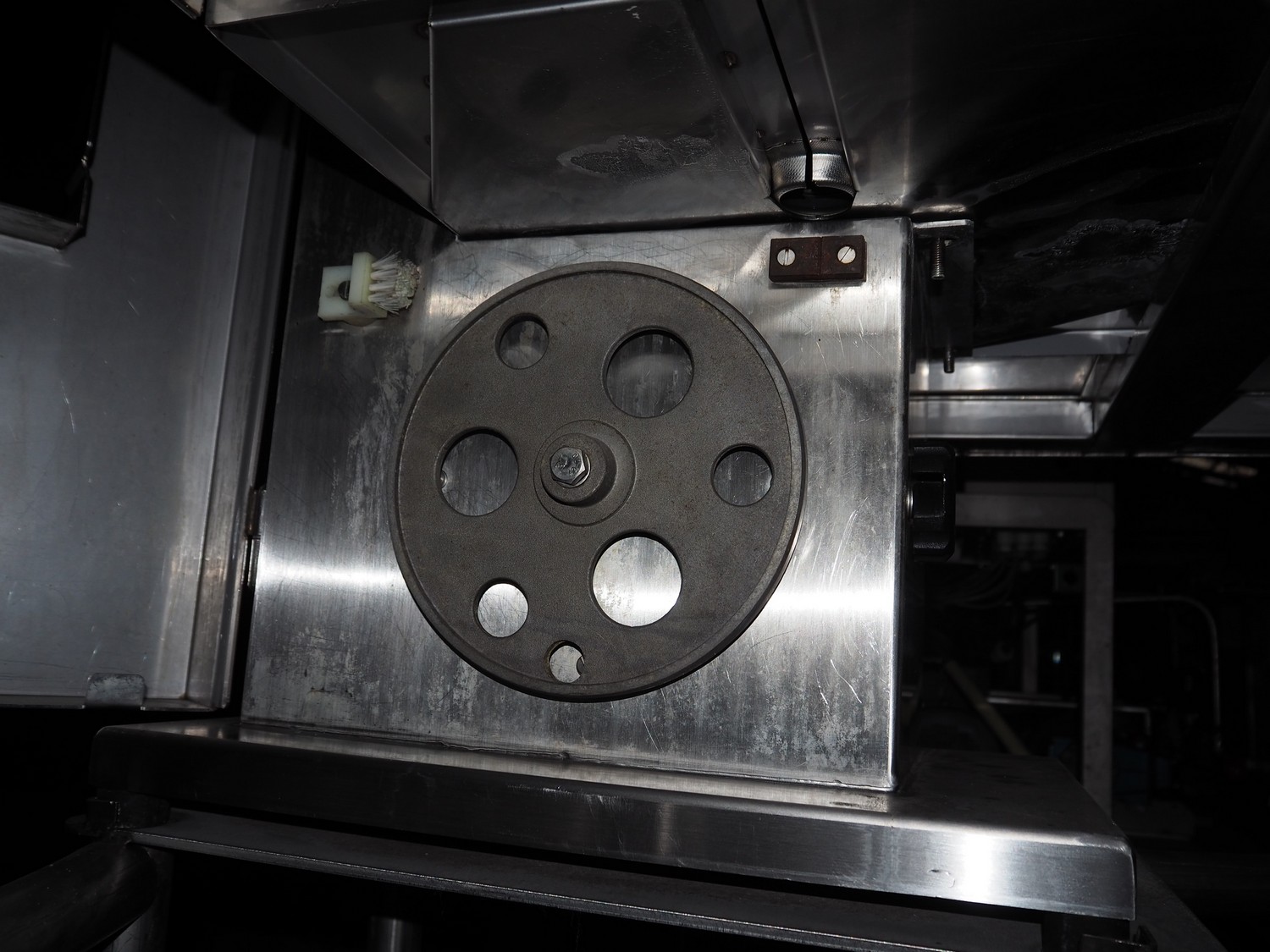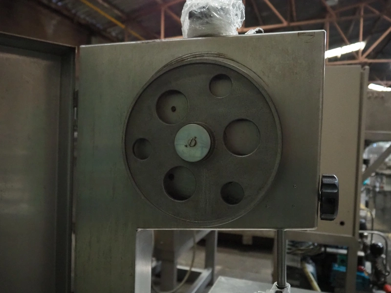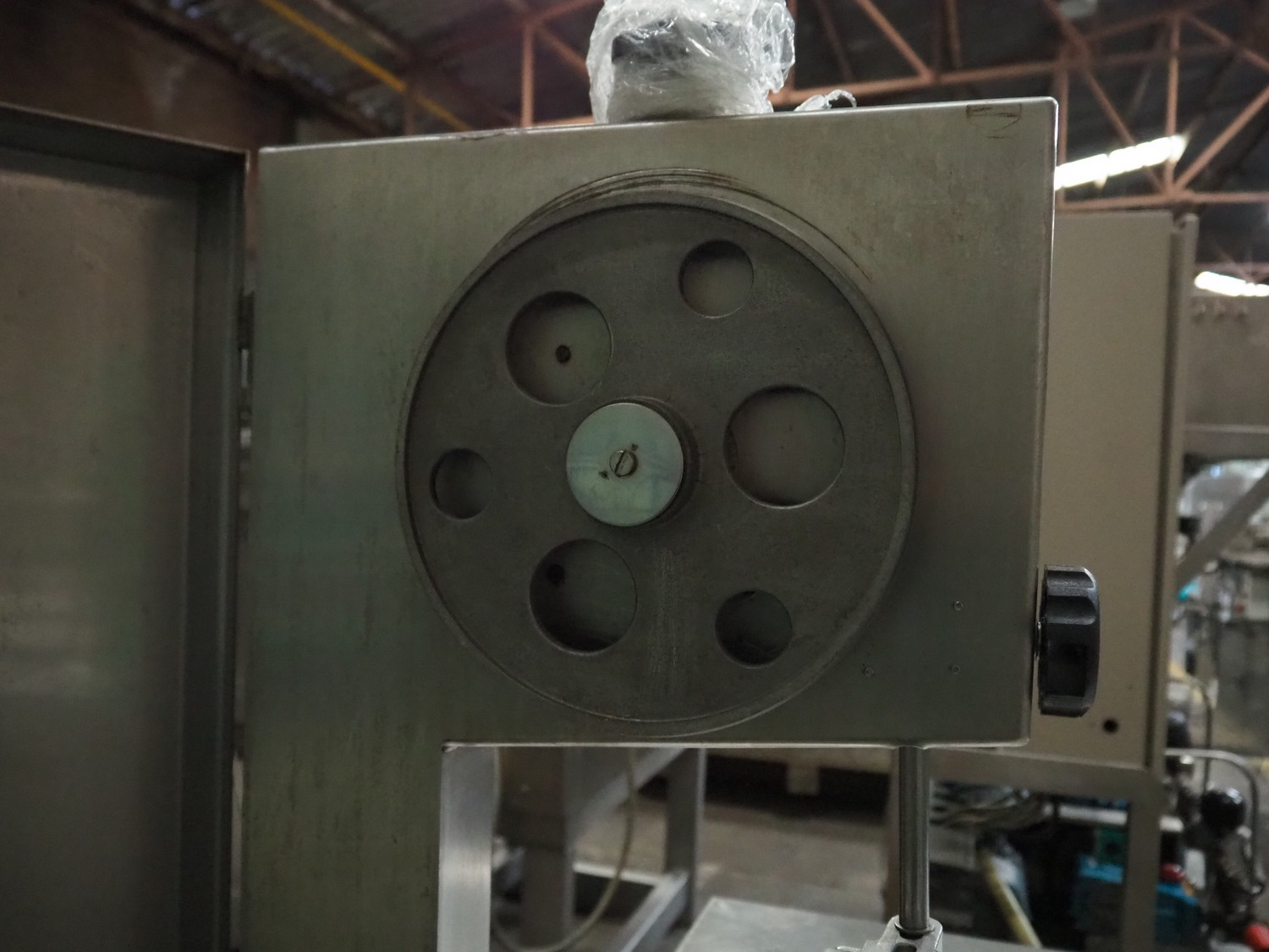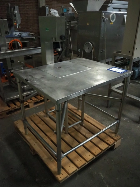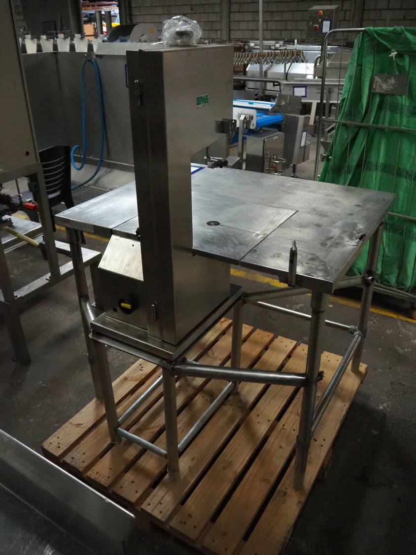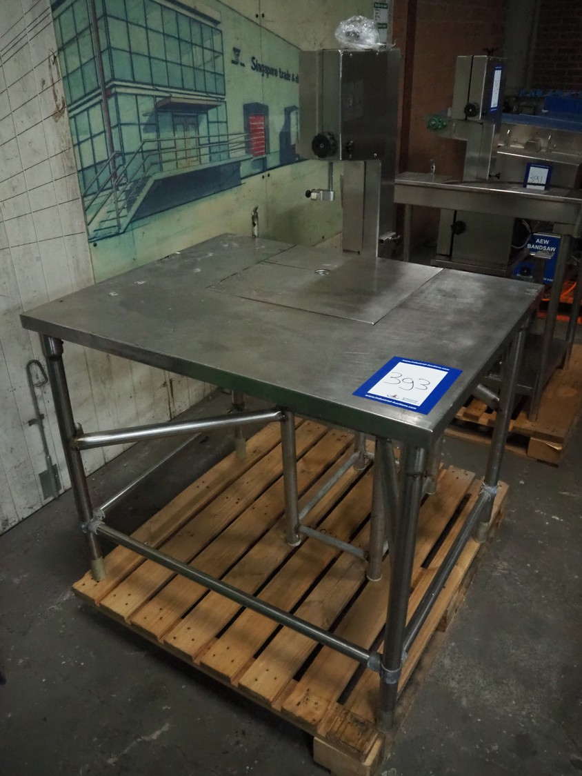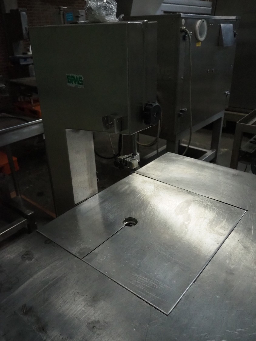 Bras bandsaw, dimensions saw table: 1040 mm x 850 mm, total dimensions: 1050 mm x 1050 mm x 1450 mm. Without saw.