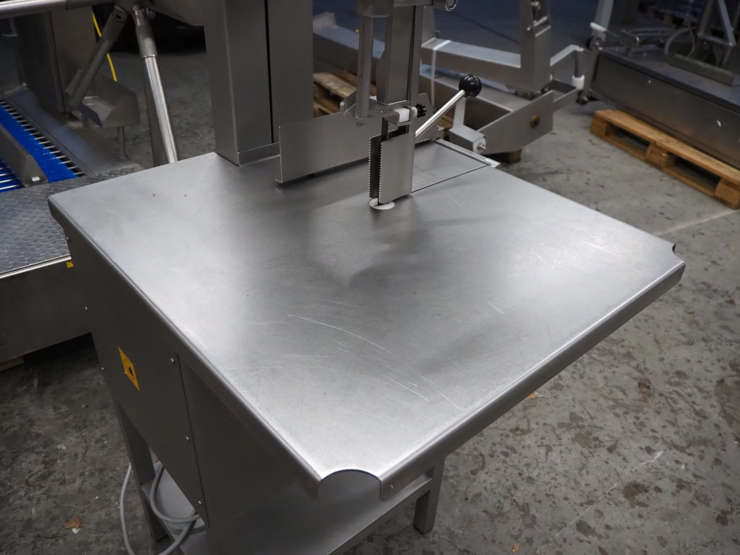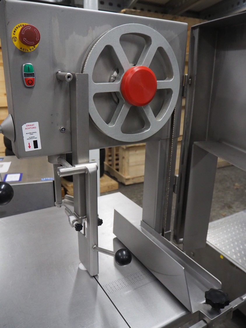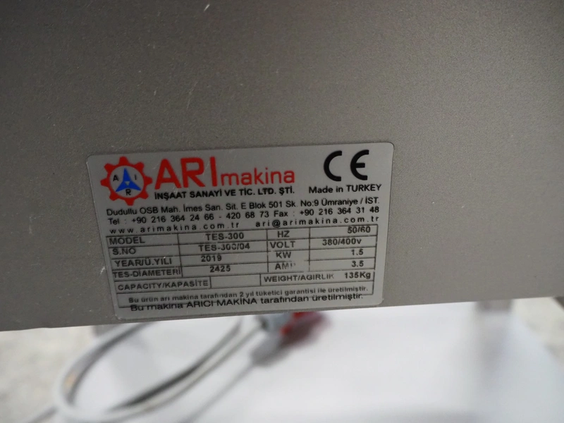 ARI Makina band saw, model: TES-300, serial number: TES-300/04, year of construction: 2019, 380/400 V, 50/60 Hz, 1.5 kW, 3.5 A, weight: 135 kg, dimensions saw table: 700 mm x 700 mm, total dimensions: 700 mm x 800 mm x 1700 mm.