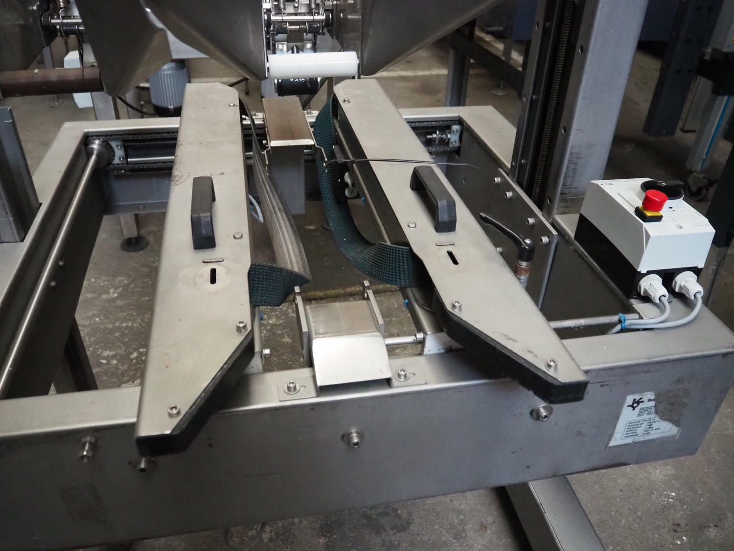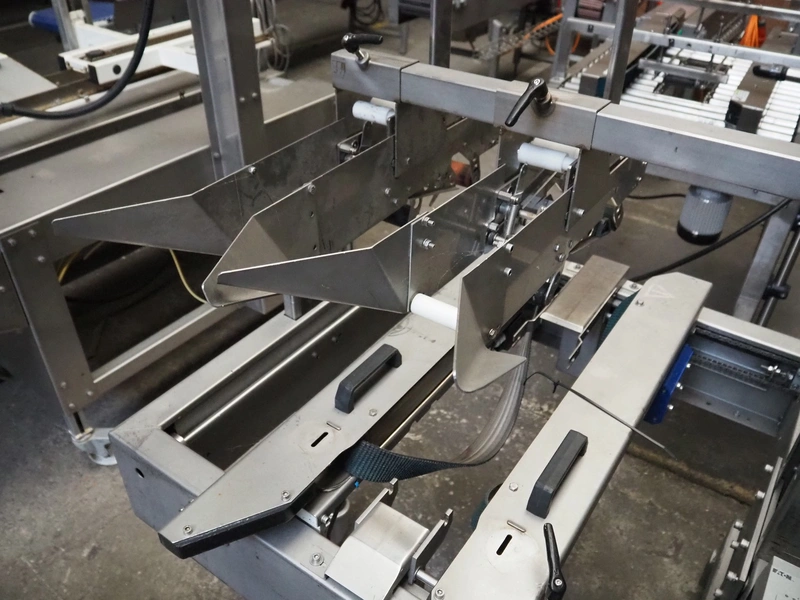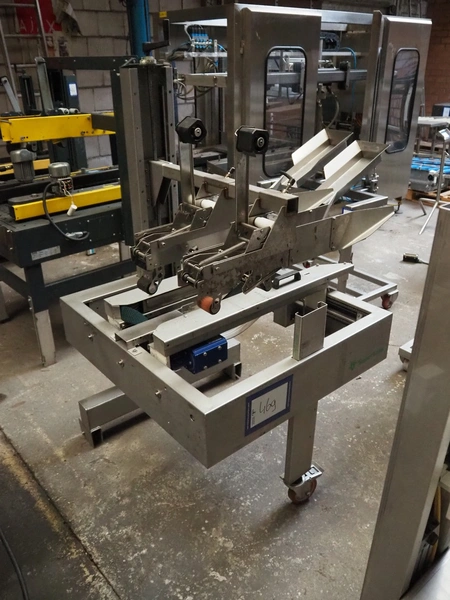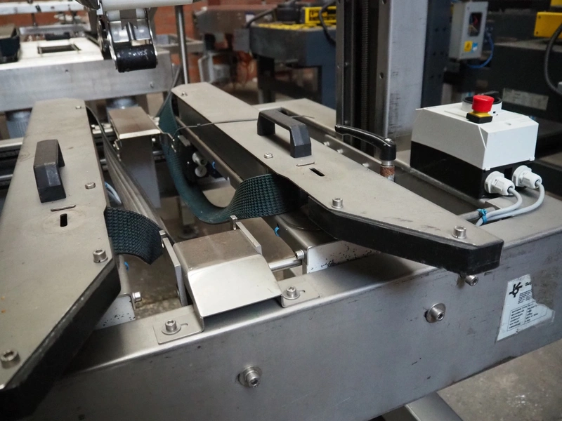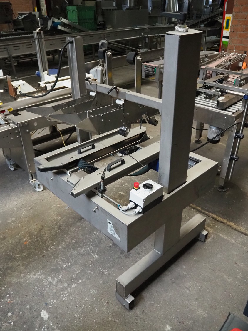 Supertape Systems box closing machine with 2 top tapers, type: H-7.2, machine number: 95-700713, year of construction: 1995, 400 V, 3 Ph, 50 Hz, 0.85 A, dimensions: 950 mm x 870 mm x 1150 mm.