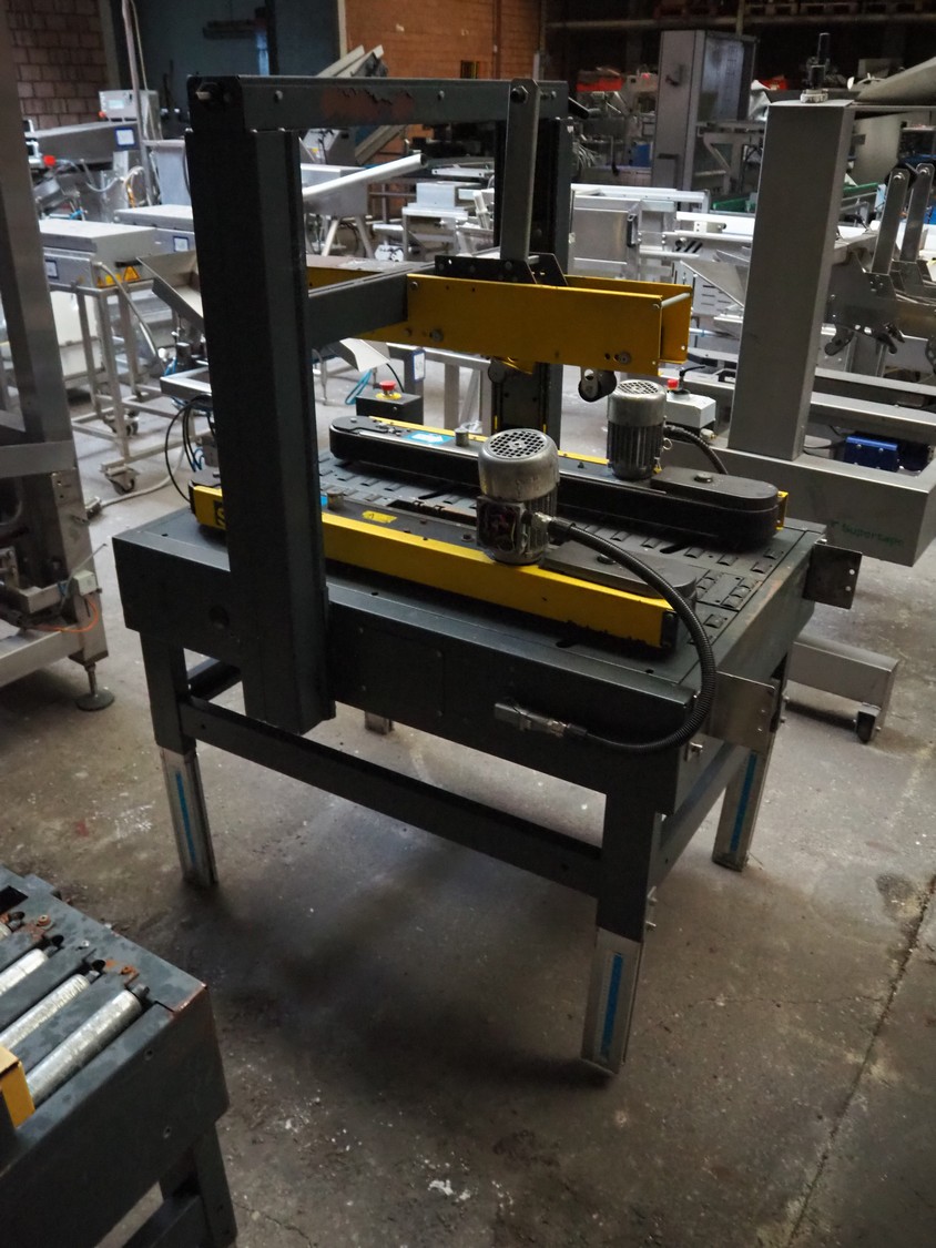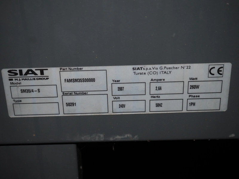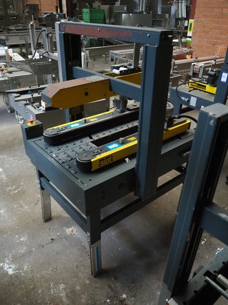 Siat box closing machine, model: SM35/4-S, serial number: 50291, year of construction: 2007, 240 V, 1 Ph, 50 Hz, 2.6 A, 260 W, dimensions: 1240 mm x 920 mm x 1600 mm. Incomplete.