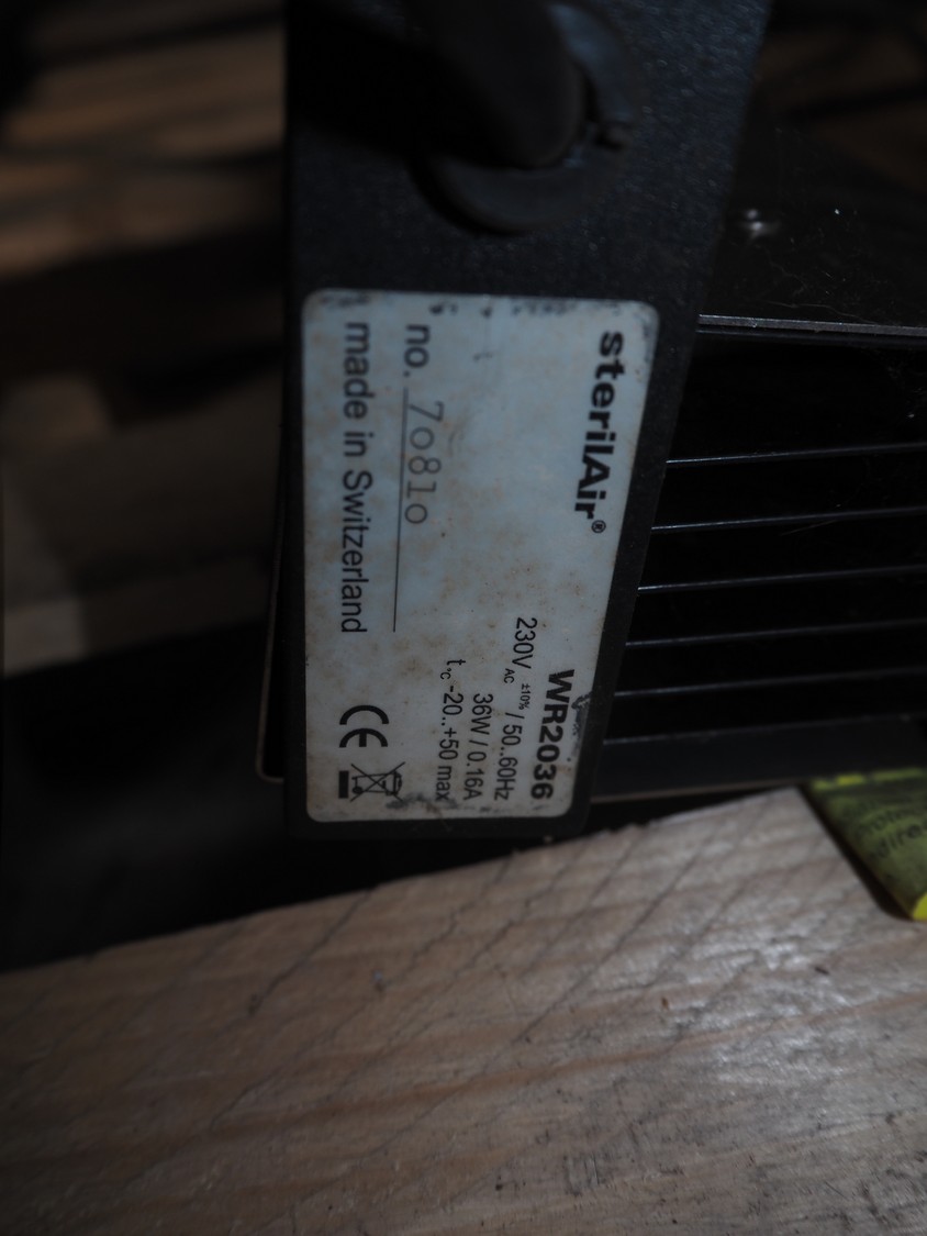 sterilAir light, model: WR2036, number: 70810, dimensions: 910 mm x 100 mm x 100 mm.