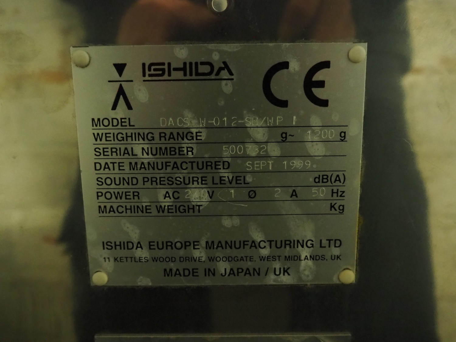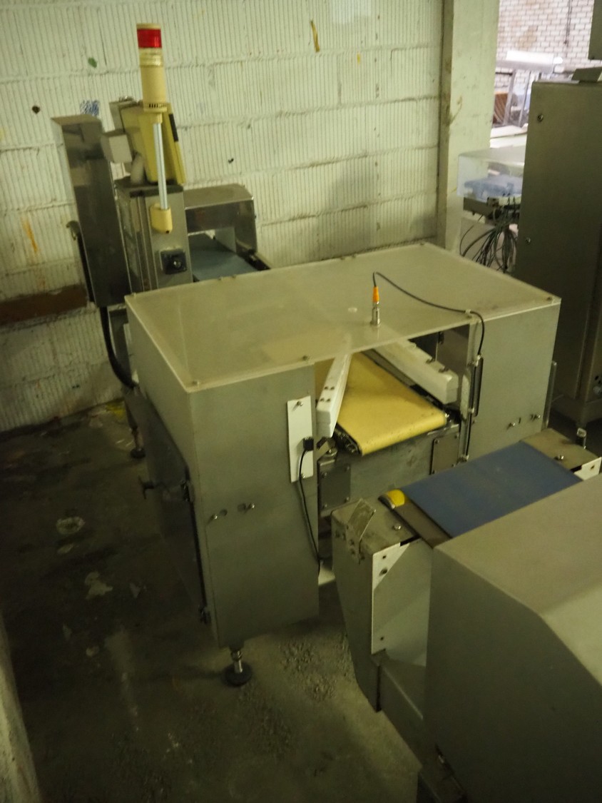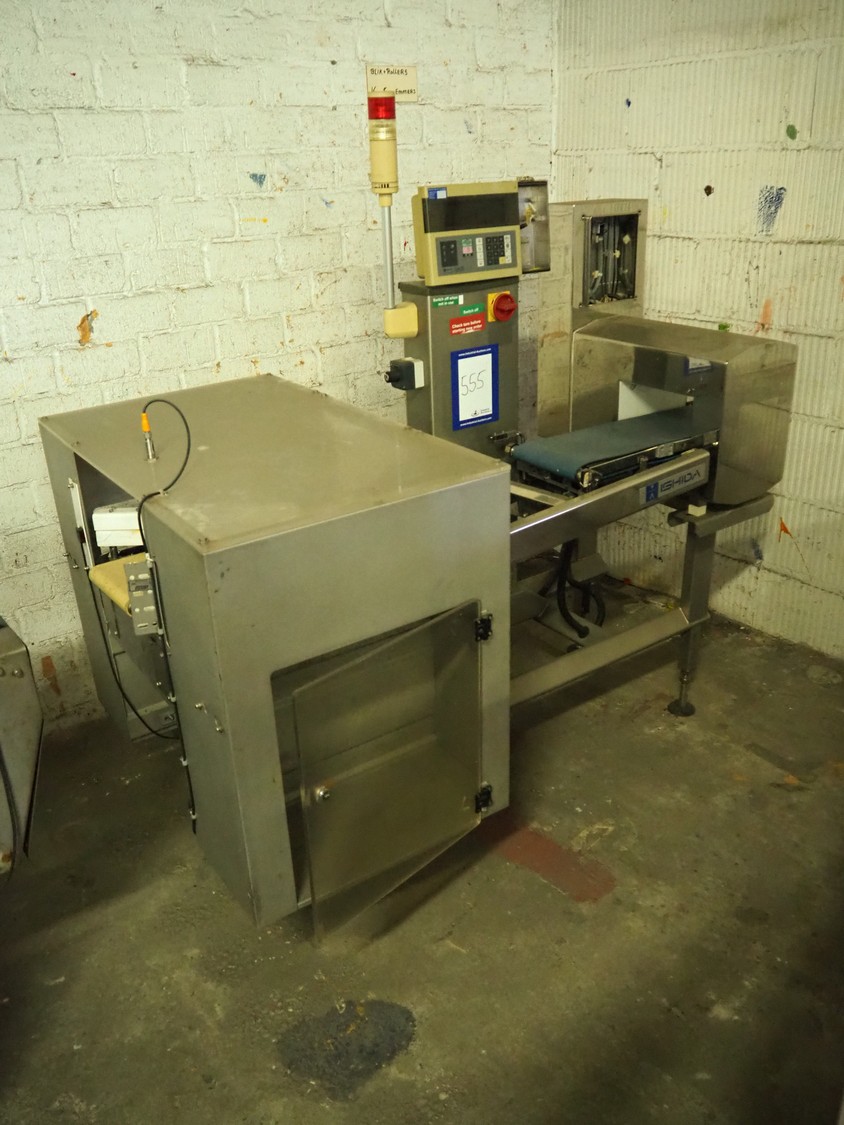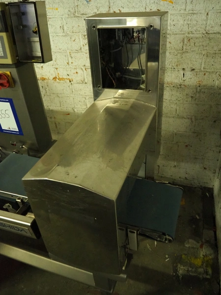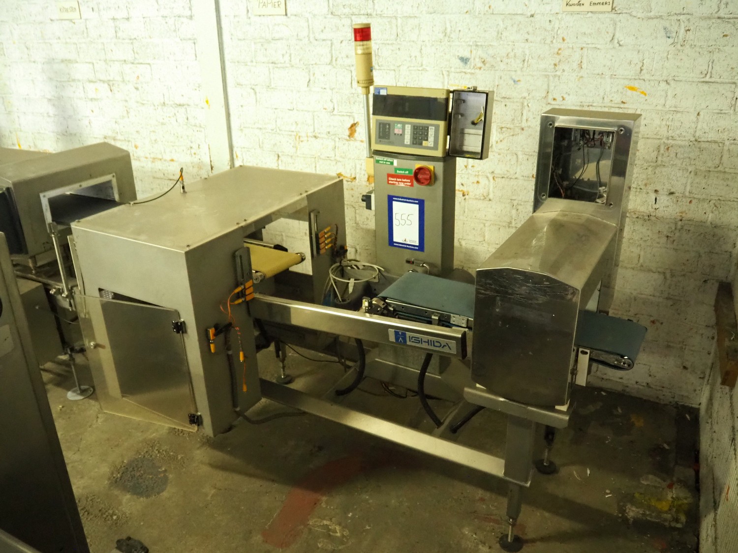 Safeline / Ishida metal detector and checkweigher with rejector, model Safeline: 30 H, 100-240 V, 50/60 Hz, 300 W, model checkweigher: DACS-W-012-SB/WP I, serial number: 500732, year of construction: sept 1999, 240 V, 1 Ph, 50 Hz, 2 A, weighing range: 1200 gram, total dimensions: 1800 mm x 900 mm x 1680 mm. Incomplete, technical condition unknown.
