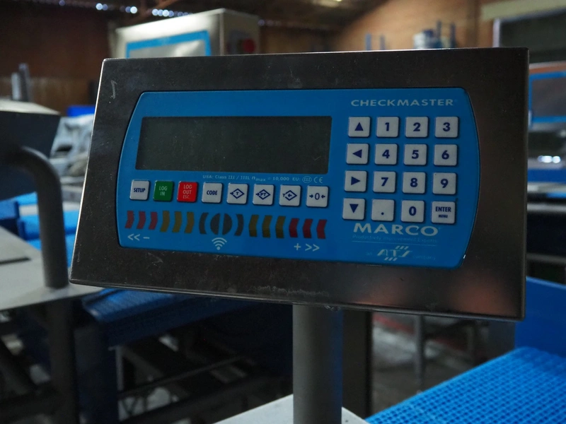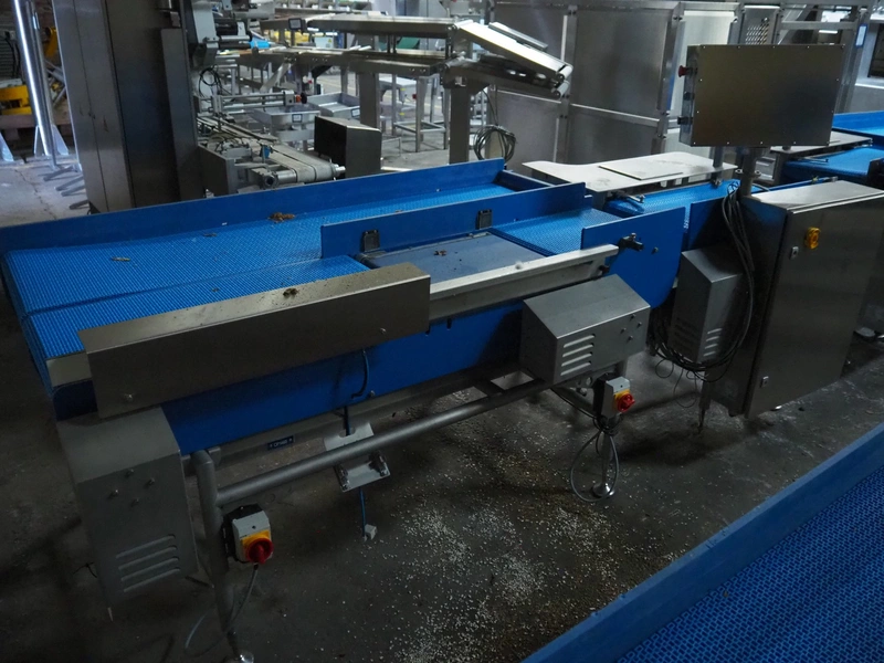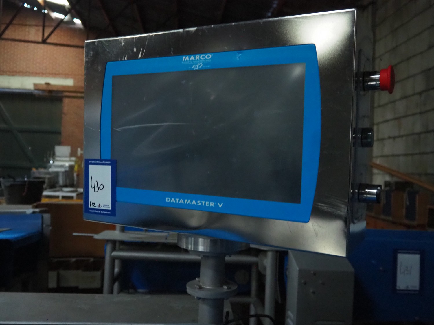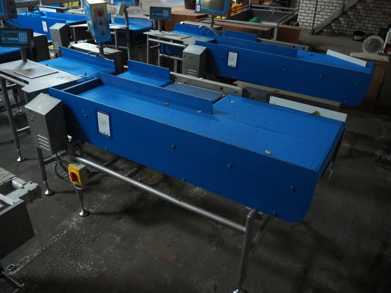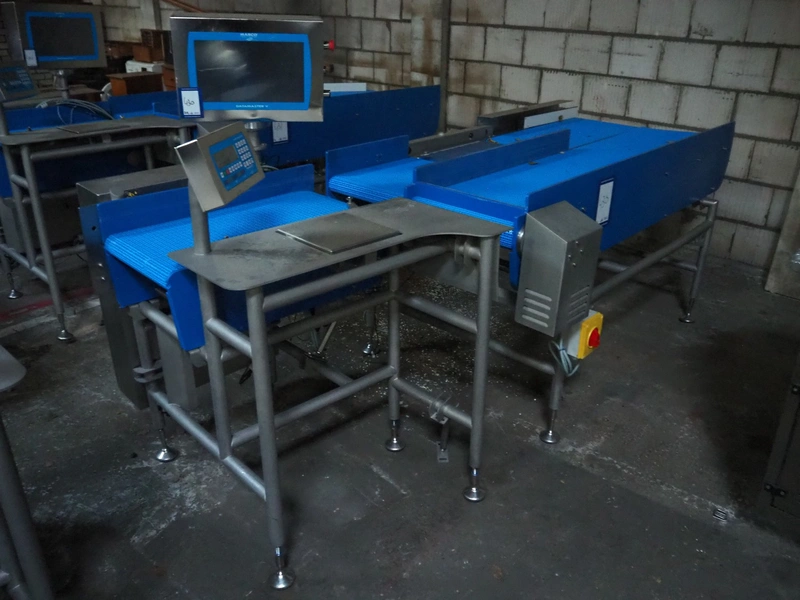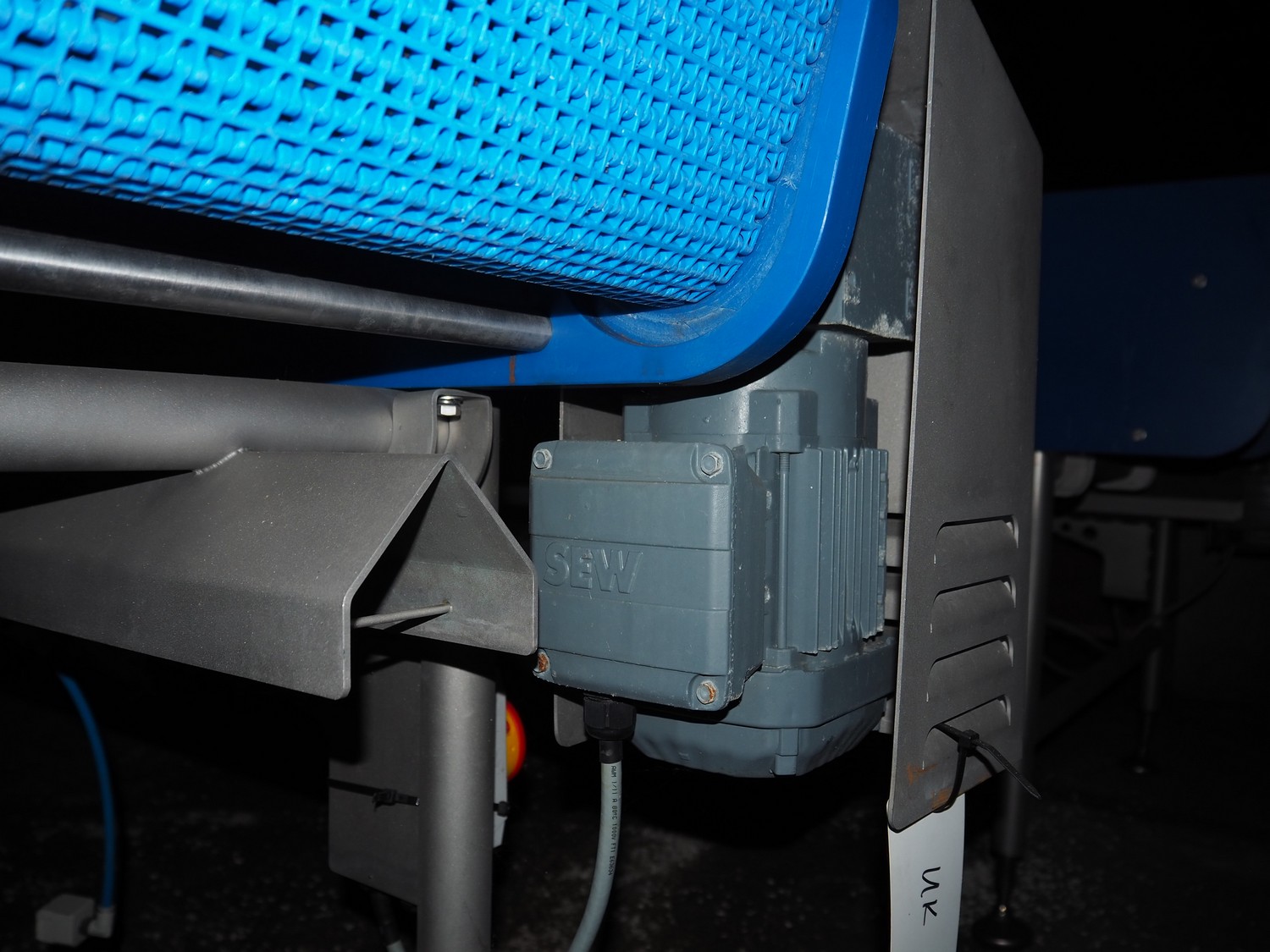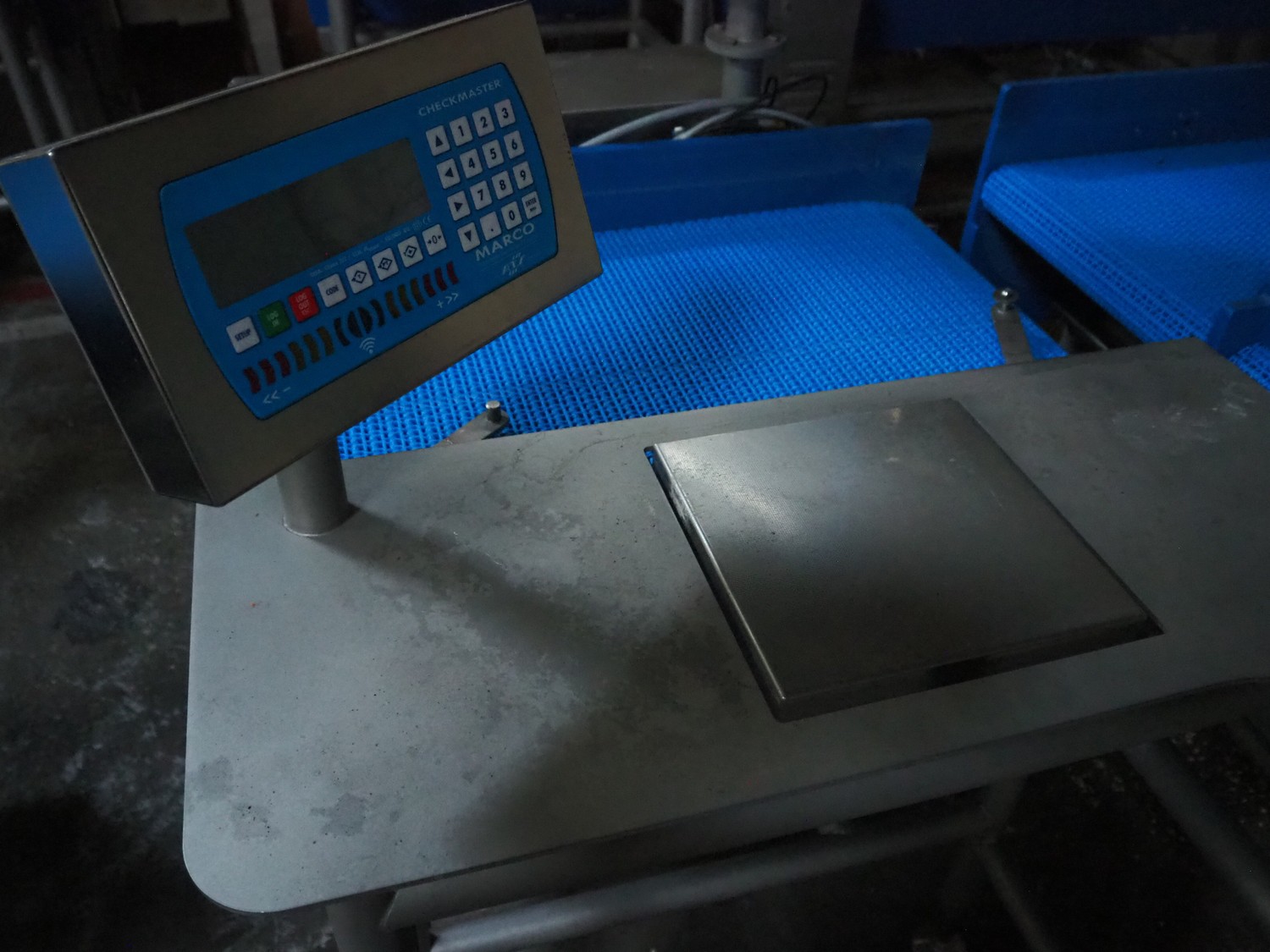 Marco checkweigher and grader, model: D135812, serial number: 10217878, year of construction: 2021, 400 V, 3 Ph, 50 Hz, plastic mesh belt, belt width: 405 mm and 455 mm, total dimensions: 2000 mm x 1200 mm x 1050 mm and 900 mm x 1200 mm x 1600 mm.