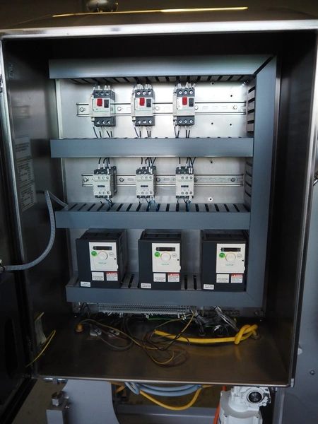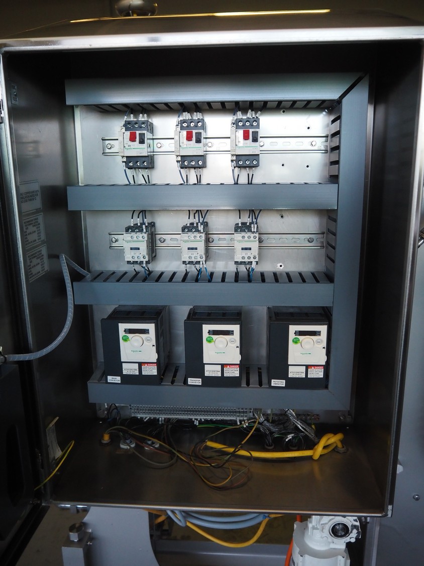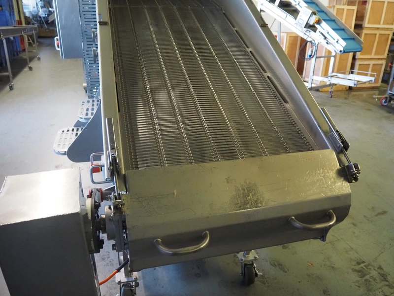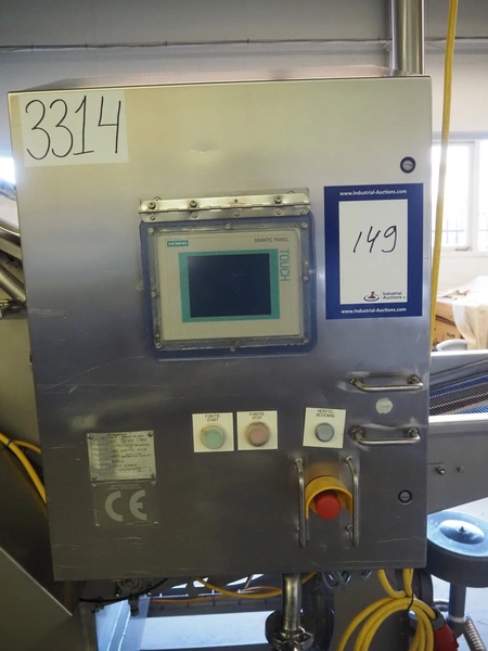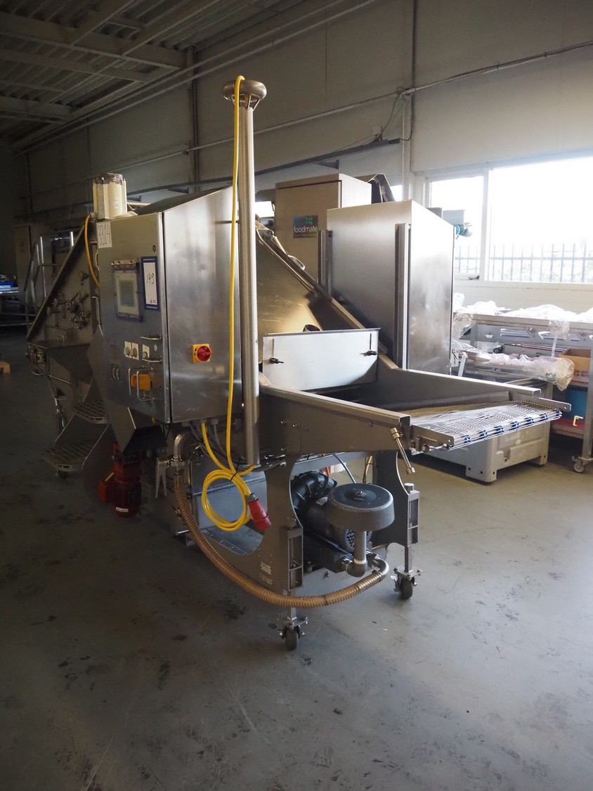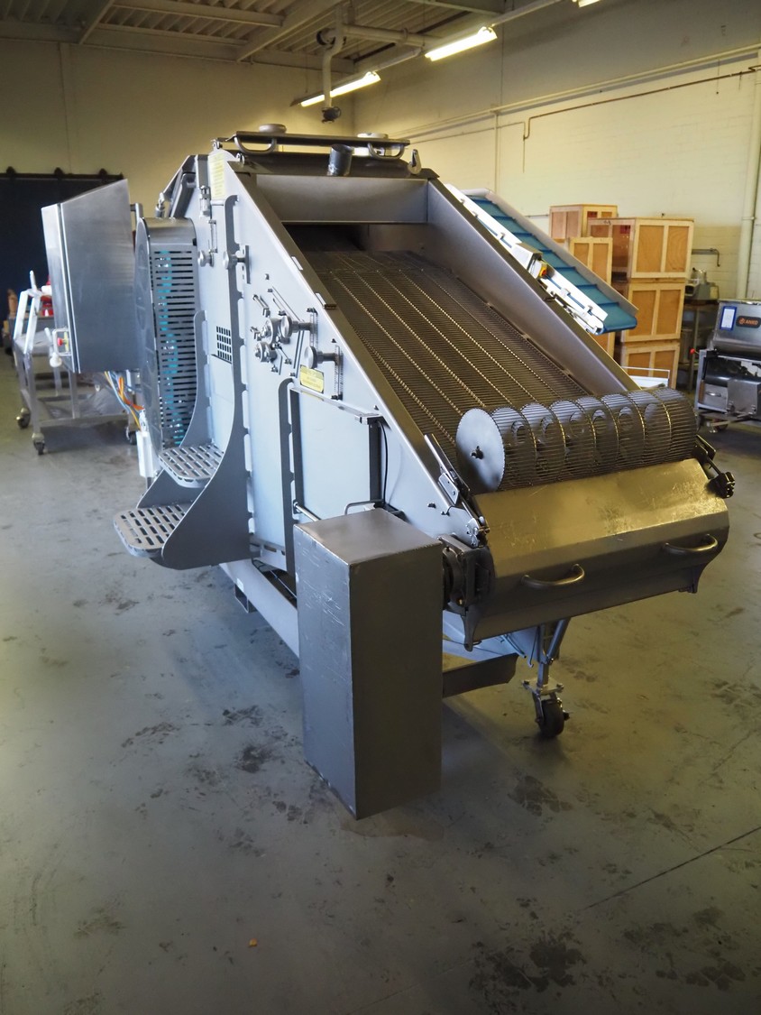 JBT FoodTech mobile homestyle breader, model: HSB-600, serial number: 118, 380 V, 3 Ph, 50 Hz, 24.5 A, s/s belt width: 630 mm, weight: 1600 kg, total dimensions: 4400 mm x 1700 mm x 2250 mm.