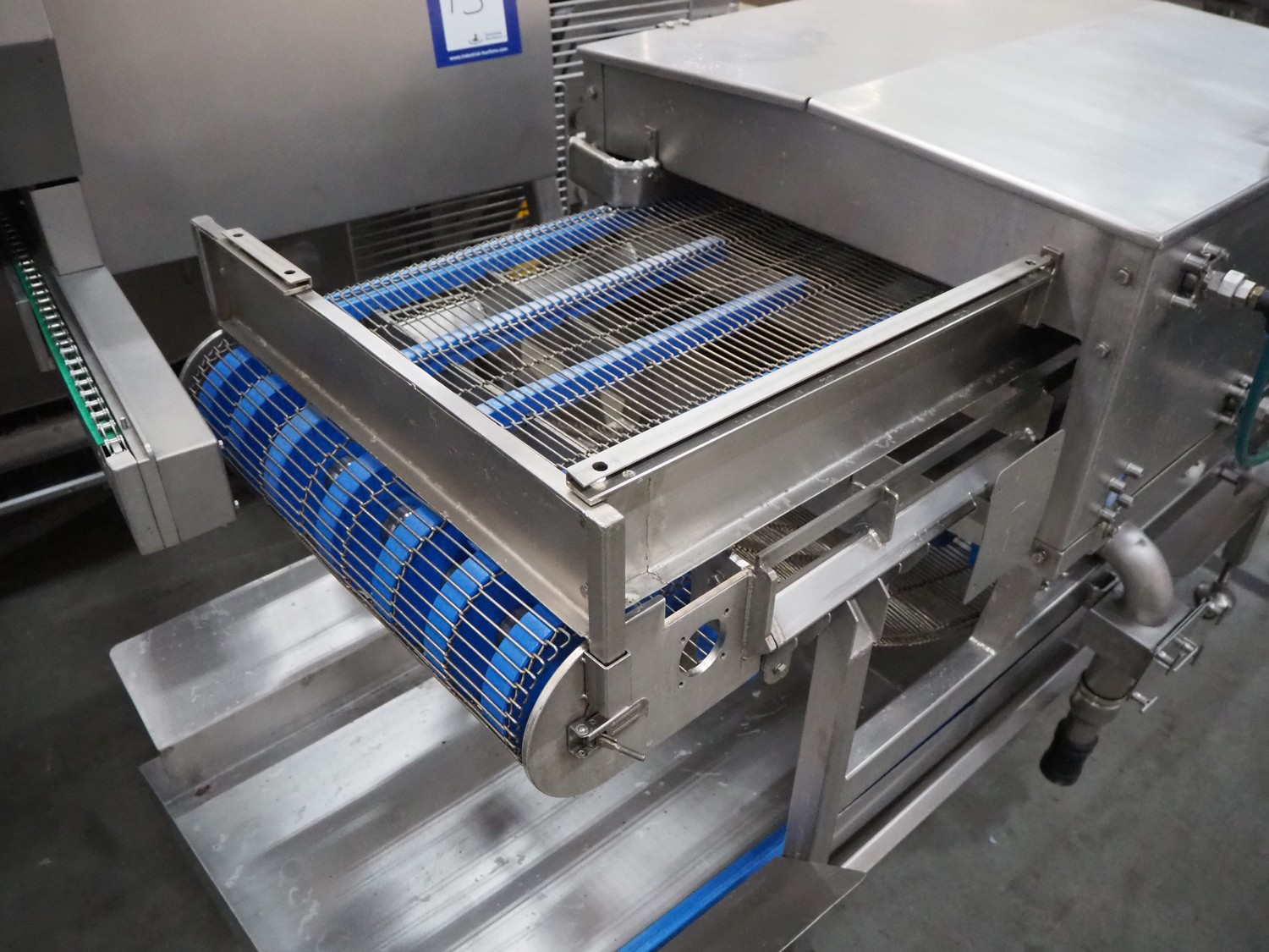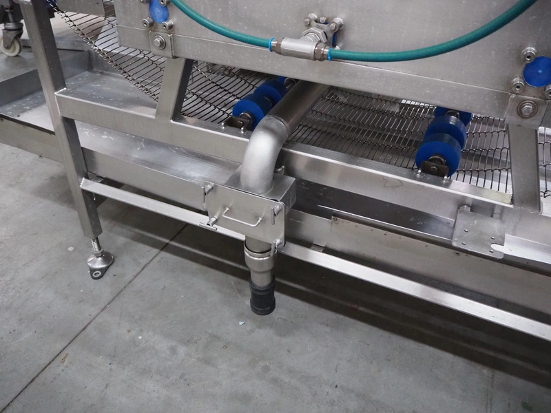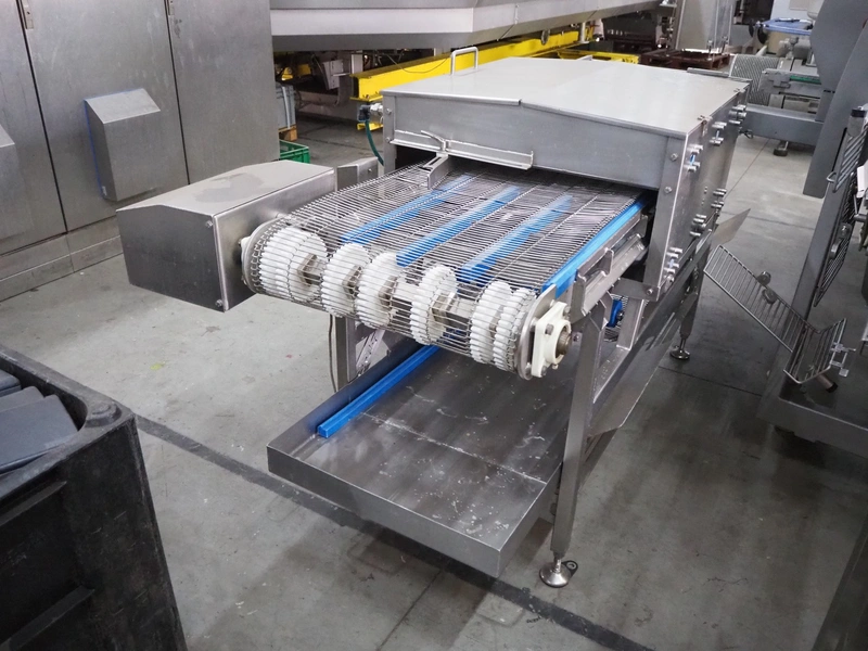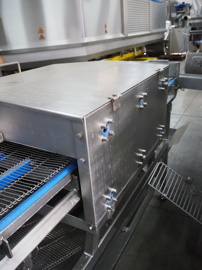 Spraying belt, s/s frame, s/s mesh belt, belt width: 600 mm, clearance: 550 mm x 60 mm, total dimensions: 2200 mm x 1100 mm x 1200 mm.