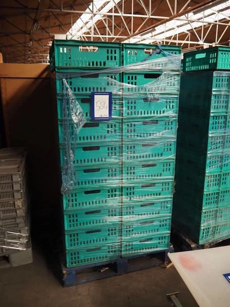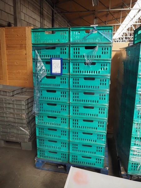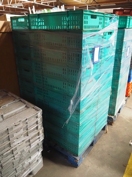 Pallet with approximately 30 crates, dimensions each crate: 760 mm x 460 mm x 180 mm, total dimensions: 1200 mm x 1000 mm x 1860 mm.
