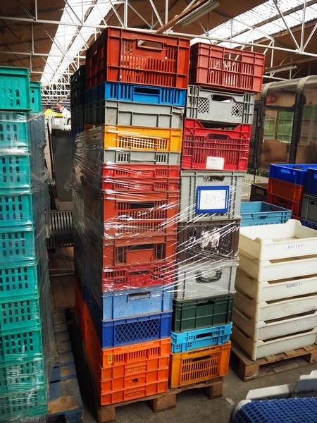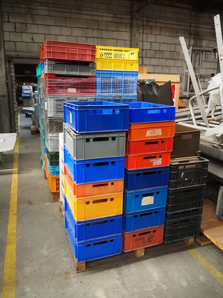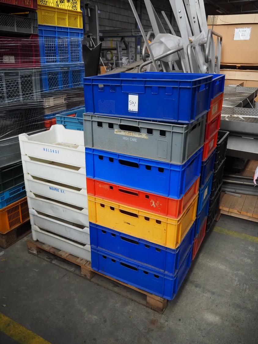 2 pallets with large amount of various plastic crates, dimensions: (2x) 1200 mm x 1000 mm x 1500 mm.