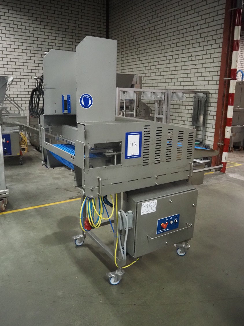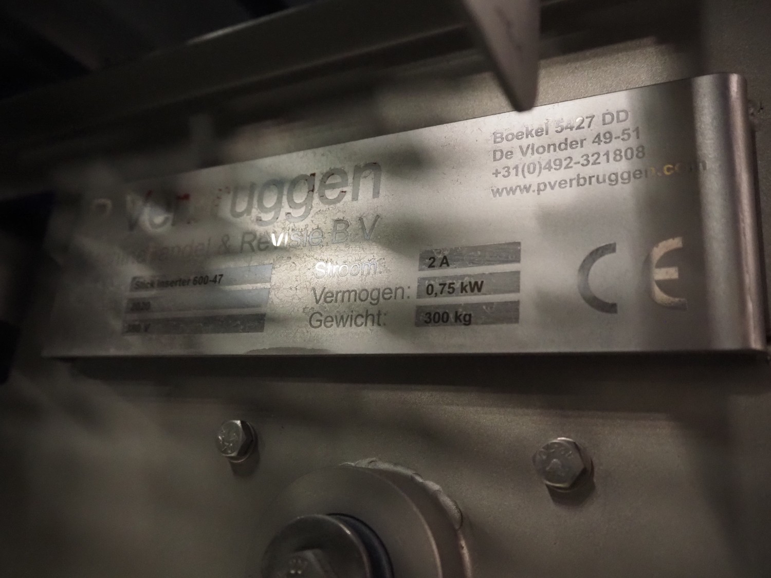 Verbruggen mobile stick inserter, type: Stick Inserter 600, serial number: 47, year of construction: 2020, 380 V, 2 A, 0.75 kW, 6 bar, 400 l/min, belt width: 595 mm, weight: 300 kg, belt speed: 1.5 - 15 m/min, total dimensions: 1650 mm x 1100 mm x 2000 mm.