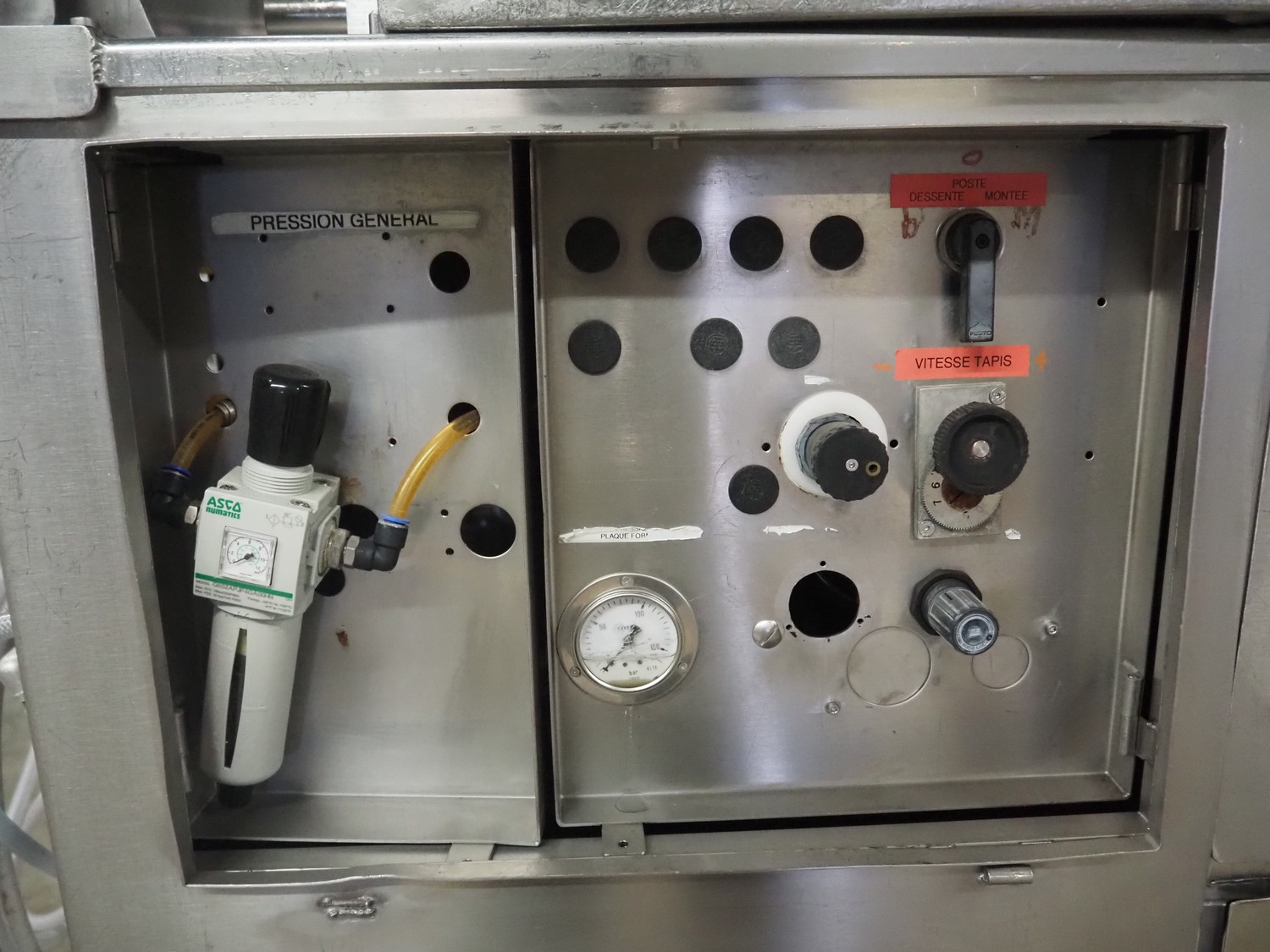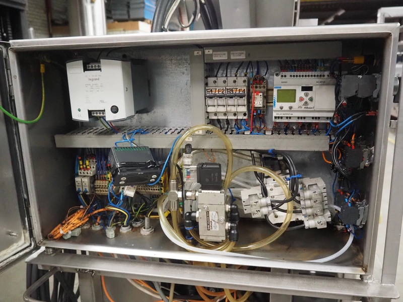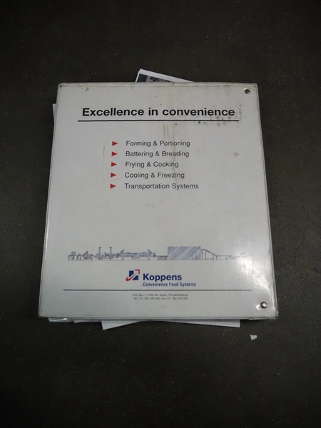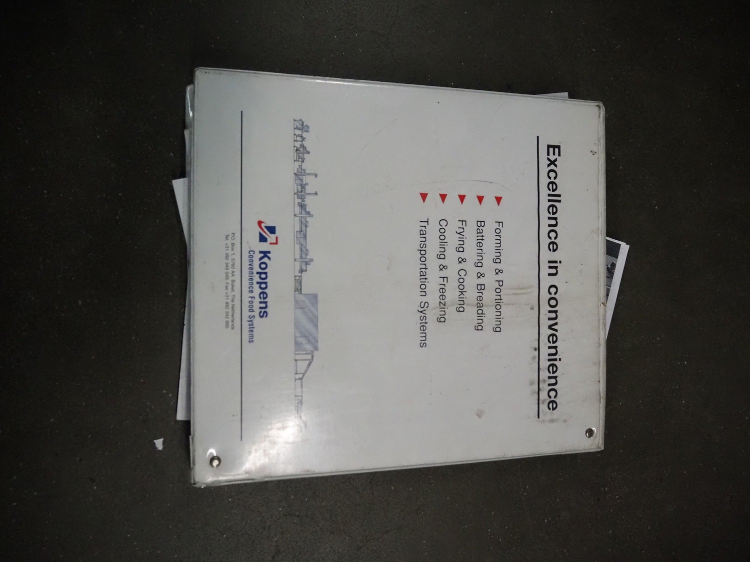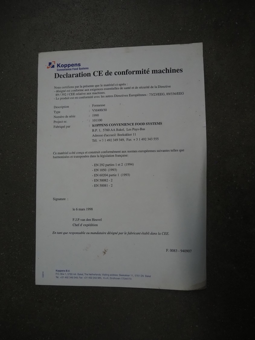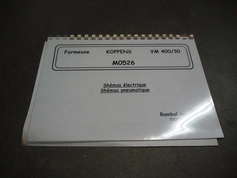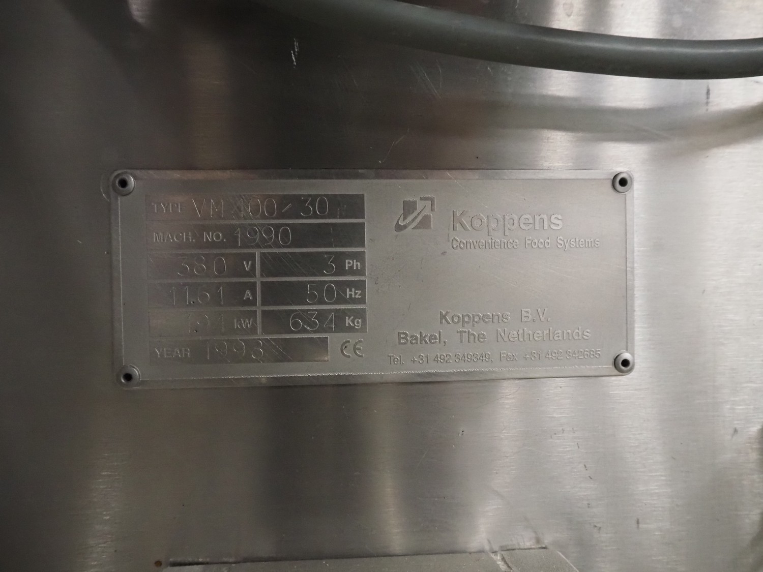 Koppens/CFS mobile forming machine, type: VM400-30, serial number: 1990, year of construction: 1998, 380 V, 3 Ph, 50 Hz, 11.61 A, 4.94 kW, weight: 634 kg, belt width: 400 mm, dye: (12x) 11 mm x 45 mm and (11x) Ø 35, total dimensions: 2100 mm x 700 mm x 1800 mm.