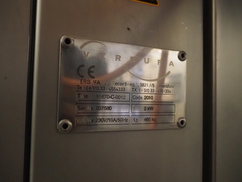 Verbufa mobile forming machine, type: 51670-C-0012, serial number: 207580, belt width: 490 mm, weight: 450 kg, total dimensions: 1400 mm x 1100 mm x 1700 mm. Incomplete, technical condition unknown.