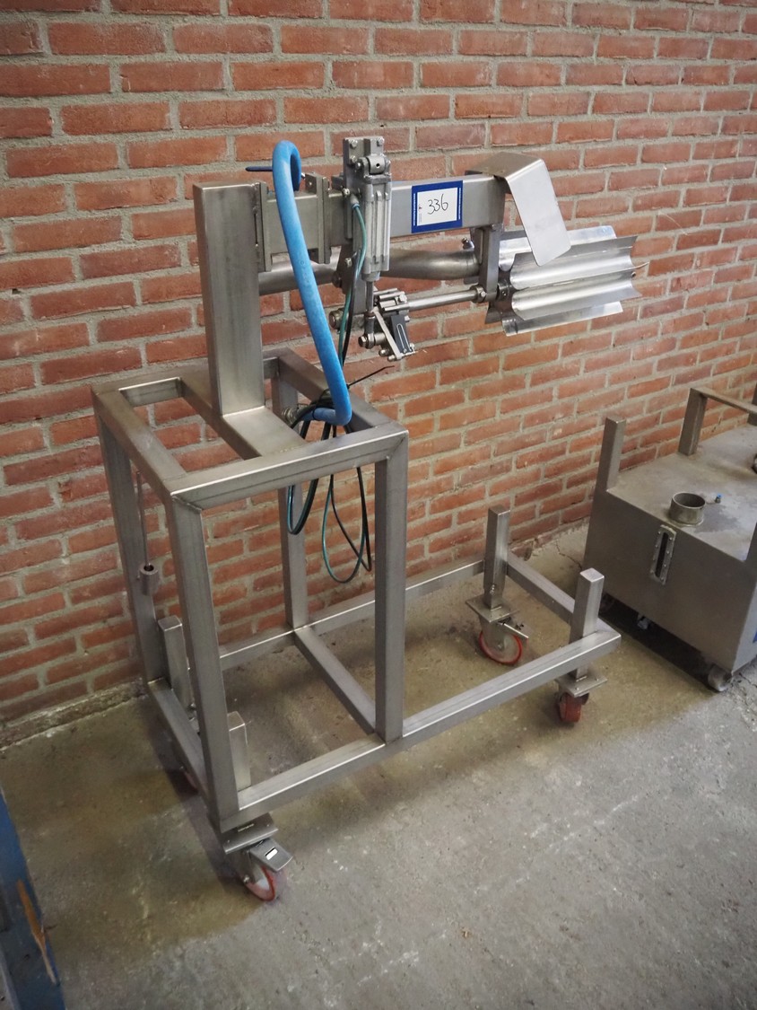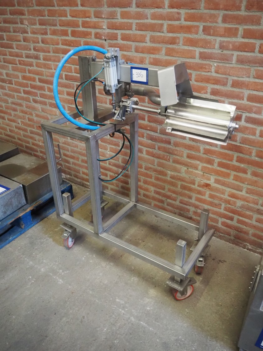 Mobile s/s forming machine for skinless sausage, dimensions: 1000 mm x 450 mm x 1350 mm.
