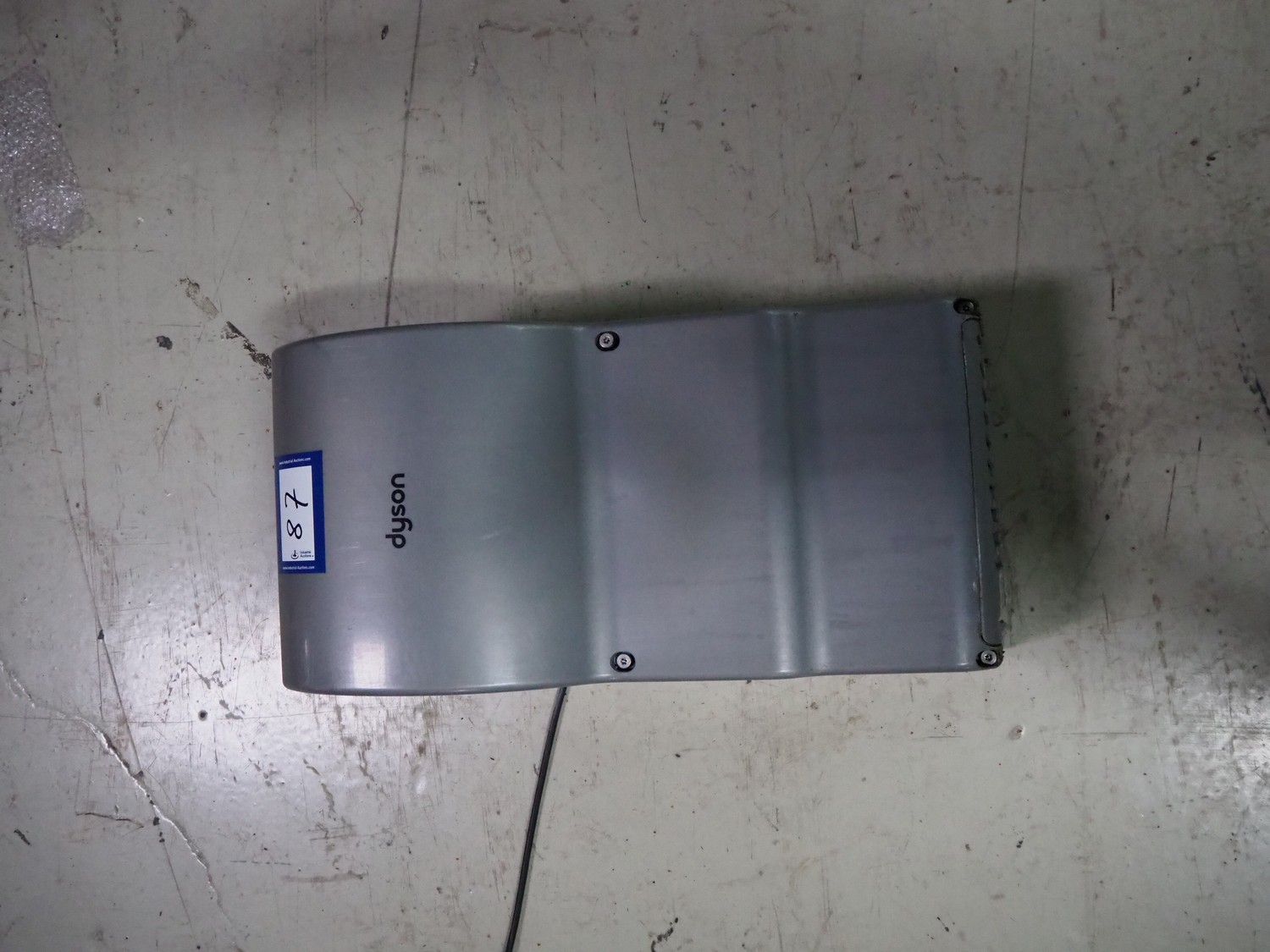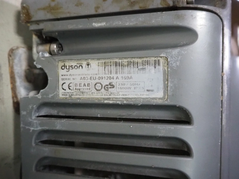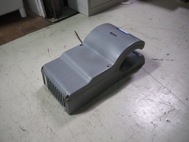 Dyson airblade hand dryer, dimensions: 300 mm x 250 mm x 650 mm.