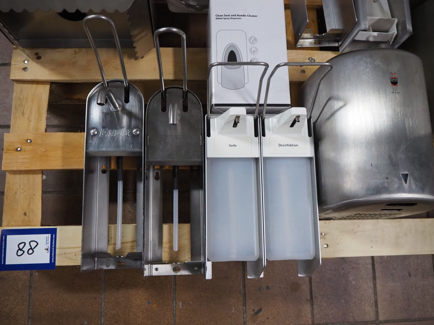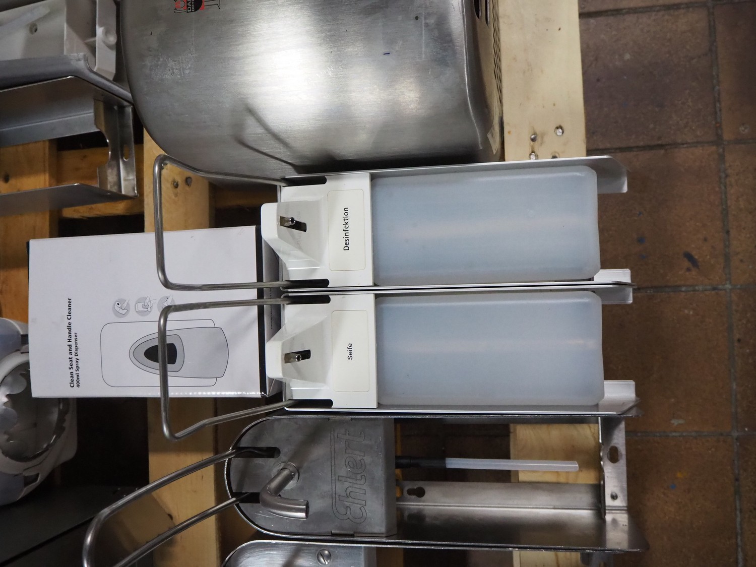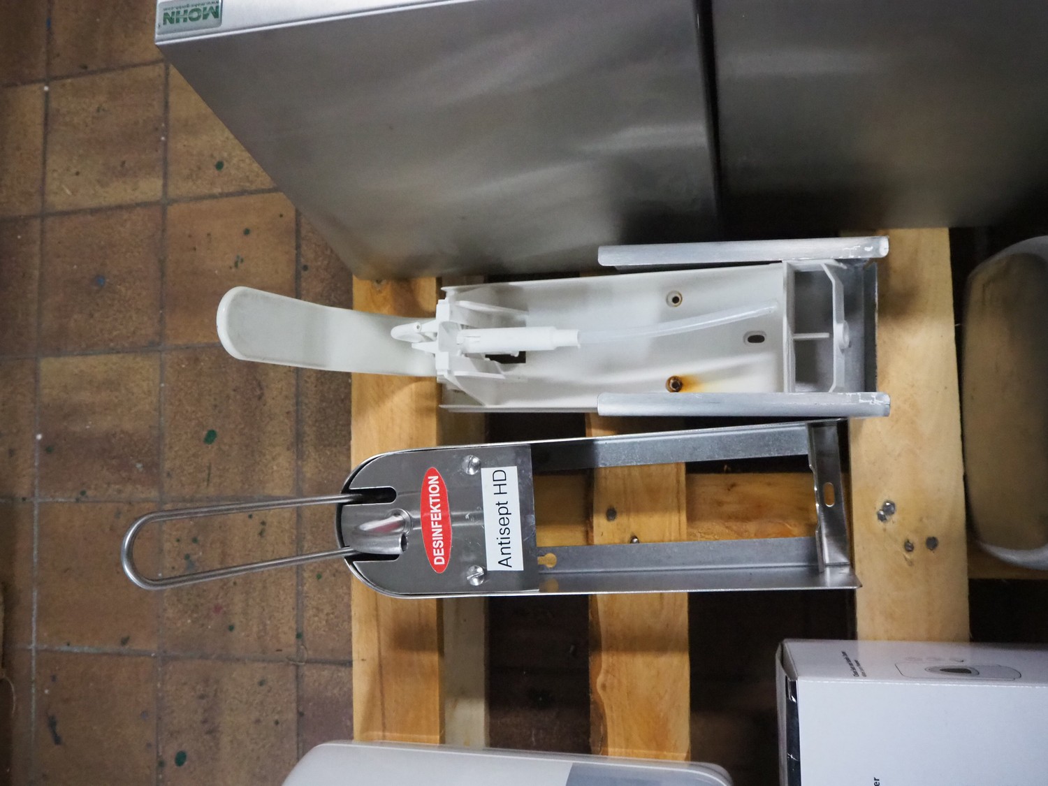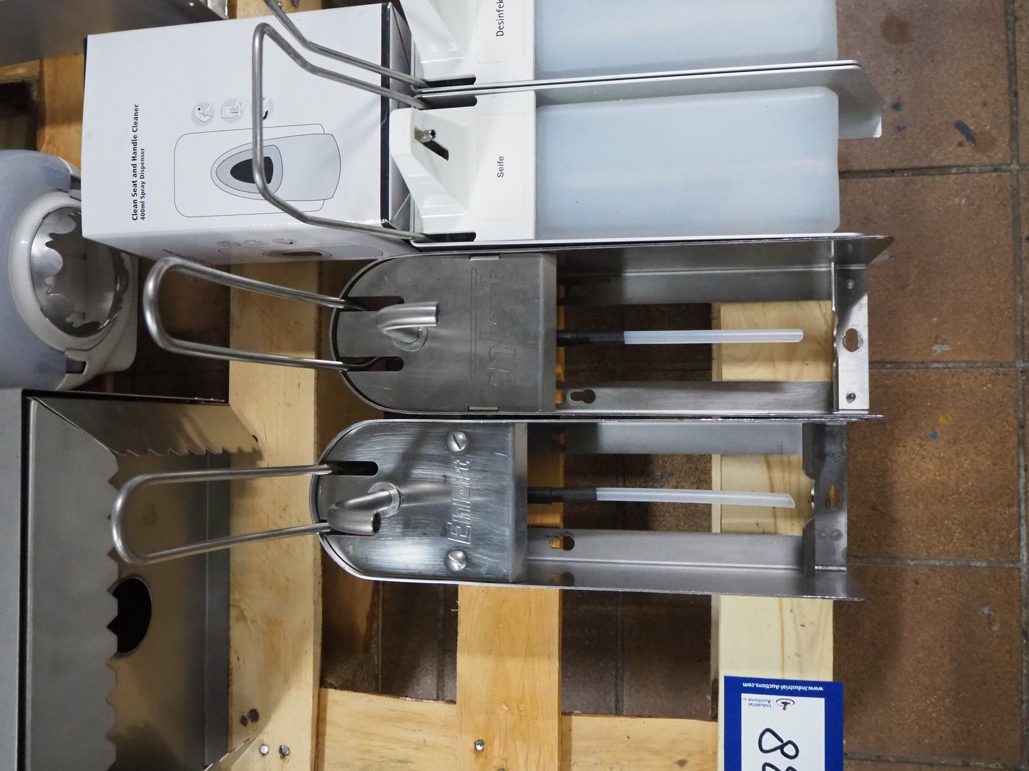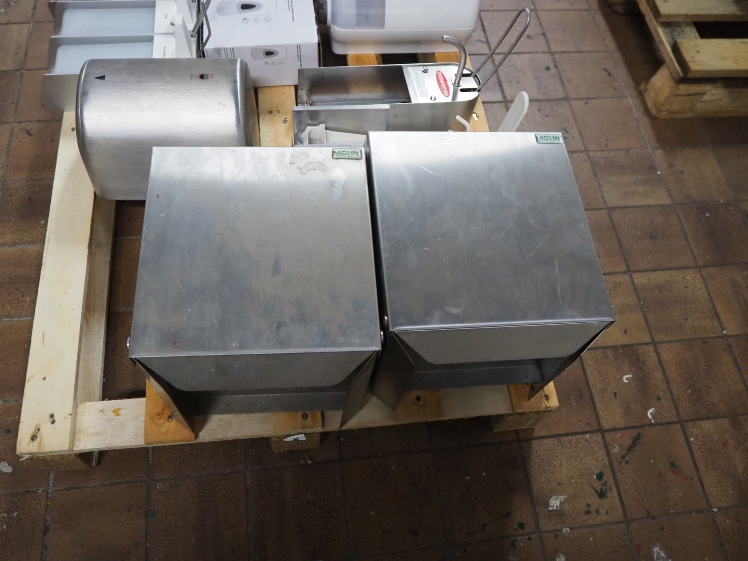 Pallet with various Ehlert and Mohn soap and paper dispensers, dimensions pallet: 1200 mm x 800 mm x 400 mm.