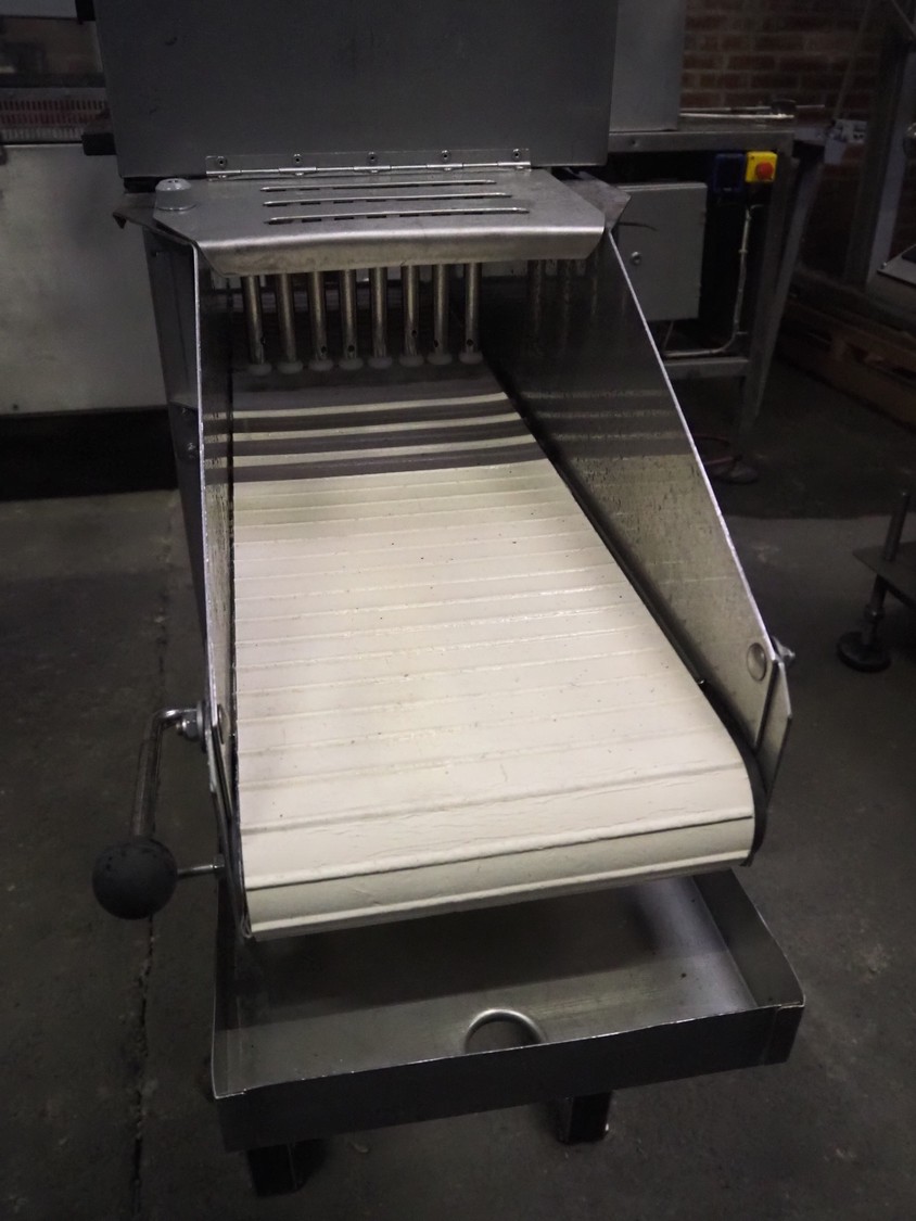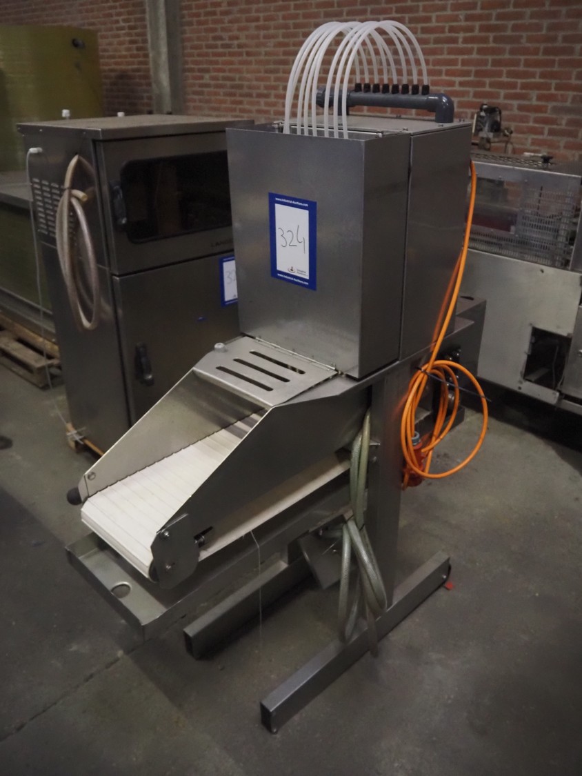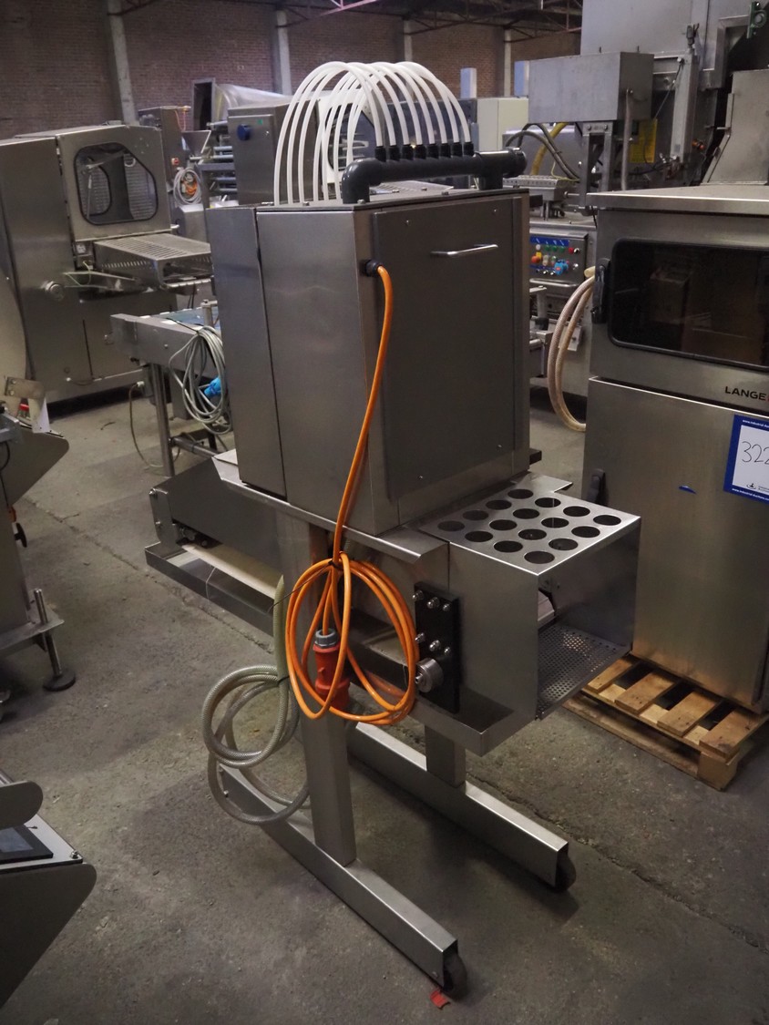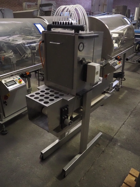 Mobile injector, plastic belt, belt width: 260 mm, clearance: 270 mm x 180 mm, 8 needles, total dimensions: 1300 mm x 530 mm x 1670 mm.