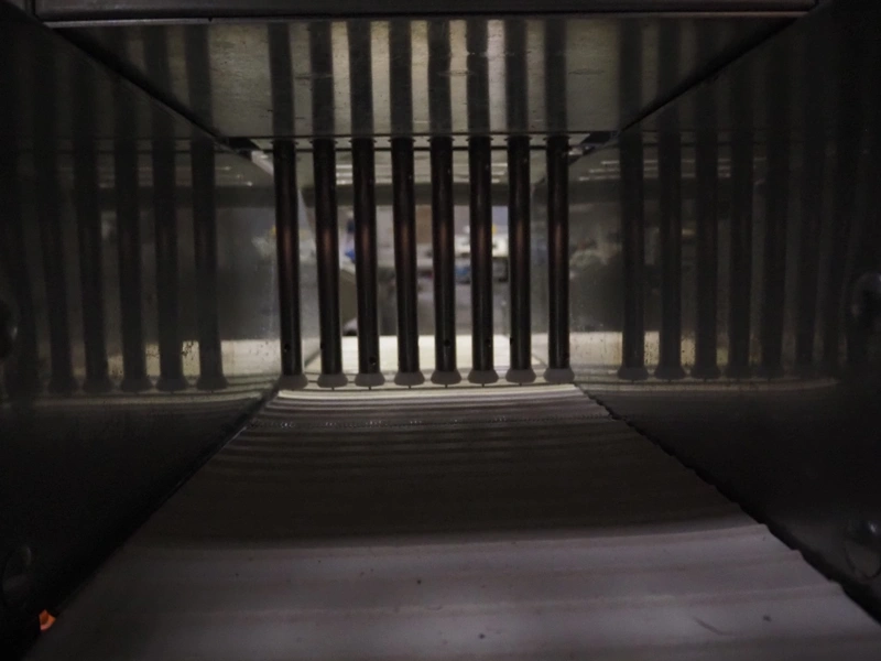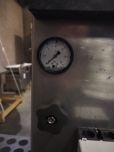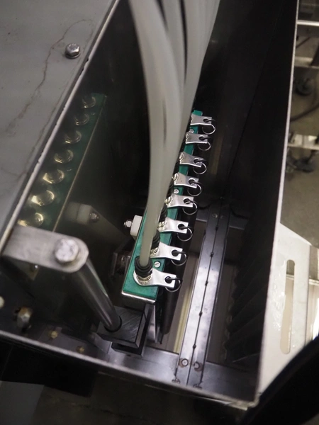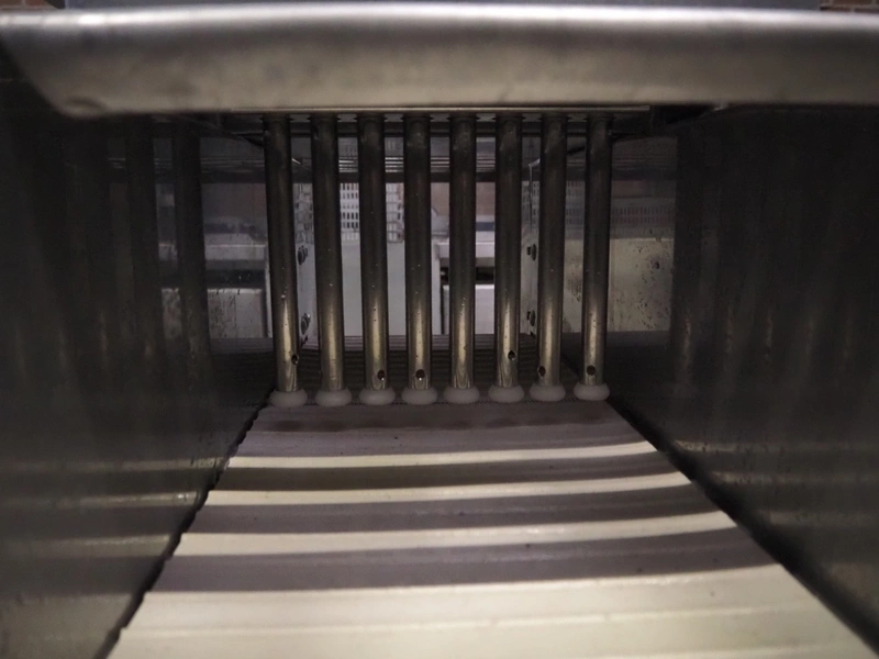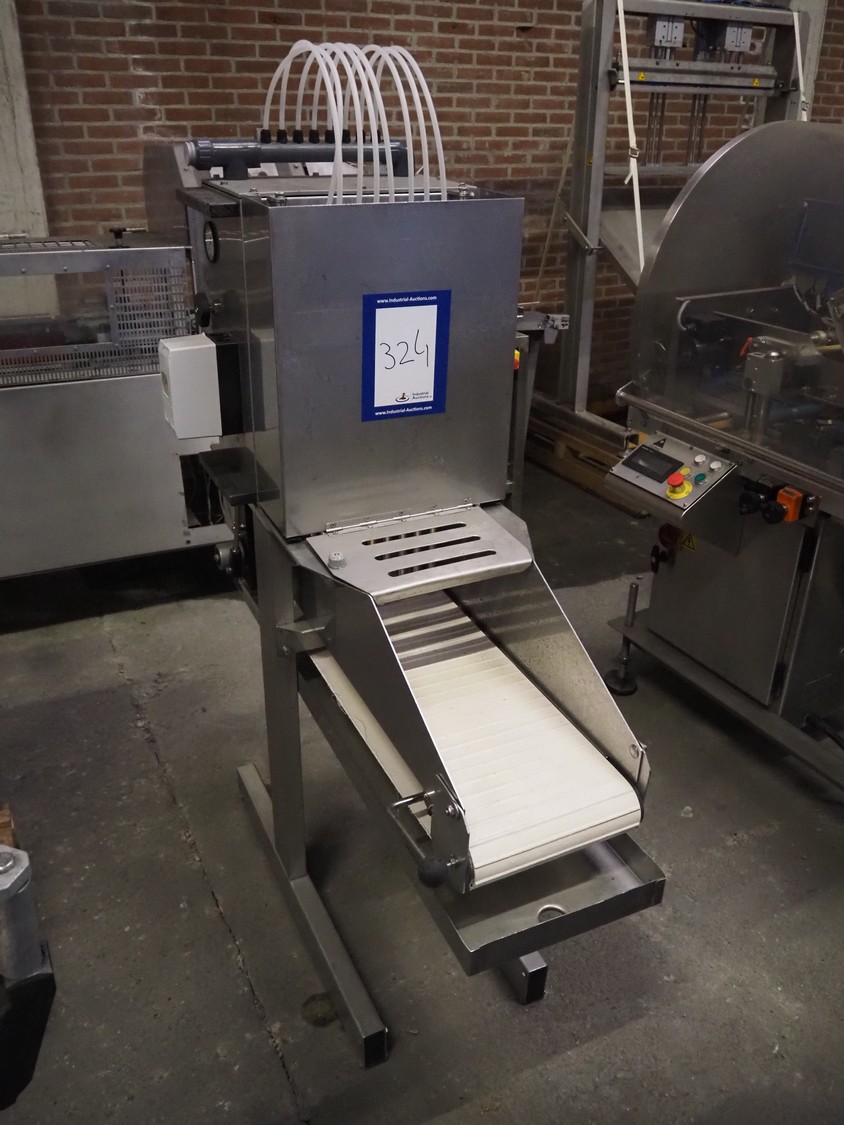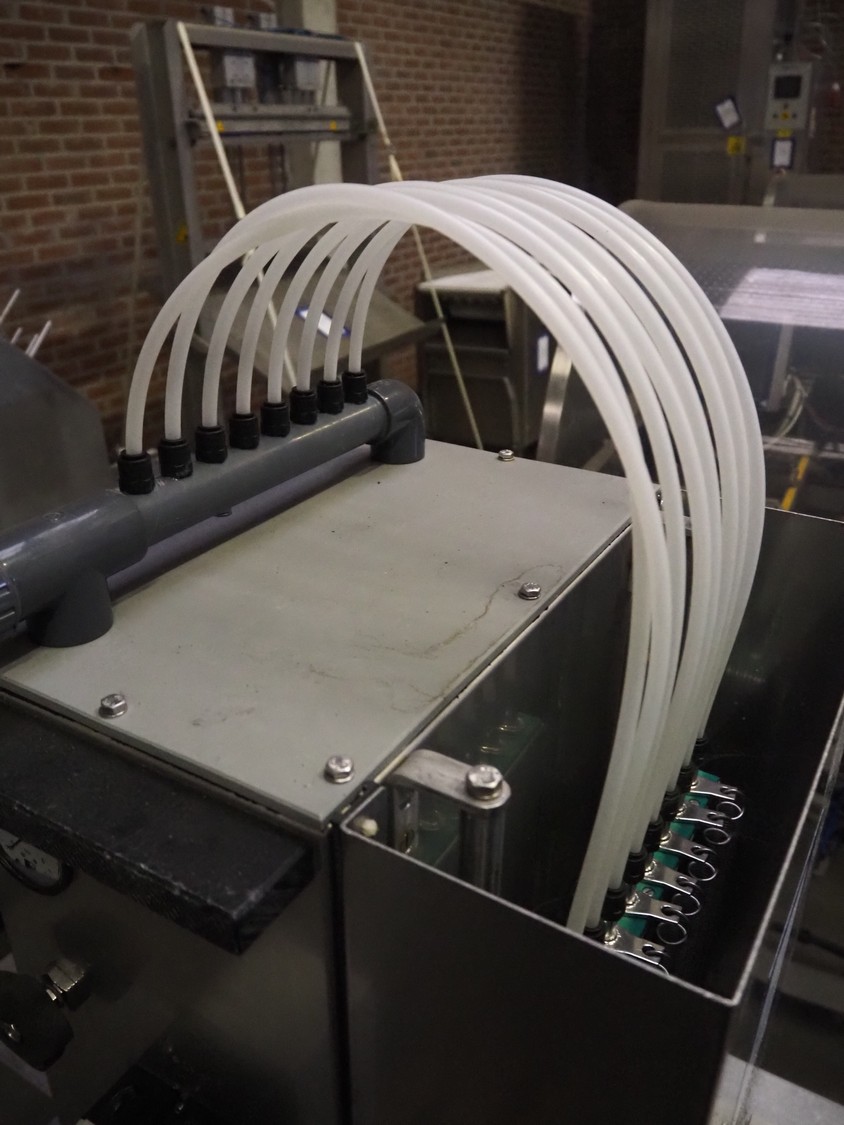 Mobile injector, plastic belt, belt width: 260 mm, clearance: 270 mm x 180 mm, 8 needles, total dimensions: 1300 mm x 530 mm x 1670 mm.