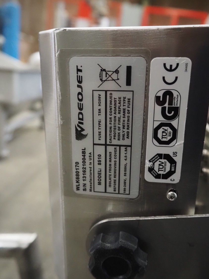 Videojet mobile inject printer, model: 8510, serial number: 131621004BL, dimensions: 850 mm x 500 mm x 1100 mm.