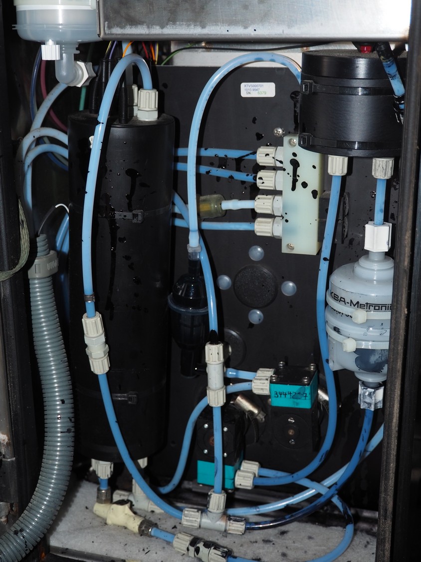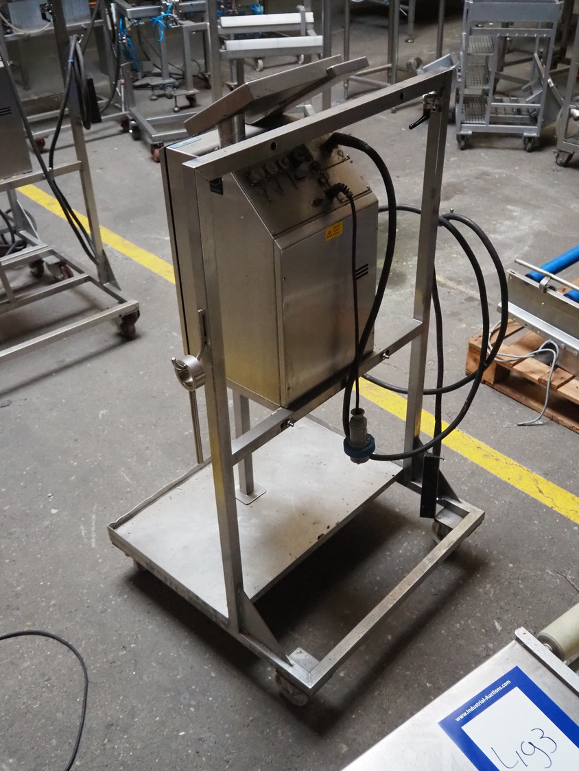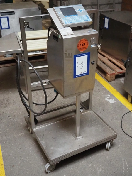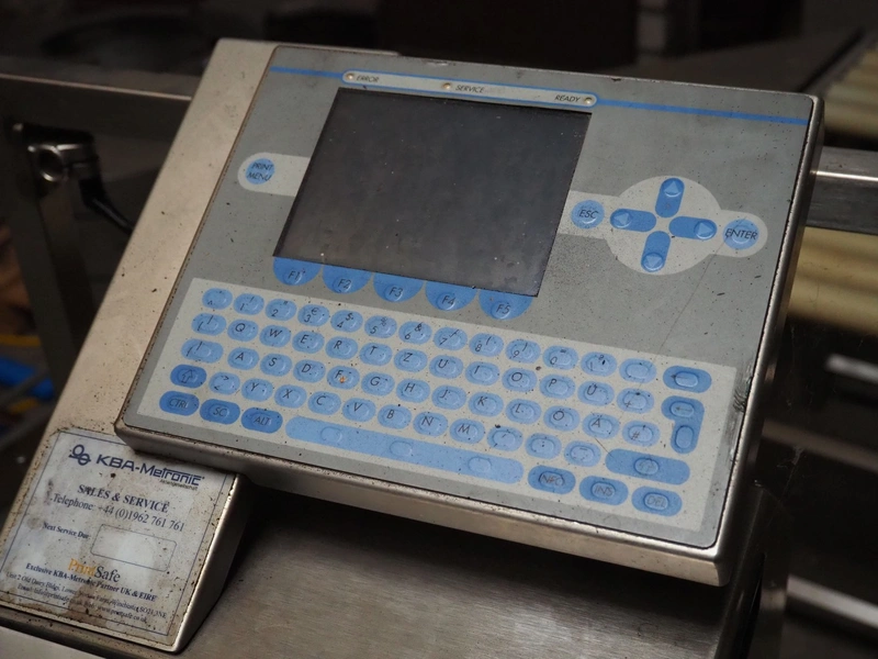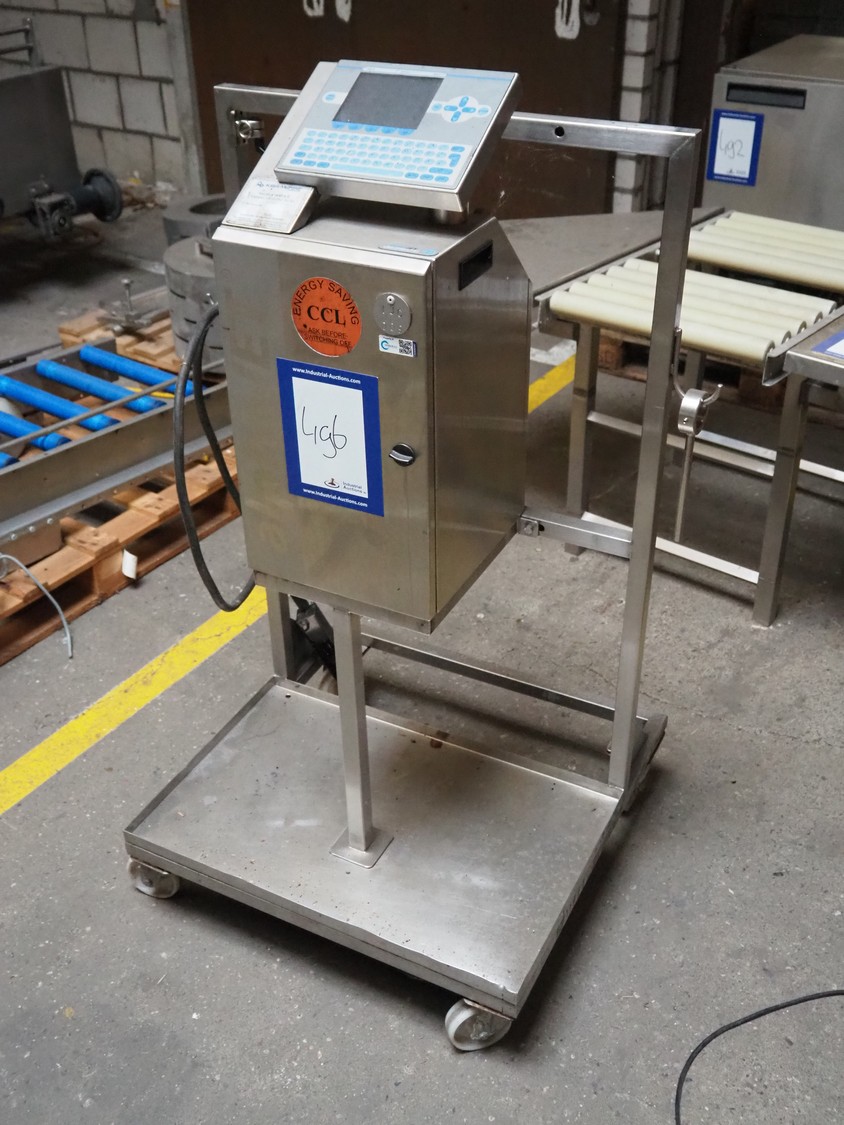 KBA Metronic GmbH inkjet printer on mobile s/s frame, number: MI2500-013072, year of construction: 2009, 230 V, 50 Hz, 0.5 A, dimensions: 870 mm x 750 mm x 1320 mm.